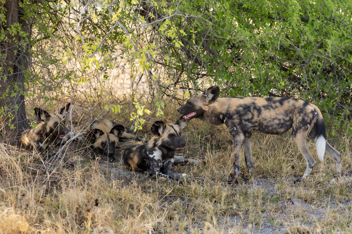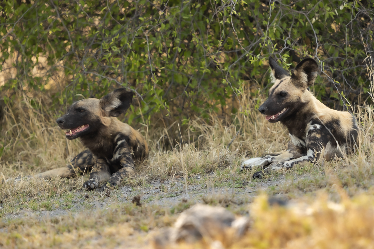 Finally managed to meet the African wild dogs. This is my first encounter with these animals and I do not hide the anticipation. Unfortunately, despite several trips to Africa I have not been able to meet them before, they are among the very rare, already endangered mammals of Africa. They like open spaces. We met our African wild dogs in the Kalahari. The heat on that day was so great that we thought we were moving through a turbo-circulating oven. The African wild dogs were also exhausted by the heat, lying in the shade of small bushes, not caring about our presence. Finally pictures of African wild dogs are being taken, and in very good quality!