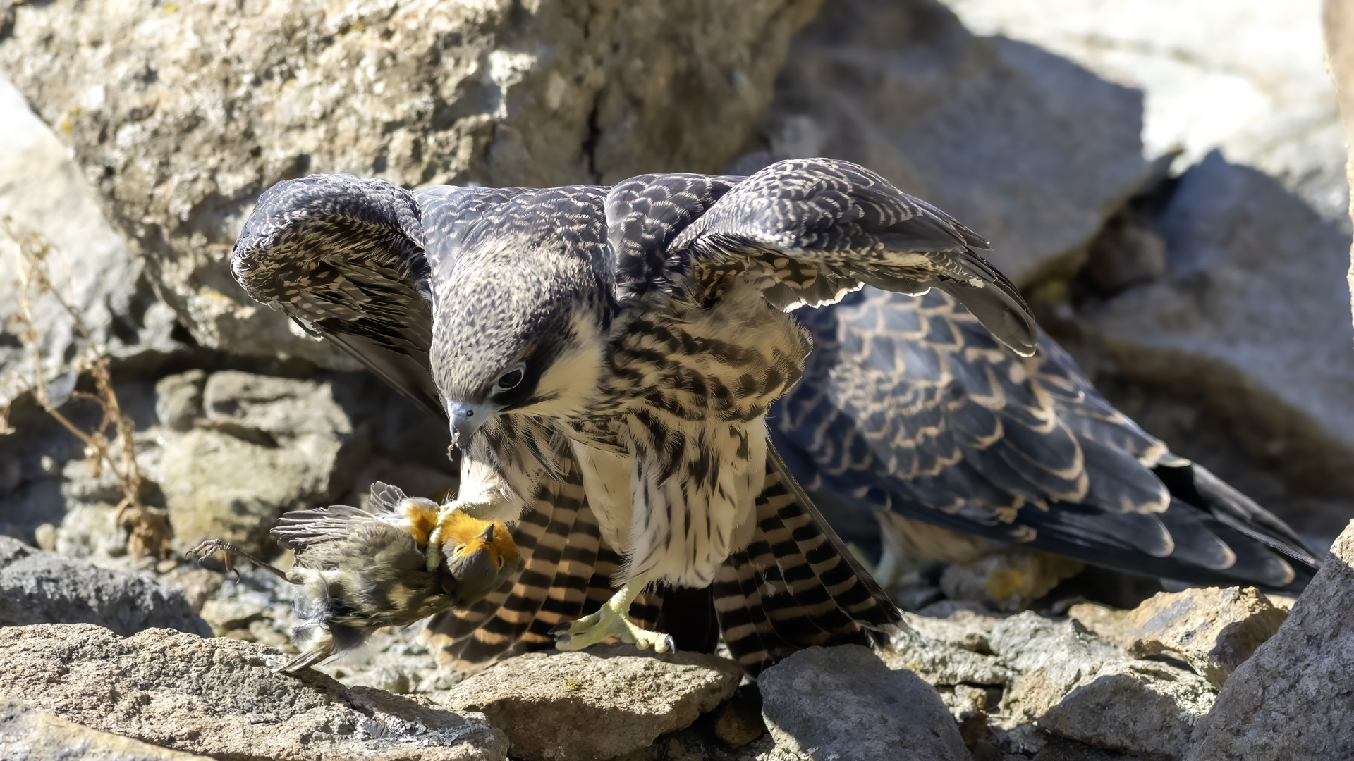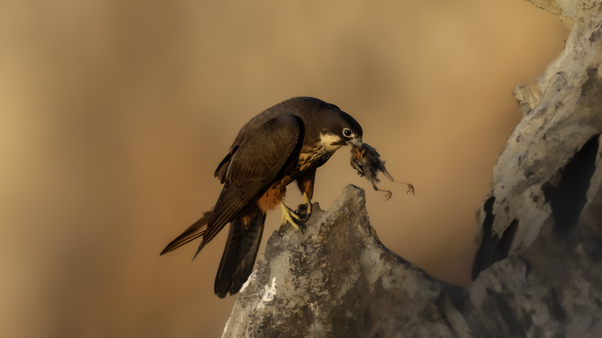 The last of the falcons included in the fauna of Poland is finally making its way into my gallery, and not just with documentary photos of its contents. Eleonora's Falcons may not be a very rare species, but they are found on rocky cliffs, so it is difficult to get good photos that require to reduce distance to the birds. They occur during the breeding season almost all over the Mediterranean. I managed to observe and photograph them in Italy. The falcons nesting site is truly breathtaking. Beautiful rock formations, cliffs with various cracks, gouges, where the falcons have thousands of places to nest. Sitting in the falcon's shelter, the sun initially colours the whole cliff in an intense yellow with its light, so that after a while the intense light creates big contrasts and a completely different aesthetic impression of the falcon's habitat. There were a lot of birds and sometimes they were so close that a souvenir film of such an encounter had to be taken with a phone, because the long lenses that were at hand could not cope. I took a lot of time, sitting among the falcons on the cliff because it's amazing to be so close to them in such a beautiful, amazing natural setting. Taking static photos of the birds sitting on the rock is not a problem at this location. It just takes a little perseverance, determination and patience until the falcon sits close enough in good light to snap a good photo. Those dynamic shots of the birds in flight are, as always, already more difficult to come by, which required many attempts to produce. Falcons, as falcons do, fly very fast and, unfortunately, they change their flight direction quite unexpectedly, either by diving or soaring. They do this very quickly, which makes it difficult to capture in flight. In addition, it is important to remember that they are quite small birds. Their body weight is a few hundred grams, they do not exceed 0.5 kg, and their wingspan is about one metre. But a couple of days, dawn and pre-sunset sessions and I managed to take pictures for a very good gallery for my website. The least problem was with the soundtrack recording. They were calling almost all the time and a good quality recording of the Eleonora's Falcon voice was also produced. It is amazing that suddenly in October, the whole colony will make a migration to Madagascar in search of food for the winter. In the Mediterranean, the climatic conditions are not so bad that the falcons have to migrate, but there is then not enough food for them to survive. But why to Madagascar?-that nobody seems to know. While photographing, I observed that the most common bird brought to young falcon fledglings was the European Robin, for which the migration ended in Italy. Quite a peculiar feeling as the falcon brings a killed redwing to the young ones on a rock shelf. In Poland I photographed them many times, admired them and here suddenly a dead European Robin. This year, the food must have been plentiful, because there were two young birds in each nest, and receiving one redstart to share, the birds did not fight, but shared it unanimously. A wonderful impression, amazing birds - an – gallery was created, which due to the resulting extraordinary photos and memories of the stay in Italy goes to my favourite galleries.