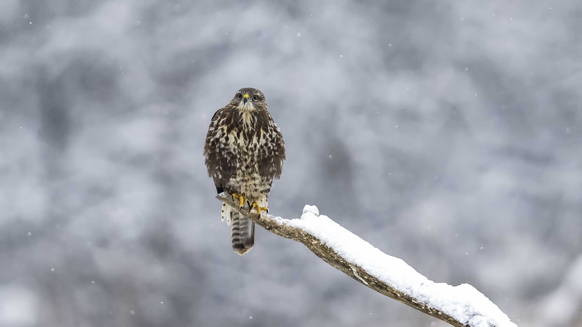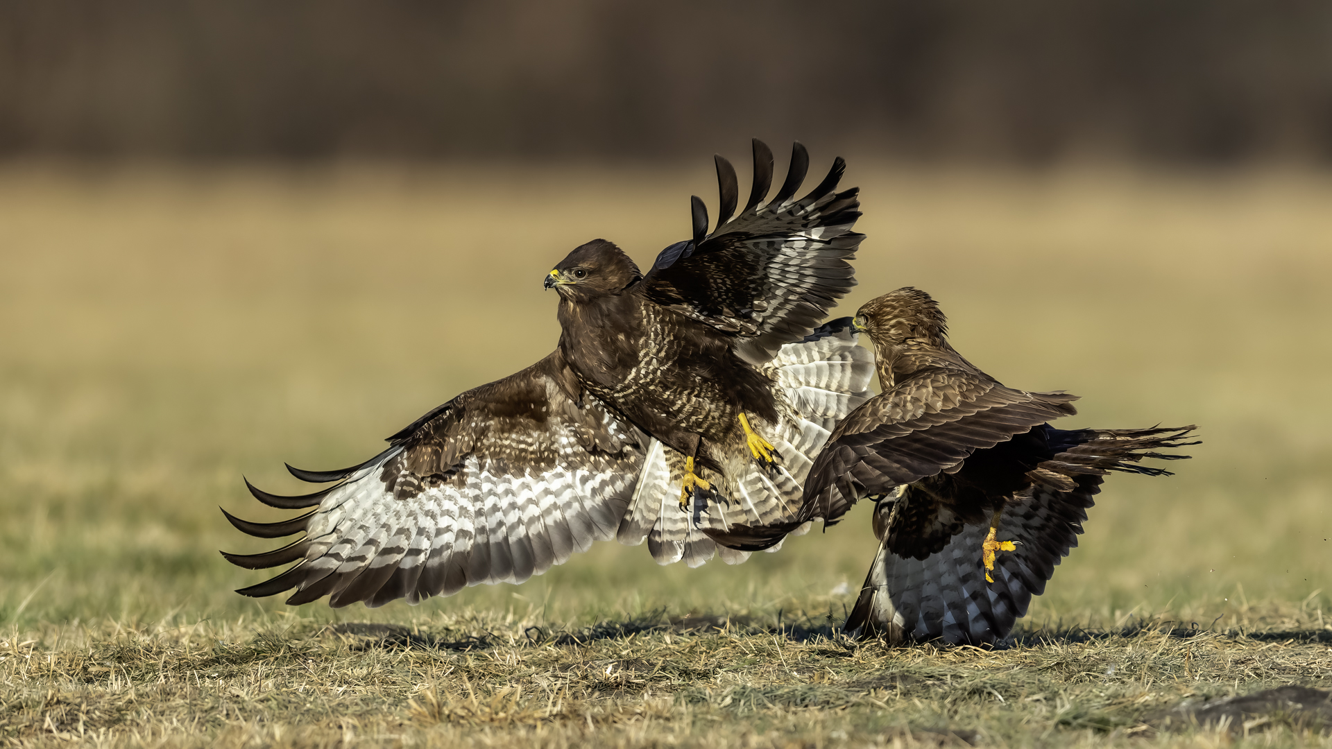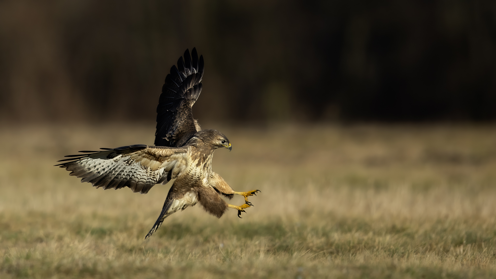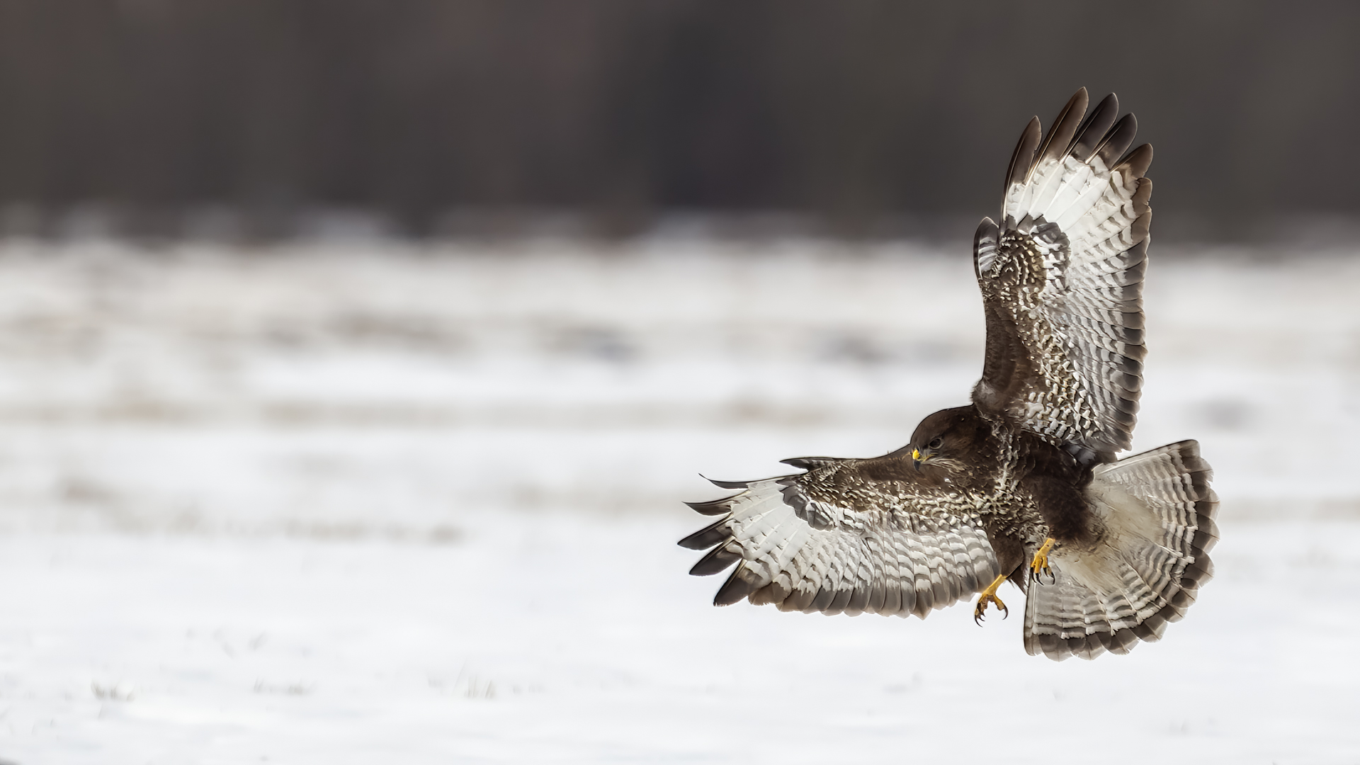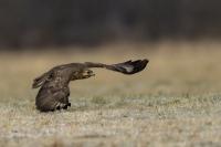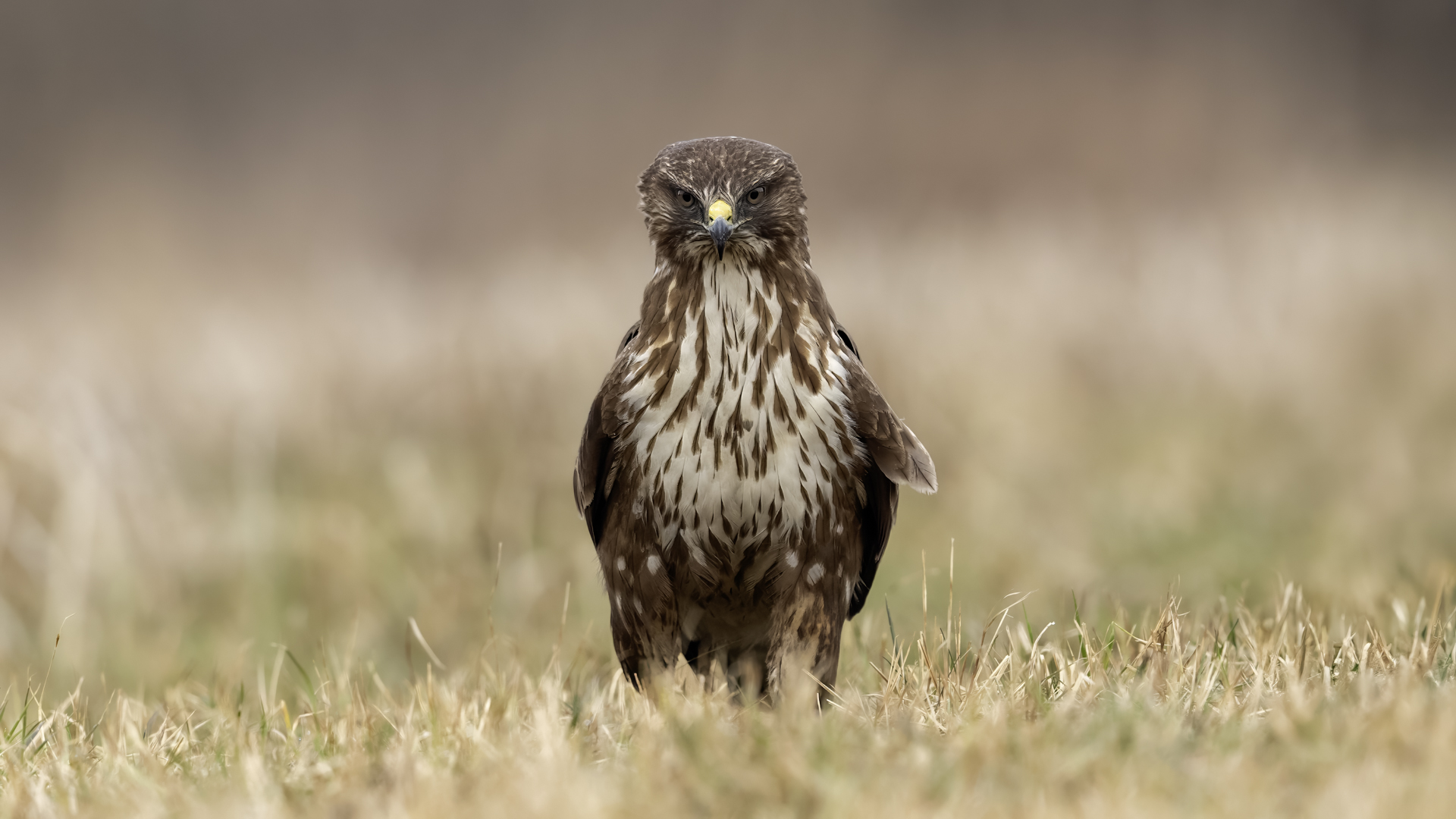 It is my biggest gallery, along with a White-tailed Eagle. It is caused by the fact that they are often the first quests at the watching spot, before White-tailed Eagles arrive. Undoubtly they are one of beautiful, majestic predators. Its population grows, to the point, where it can be photographed on the outskirts of cities and towns, not to mention their watching points along the roads. Of course, as a predator it is quite timid and has got a very good eyesight. So if we make a move in the forest it will most likely spot us and fly away. As always, with observation and photographing I recommend camouflage and easy moves. While you observe Buzzards you can see how good eyesight they have. From around 100 metres, sitting on a bale of straw, he has spotted a mouse, which life was about to come to an end, in a matter of seconds. After literally small spiring with a sliding flight it fell on its victim and returned to the observation point to eat its prey. Buzzard is our medium sized predator, surely most widespread. Some sources say there are even tens of thousands of couples in Poland. It weighs around 1 kilogram and its wingspan is around 1.2 meters.