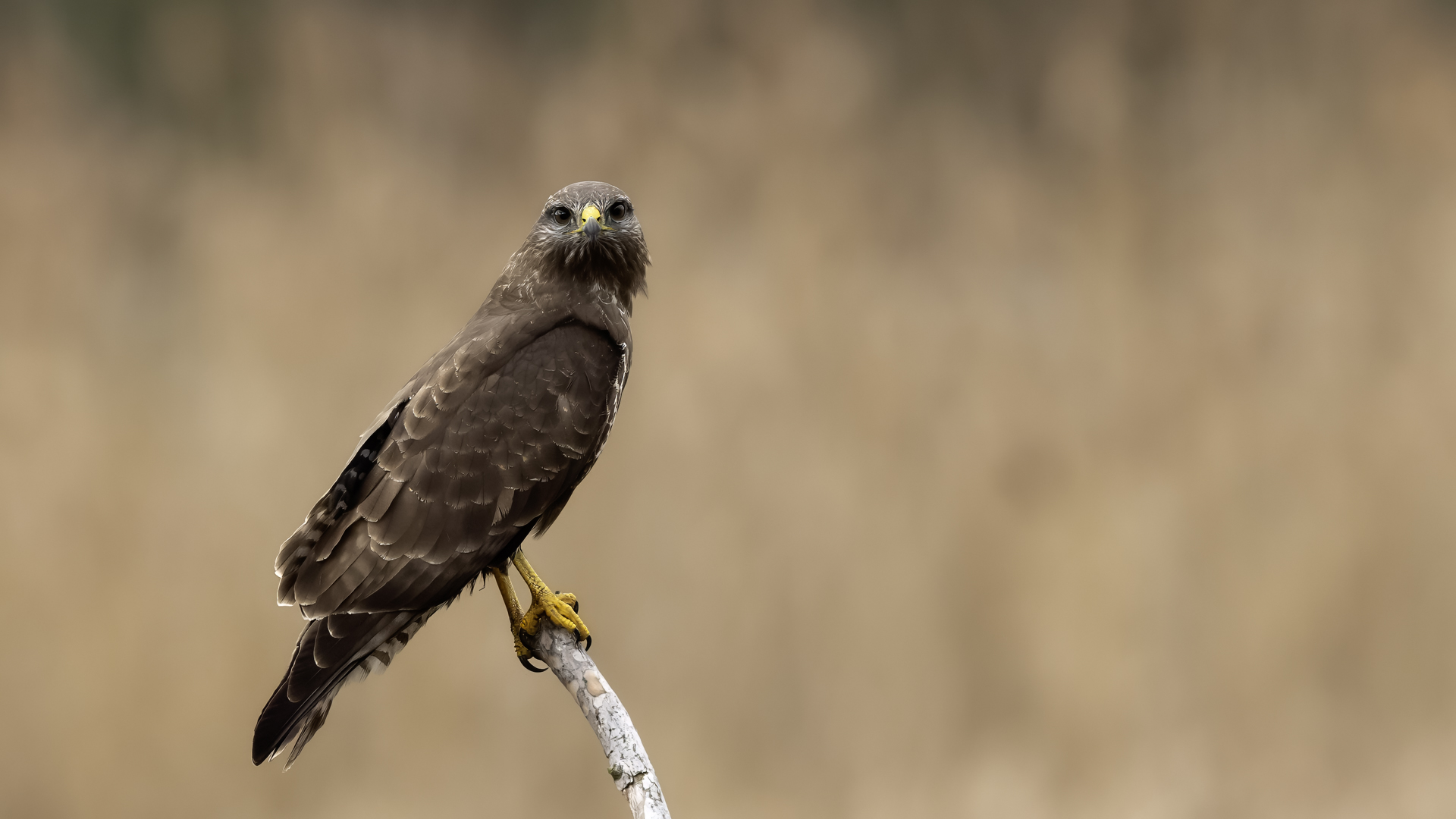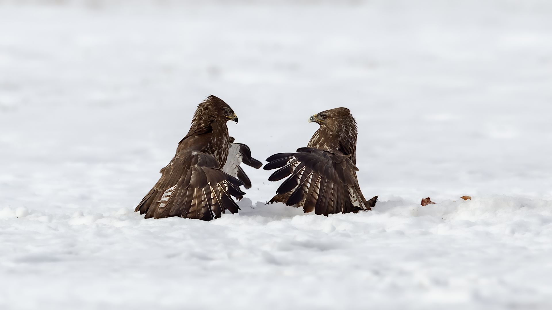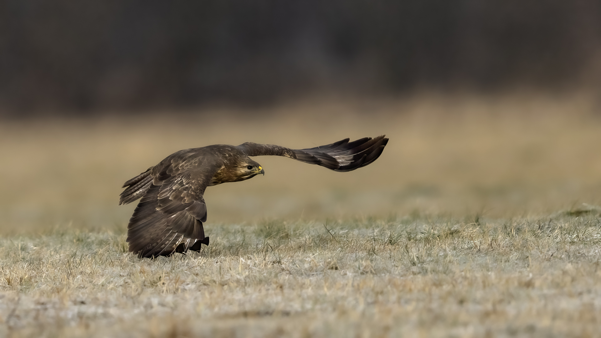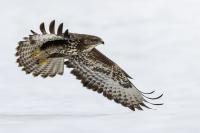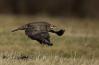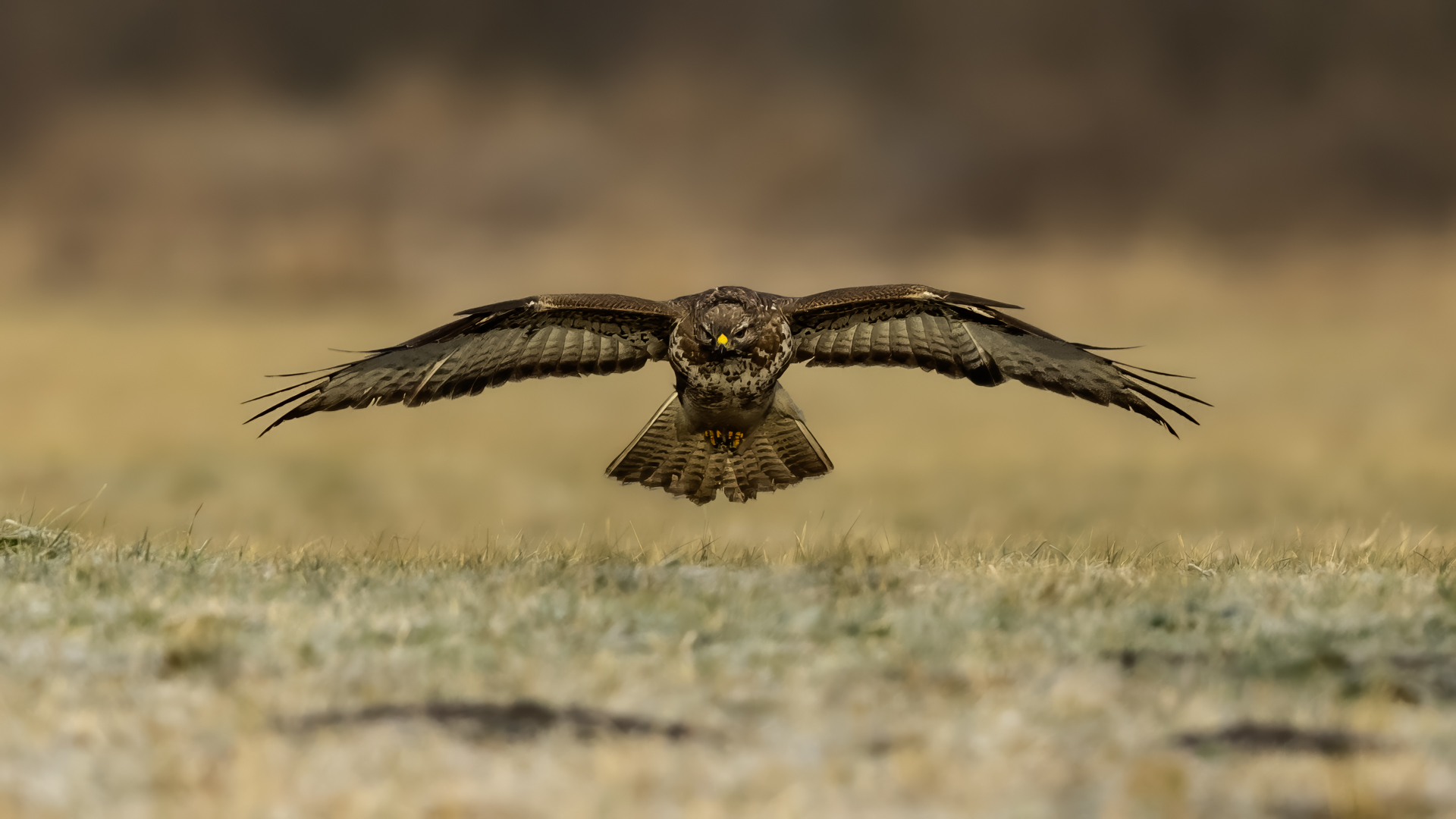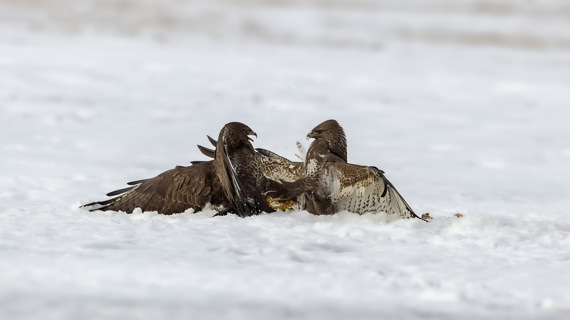It is my biggest gallery, along with a White-tailed Eagle. It is caused by the fact that they are often the first quests at the watching spot, before White-tailed Eagles arrive. Undoubtly they are one of beautiful, majestic predators. Its population grows, to the point, where it can be photographed on the outskirts of cities and towns, not to mention their watching points along the roads. Of course, as a predator it is quite timid and has got a very good eyesight. So if we make a move in the forest it will most likely spot us and fly away. As always, with observation and photographing I recommend camouflage and easy moves. While you observe Buzzards you can see how good eyesight they have. From around 100 metres, sitting on a bale of straw, he has spotted a mouse, which life was about to come to an end, in a matter of seconds. After literally small spiring with a sliding flight it fell on its victim and returned to the observation point to eat its prey. Buzzard is our medium sized predator, surely most widespread. Some sources say there are even tens of thousands of couples in Poland. It weighs around 1 kilogram and its wingspan is around 1.2 meters.