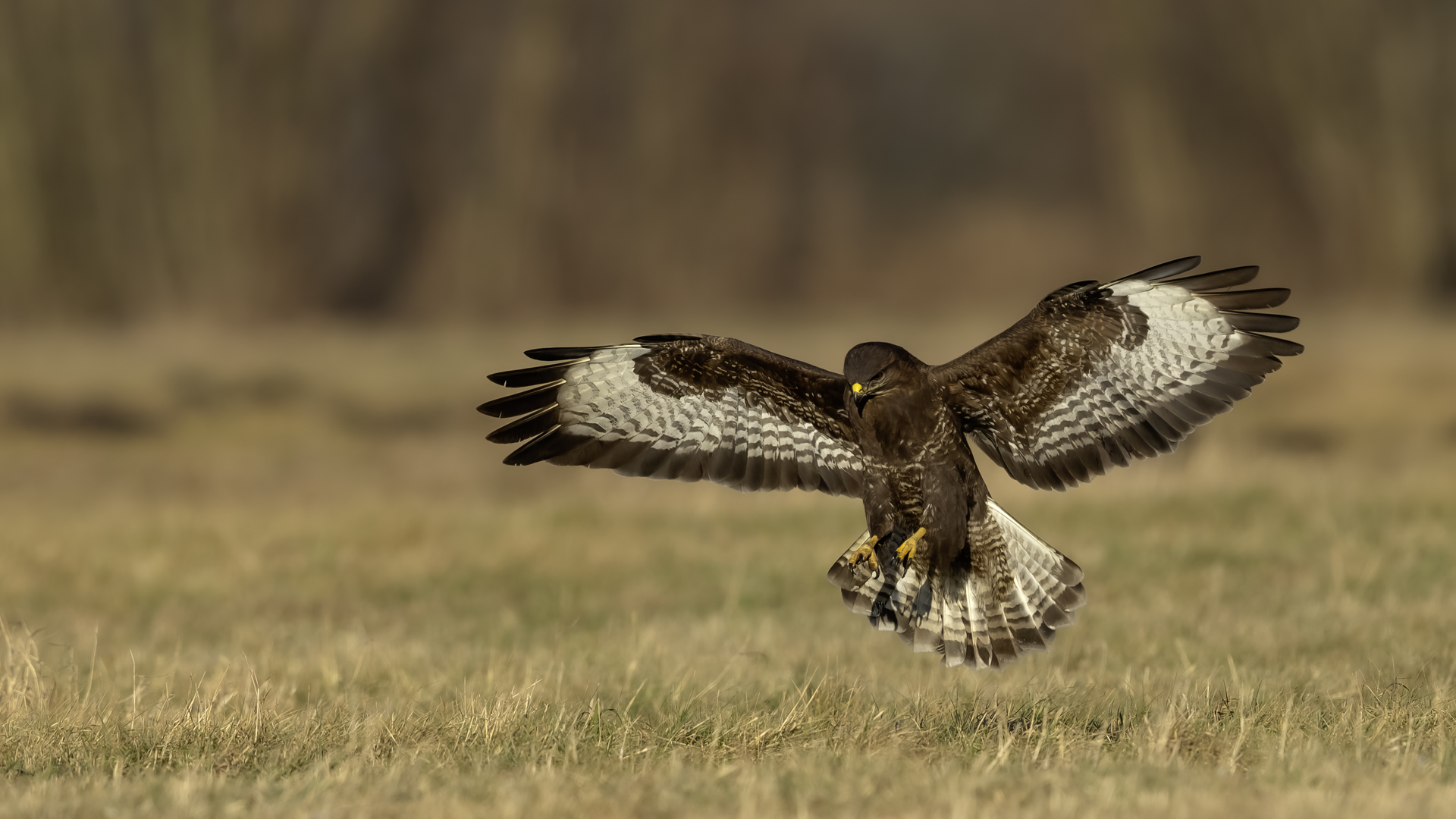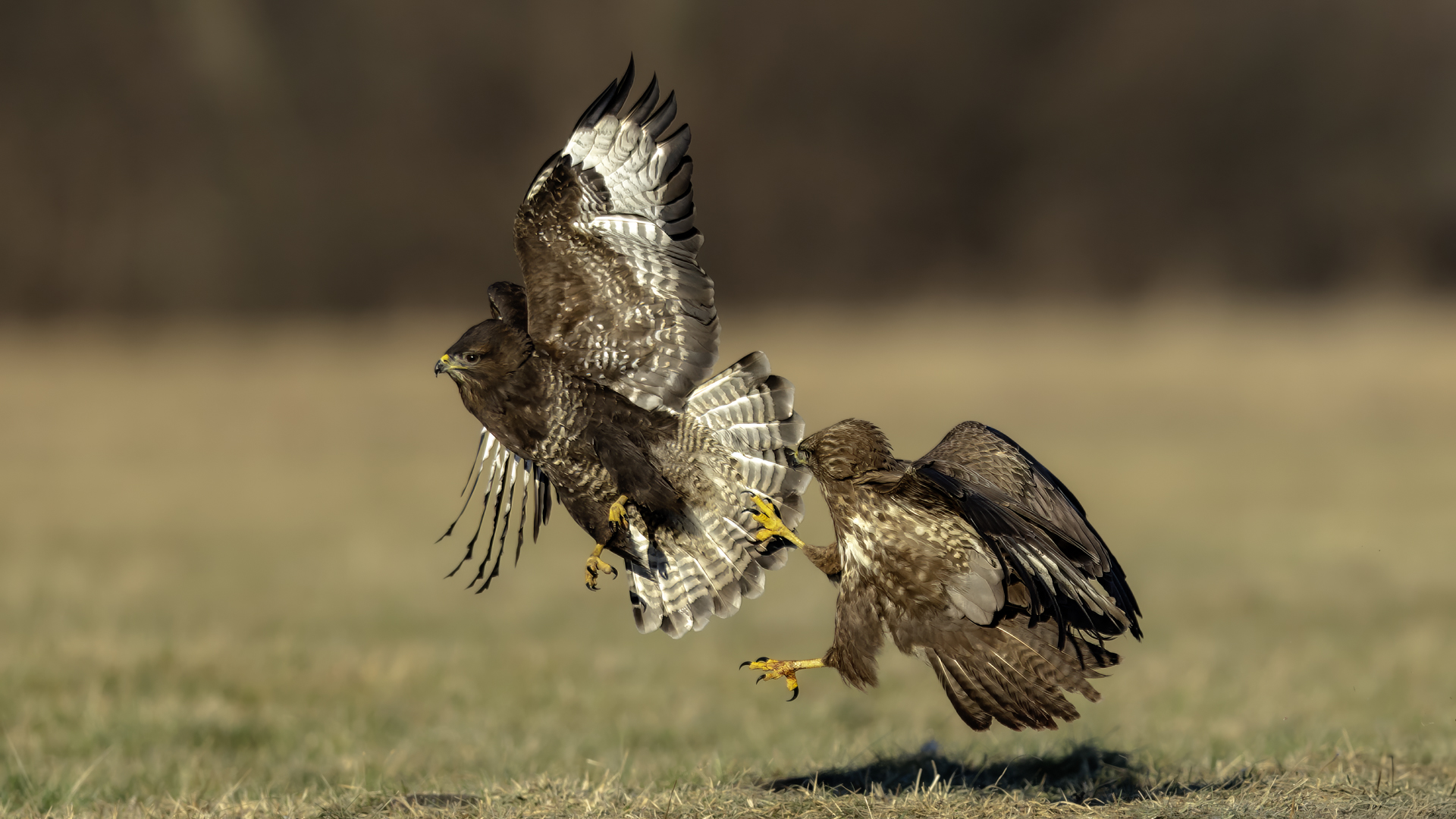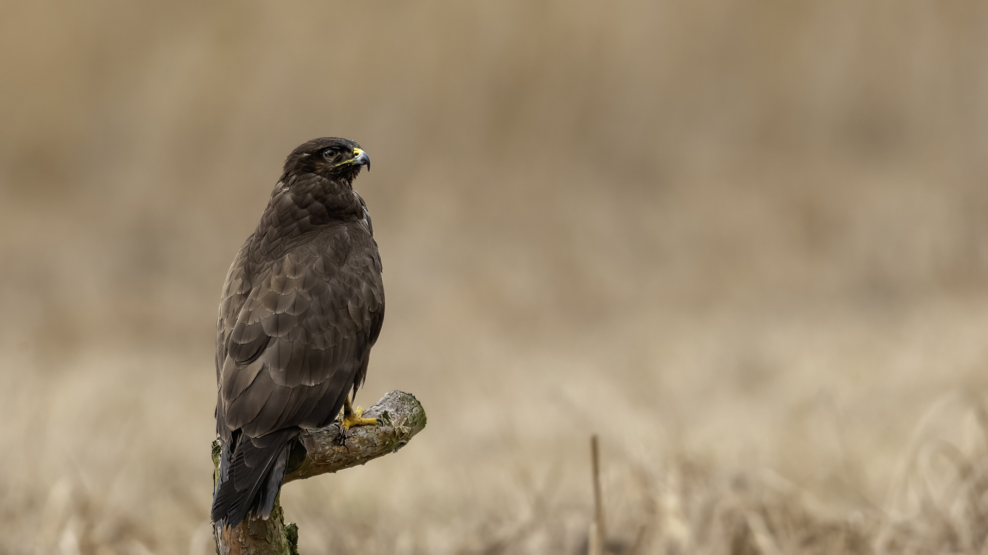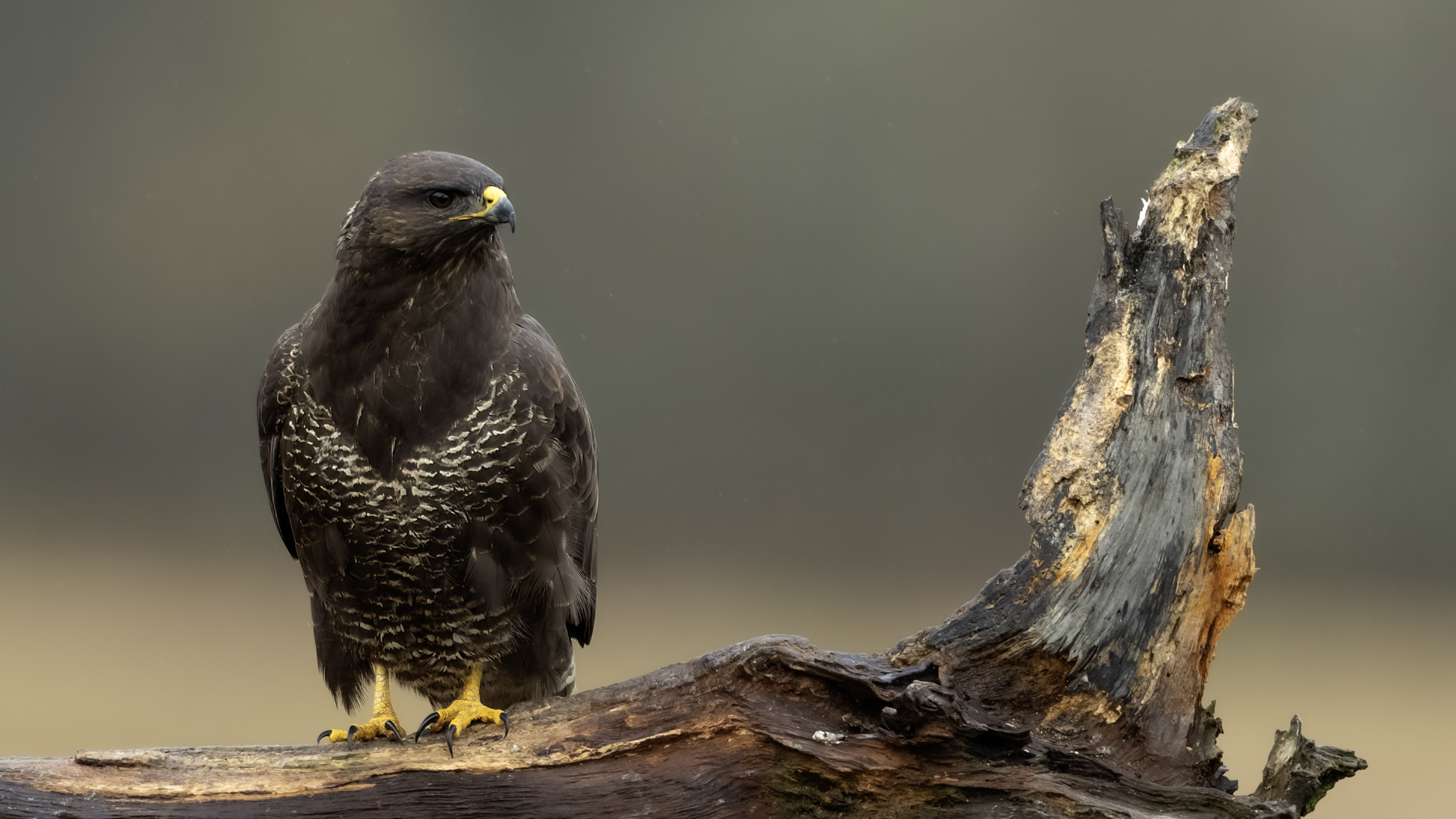 It is my biggest gallery, along with a White-tailed Eagle. It is caused by the fact that they are often the first quests at the watching spot, before White-tailed Eagles arrive. Undoubtly they are one of beautiful, majestic predators. Its population grows, to the point, where it can be photographed on the outskirts of cities and towns, not to mention their watching points along the roads. Of course, as a predator it is quite timid and has got a very good eyesight. So if we make a move in the forest it will most likely spot us and fly away. As always, with observation and photographing I recommend camouflage and easy moves. While you observe Buzzards you can see how good eyesight they have. From around 100 metres, sitting on a bale of straw, he has spotted a mouse, which life was about to come to an end, in a matter of seconds. After literally small spiring with a sliding flight it fell on its victim and returned to the observation point to eat its prey. Buzzard is our medium sized predator, surely most widespread. Some sources say there are even tens of thousands of couples in Poland. It weighs around 1 kilogram and its wingspan is around 1.2 meters.