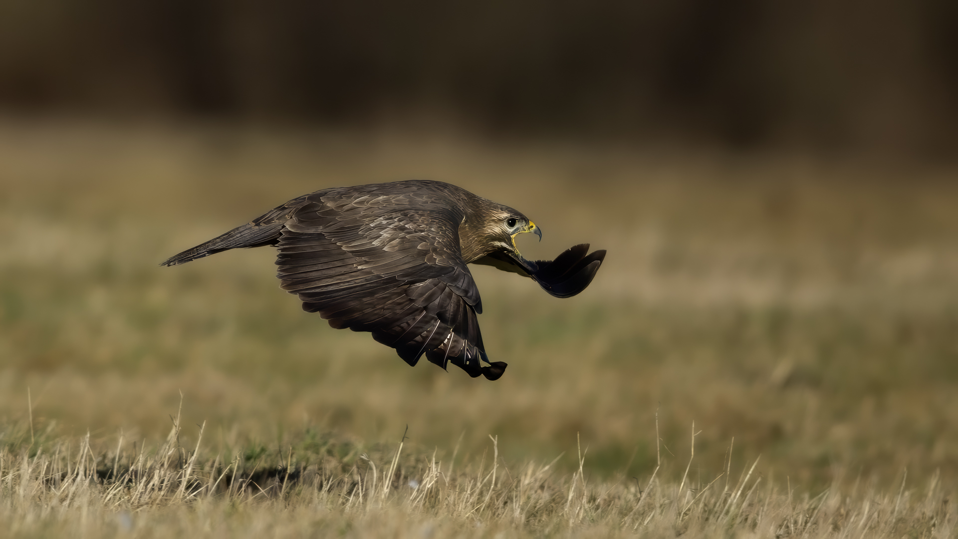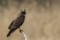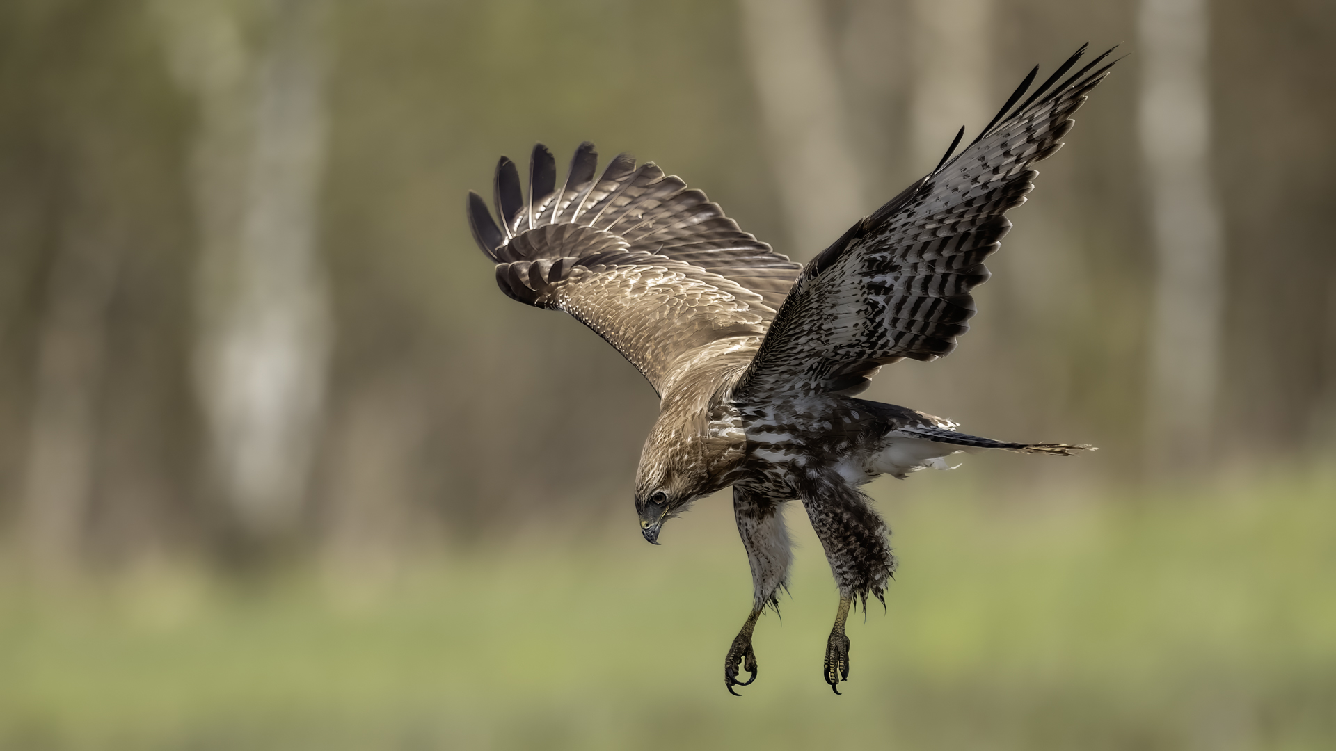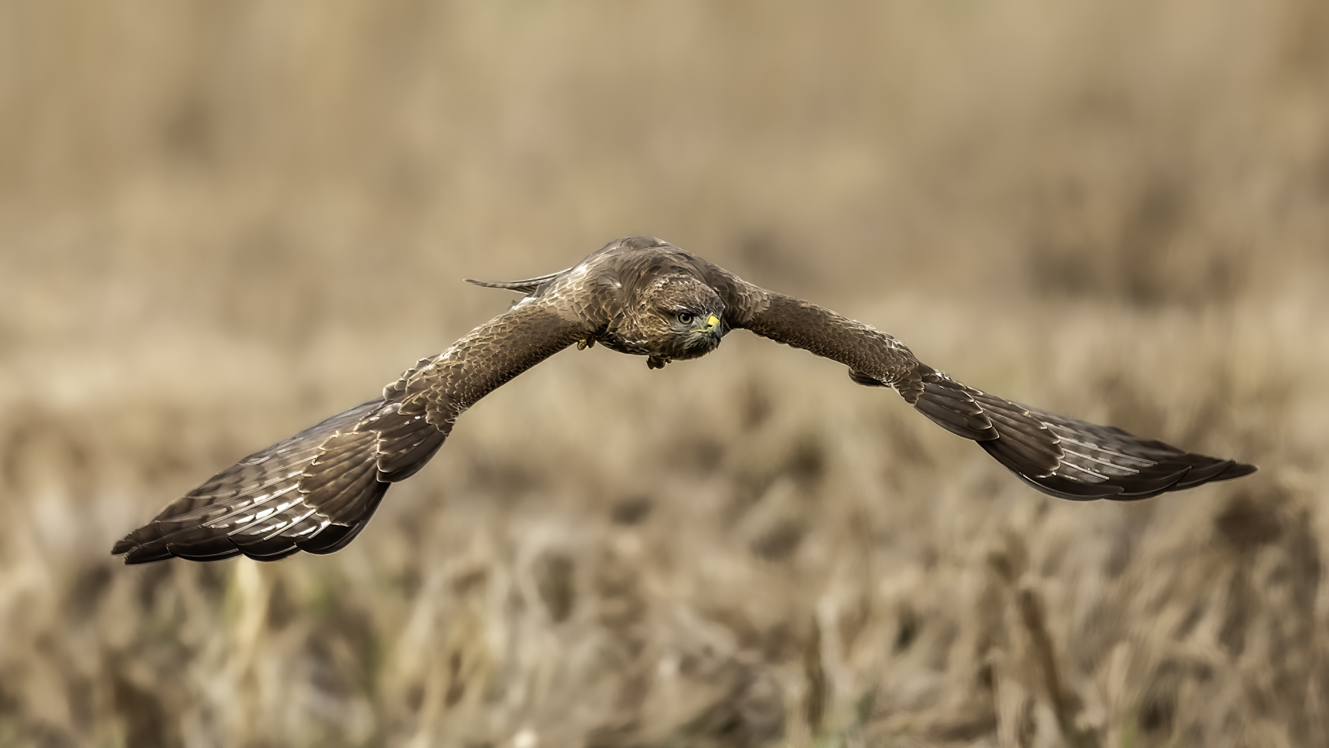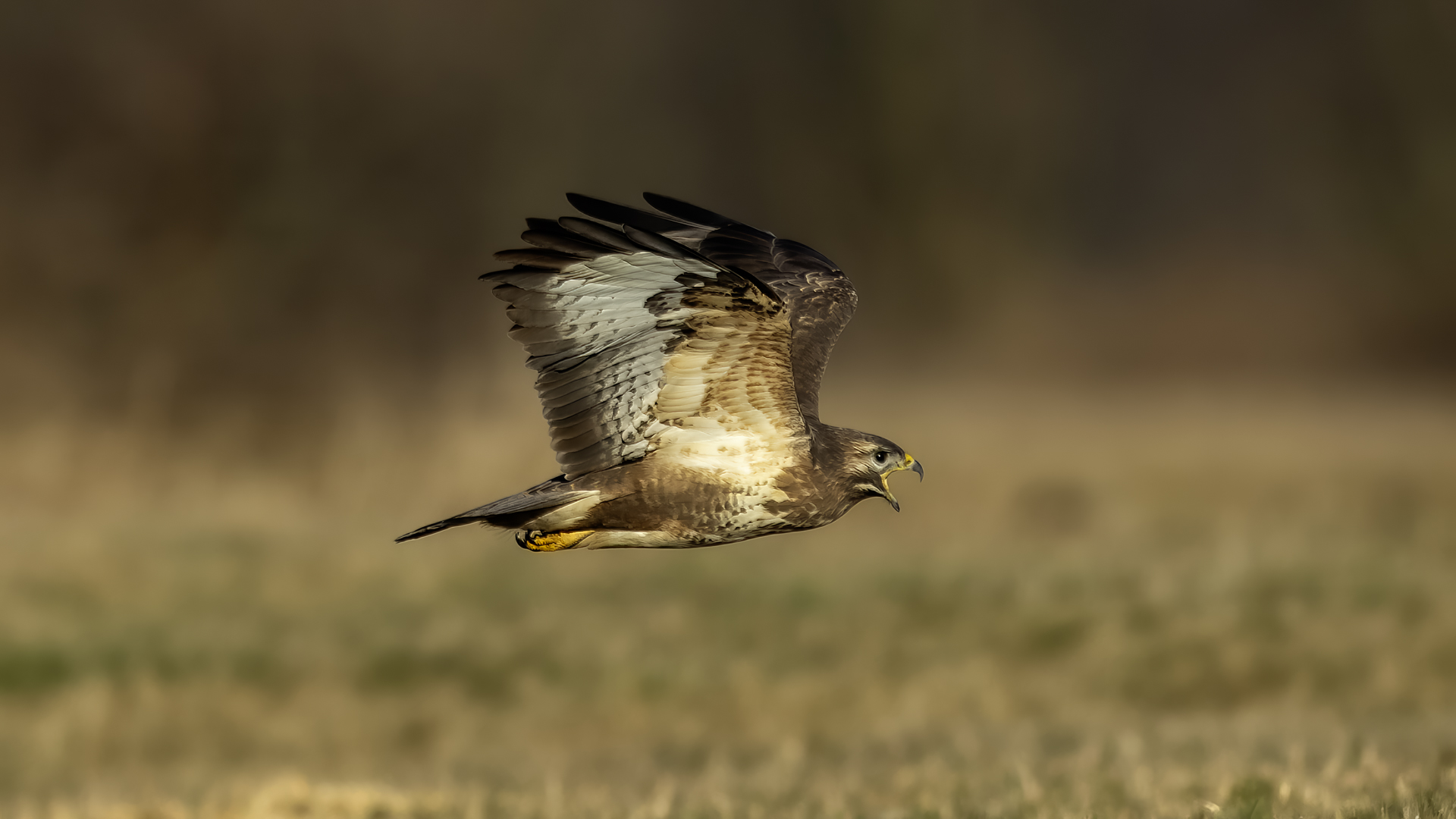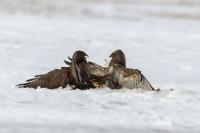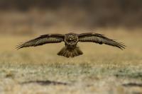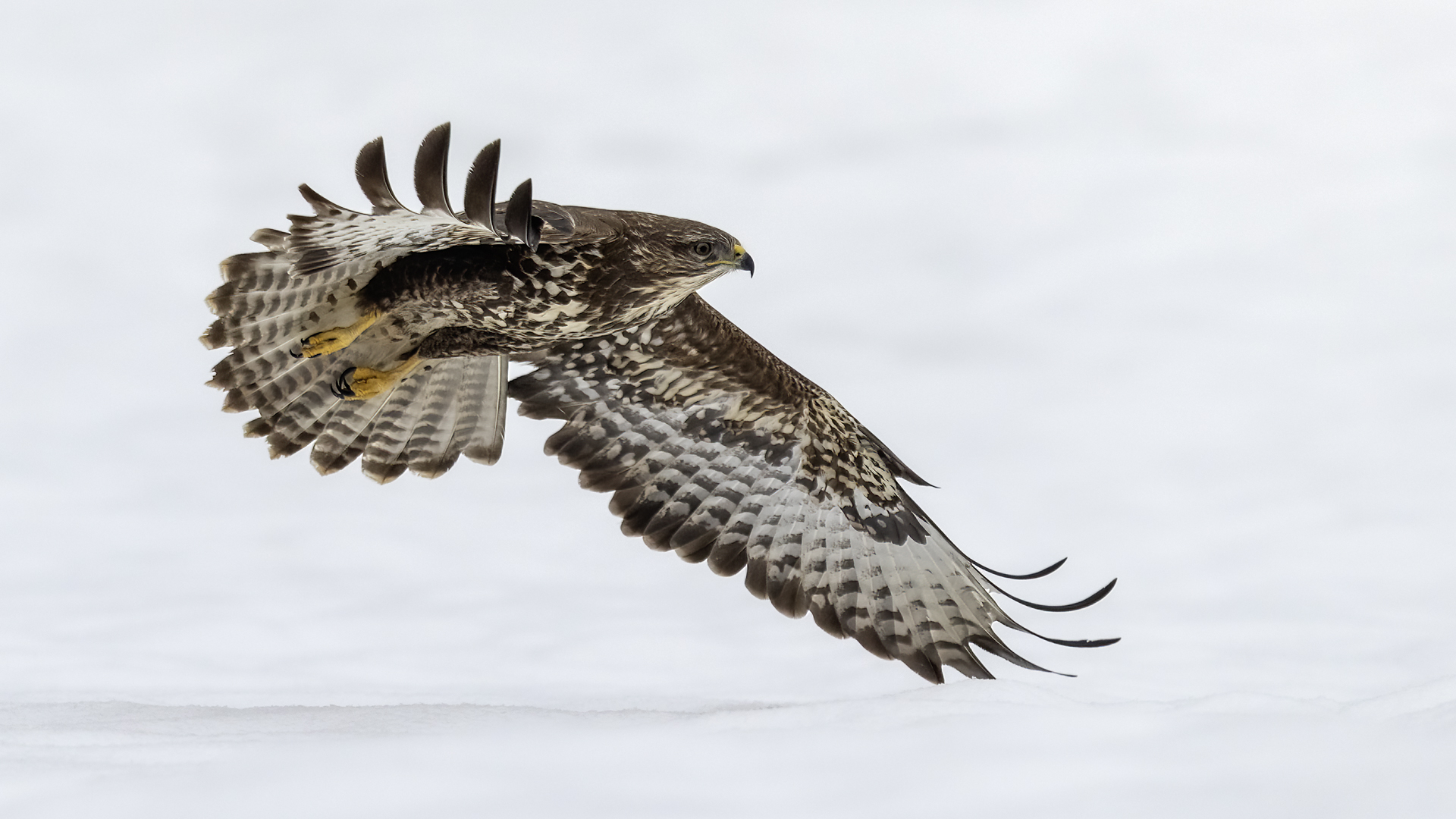 It is my biggest gallery, along with a White-tailed Eagle. It is caused by the fact that they are often the first quests at the watching spot, before White-tailed Eagles arrive. Undoubtly they are one of beautiful, majestic predators. Its population grows, to the point, where it can be photographed on the outskirts of cities and towns, not to mention their watching points along the roads. Of course, as a predator it is quite timid and has got a very good eyesight. So if we make a move in the forest it will most likely spot us and fly away. As always, with observation and photographing I recommend camouflage and easy moves. While you observe Buzzards you can see how good eyesight they have. From around 100 metres, sitting on a bale of straw, he has spotted a mouse, which life was about to come to an end, in a matter of seconds. After literally small spiring with a sliding flight it fell on its victim and returned to the observation point to eat its prey. Buzzard is our medium sized predator, surely most widespread. Some sources say there are even tens of thousands of couples in Poland. It weighs around 1 kilogram and its wingspan is around 1.2 meters.