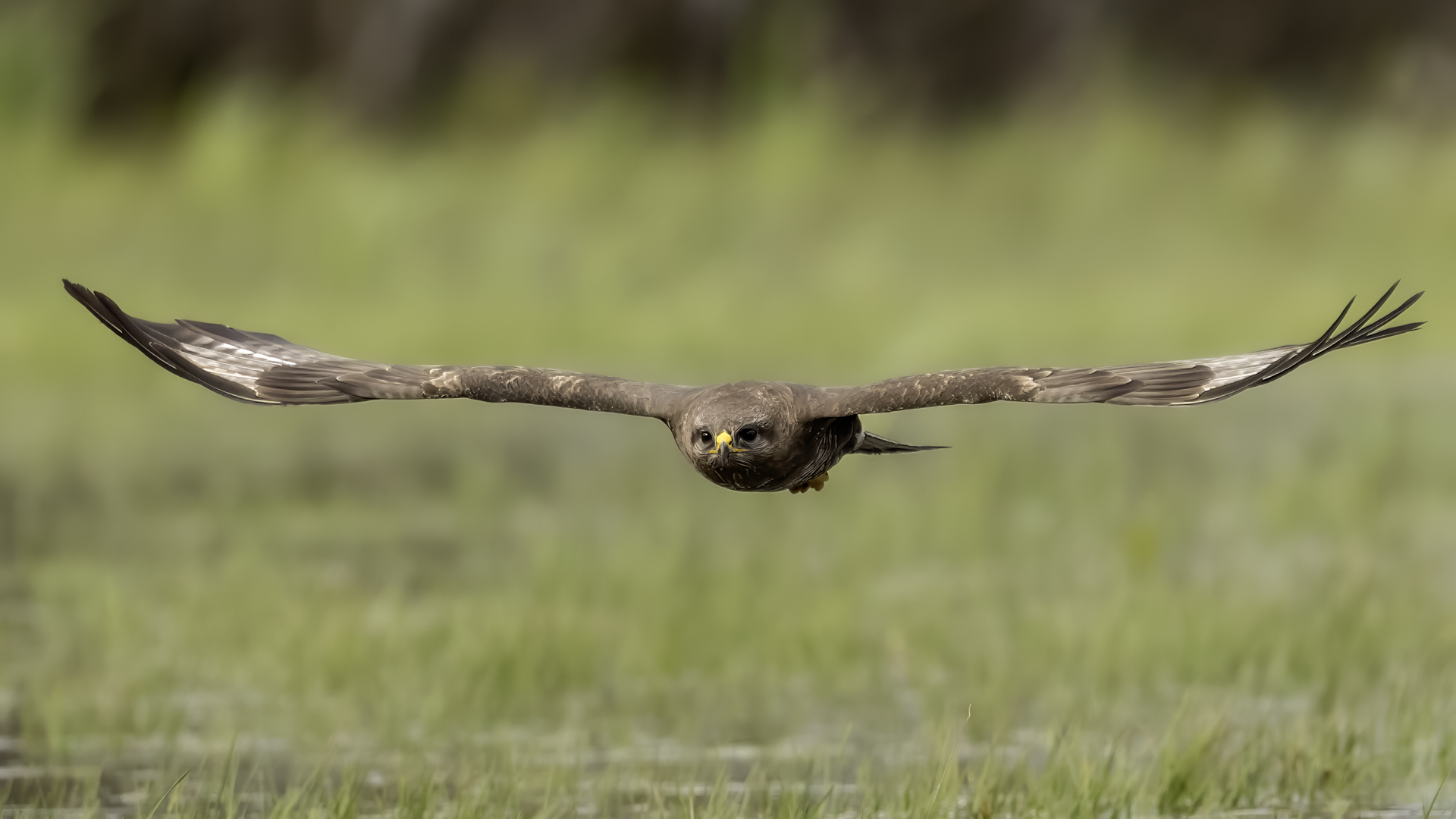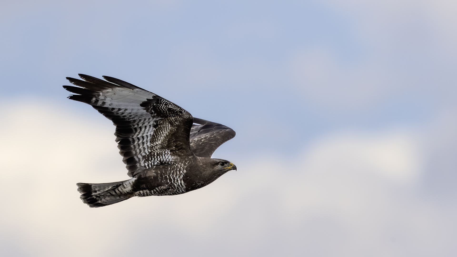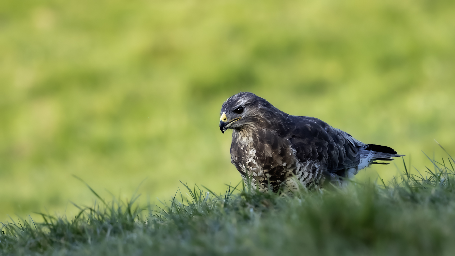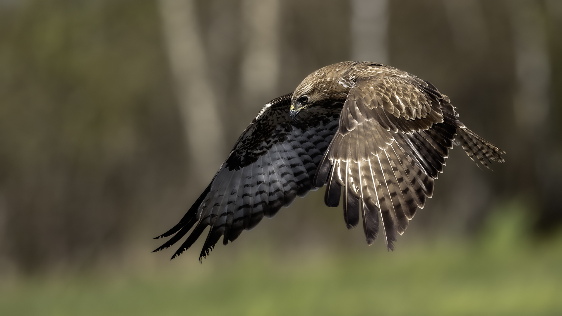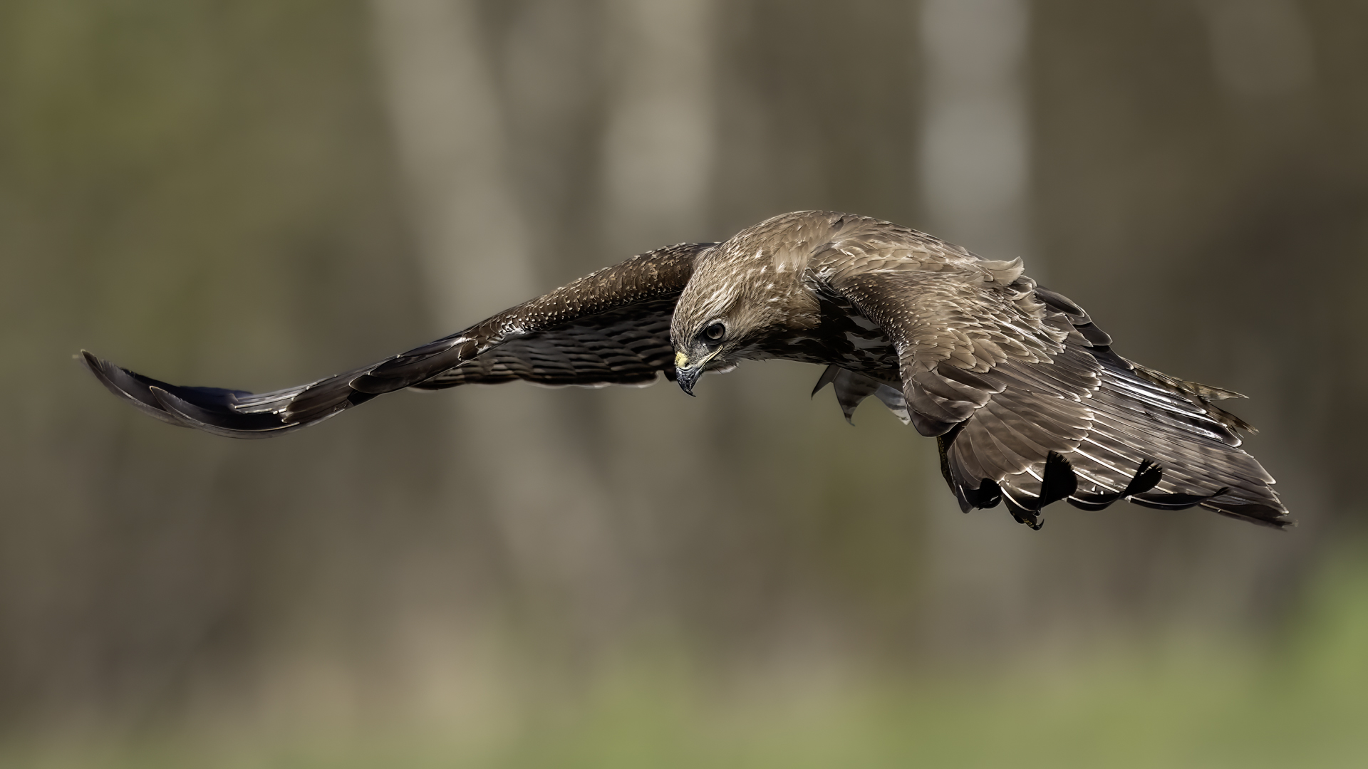 It is my biggest gallery, along with a White-tailed Eagle. It is caused by the fact that they are often the first quests at the watching spot, before White-tailed Eagles arrive. Undoubtly they are one of beautiful, majestic predators. Its population grows, to the point, where it can be photographed on the outskirts of cities and towns, not to mention their watching points along the roads. Of course, as a predator it is quite timid and has got a very good eyesight. So if we make a move in the forest it will most likely spot us and fly away. As always, with observation and photographing I recommend camouflage and easy moves. While you observe Buzzards you can see how good eyesight they have. From around 100 metres, sitting on a bale of straw, he has spotted a mouse, which life was about to come to an end, in a matter of seconds. After literally small spiring with a sliding flight it fell on its victim and returned to the observation point to eat its prey. Buzzard is our medium sized predator, surely most widespread. Some sources say there are even tens of thousands of couples in Poland. It weighs around 1 kilogram and its wingspan is around 1.2 meters.
