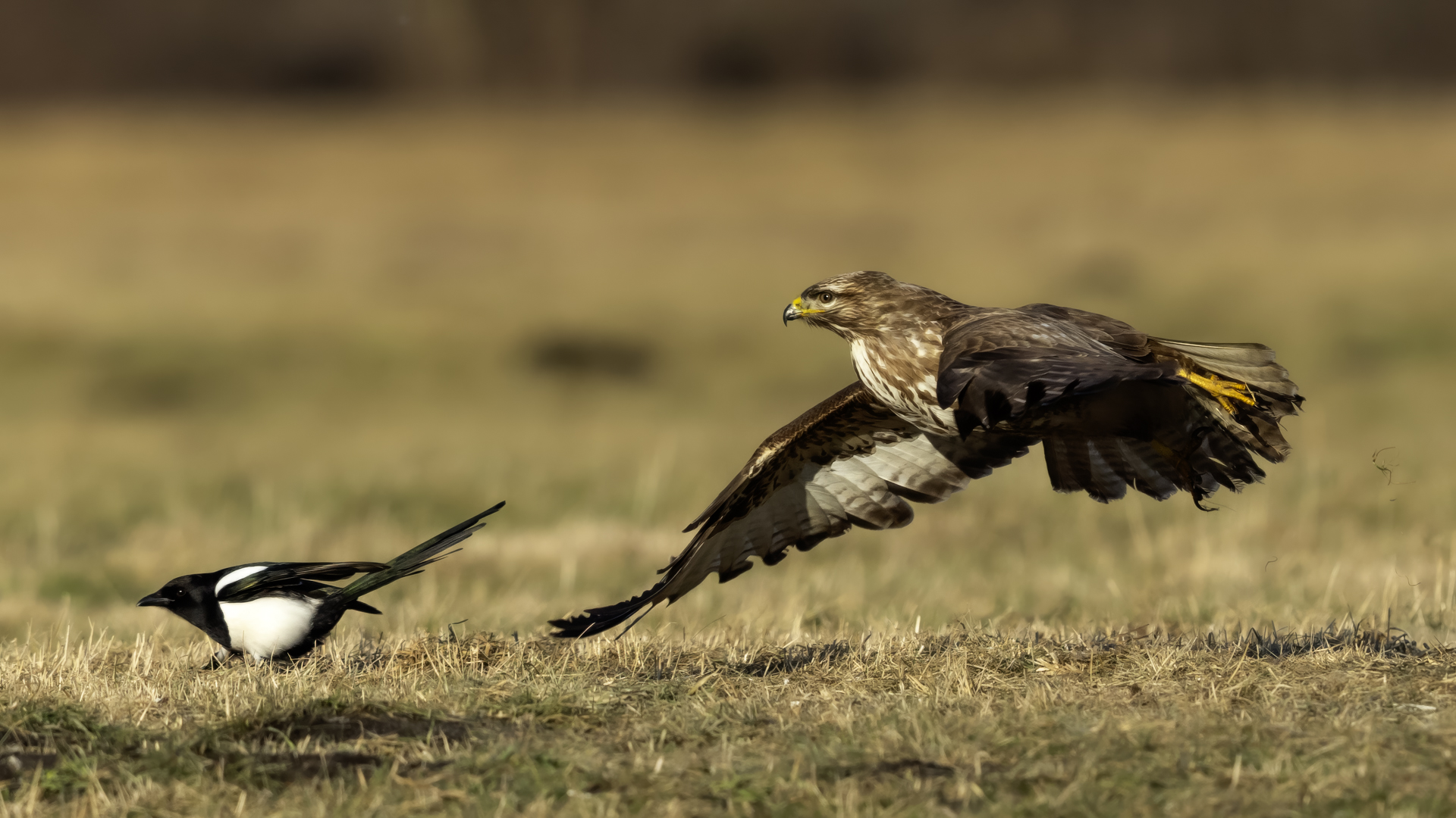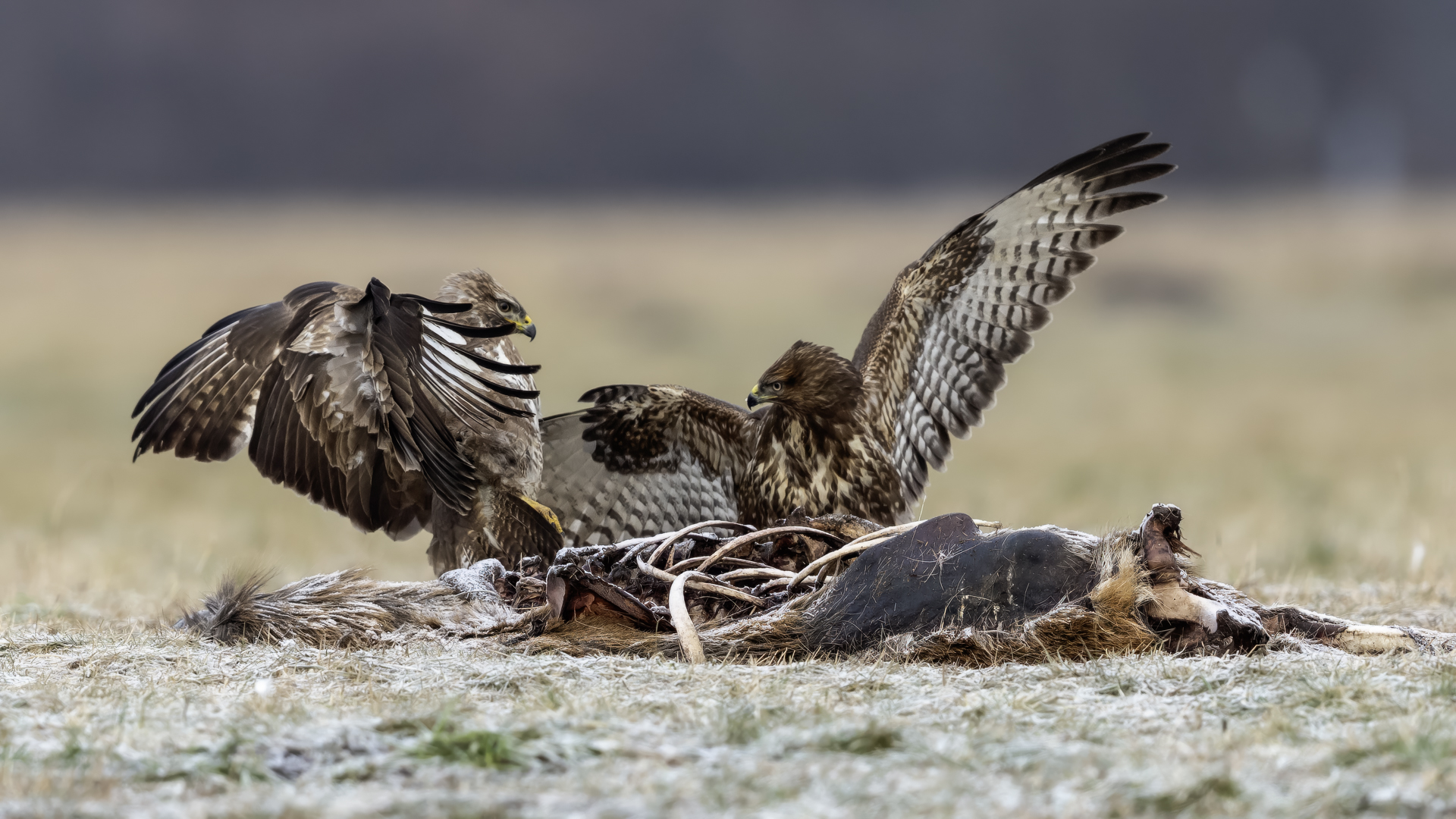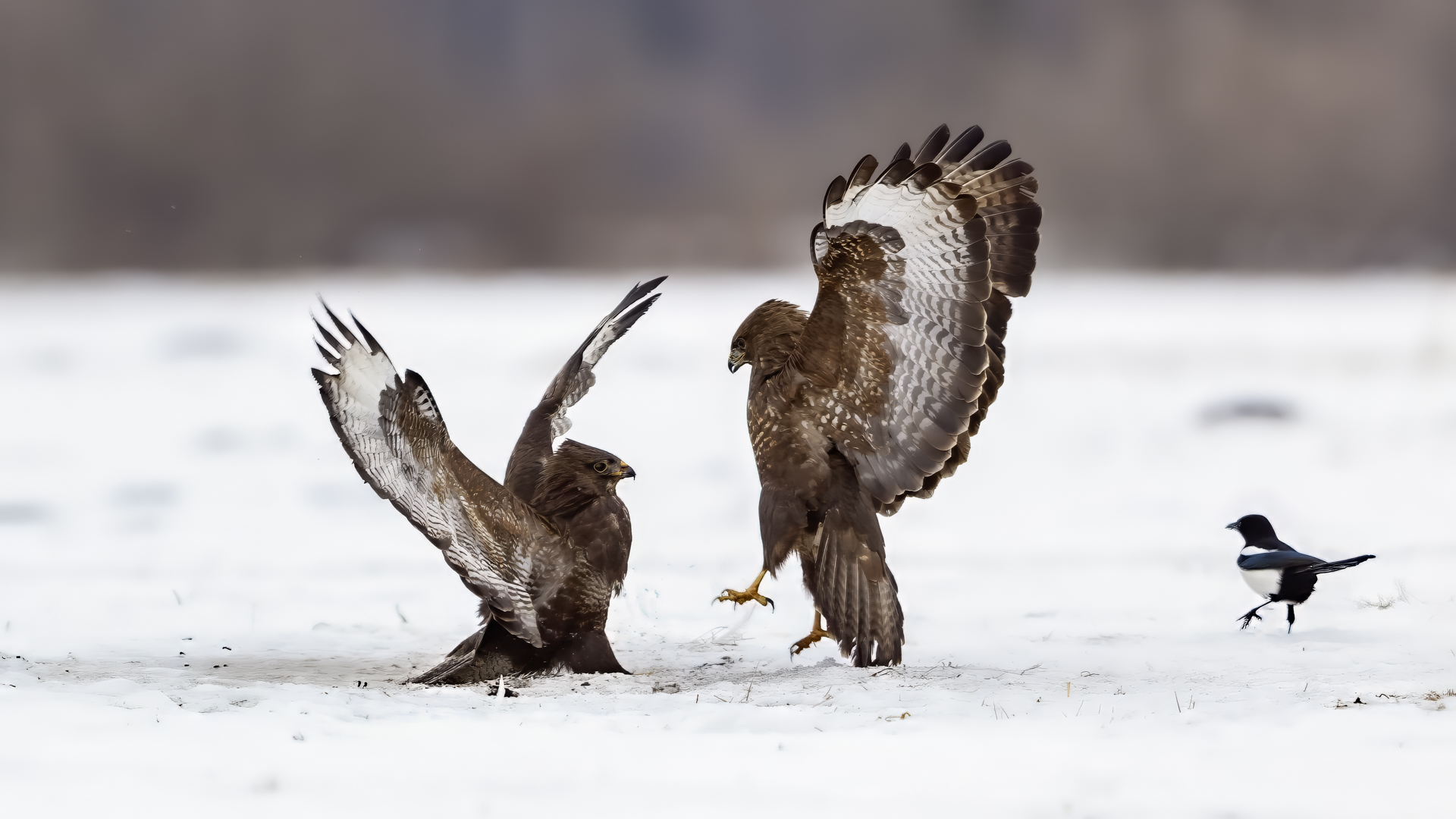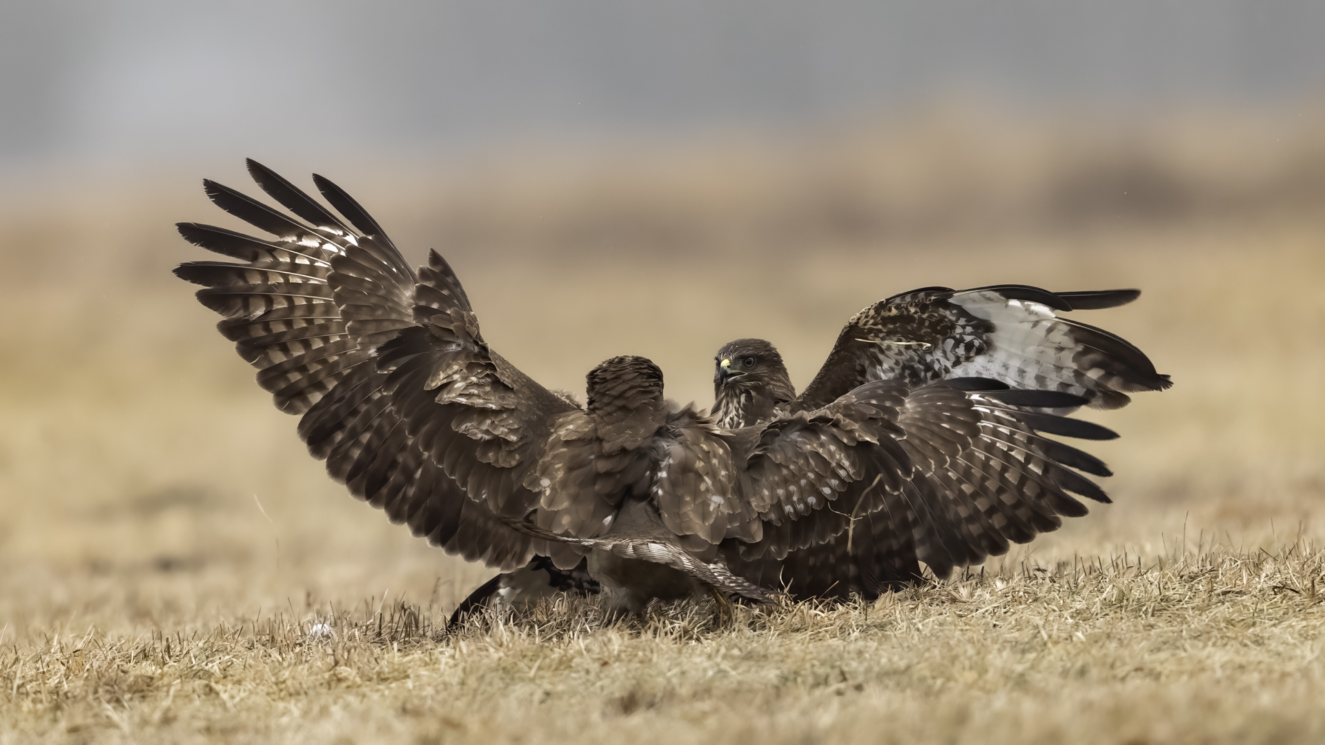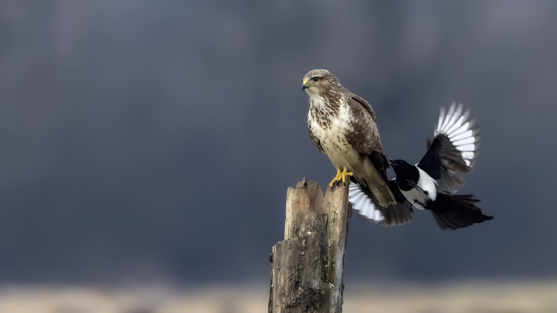 Taking a few photos of buzzards while waiting for the Greater Spotted Eagle was a pretext for the reconstruction of the gallery. Buzzards and Marsh Harriers competed for food, and from time to time you could see their sky-high skirmishes and scuffles.