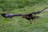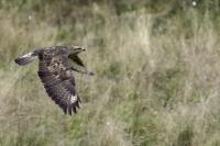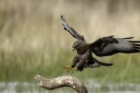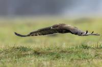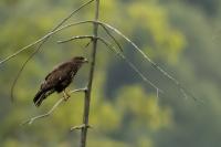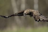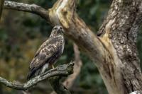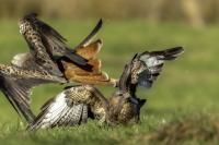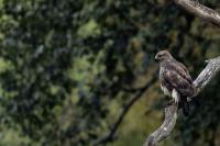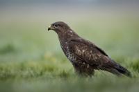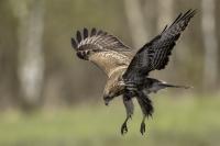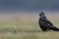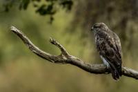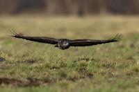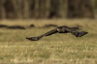 These were buzzards that appeared in front of " the kite" hide first. They sat on the ground or on the trees nearby and they were calmly waiting for a meal. There were not many of them. Three or four buzzards that appeared were a real variation among hundreds of kites. When food for the birds was provided at the feeding point the kites were frenziedly flying up in great number, and the buzzards quietly wanting on the ground to feed were clearly nervous by kite raids. They were irritated to such extend that they sometimes gave up on the meal and waited for the moment to calm down the situation. A few interesting photos were created, which seemed worth adding to the gallery of this species and the gallery was renewed.