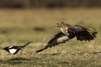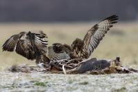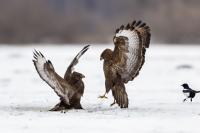 This time the Common Buzzard's behaviour was a big surprise for me. It is usually the first one at the feeding ground, not counting Eurasian Magpies or Hooded Crows, but not this time. Earlier before Buzzard’s dined Marsh Harrier, Red Kite and he was always a bit distant, but this time it was very shy. Nevertheless I managed to take some photos, which I added to the gallery.