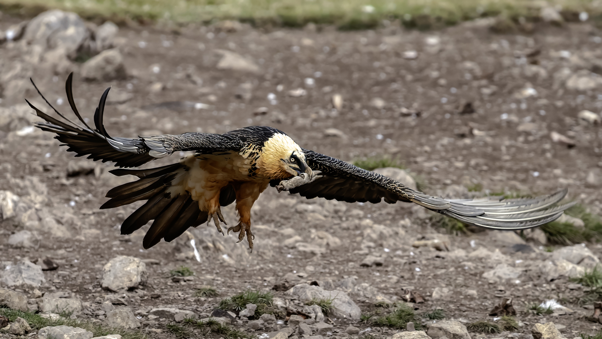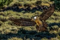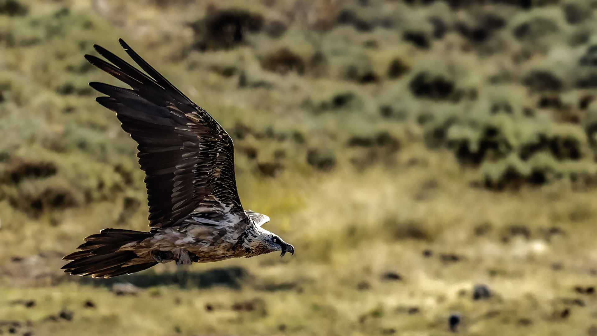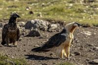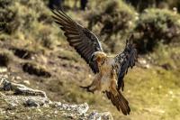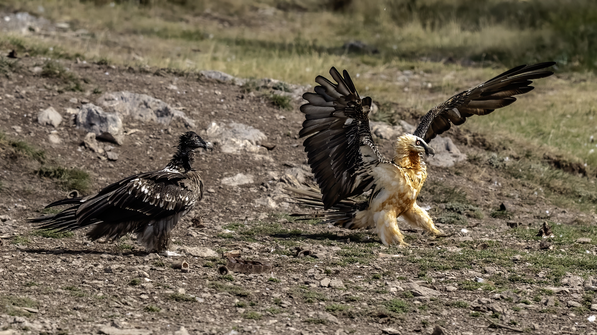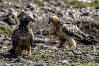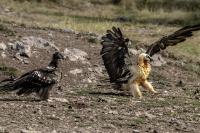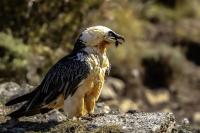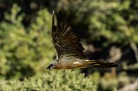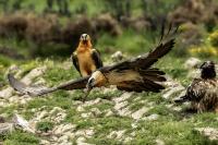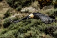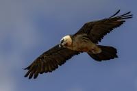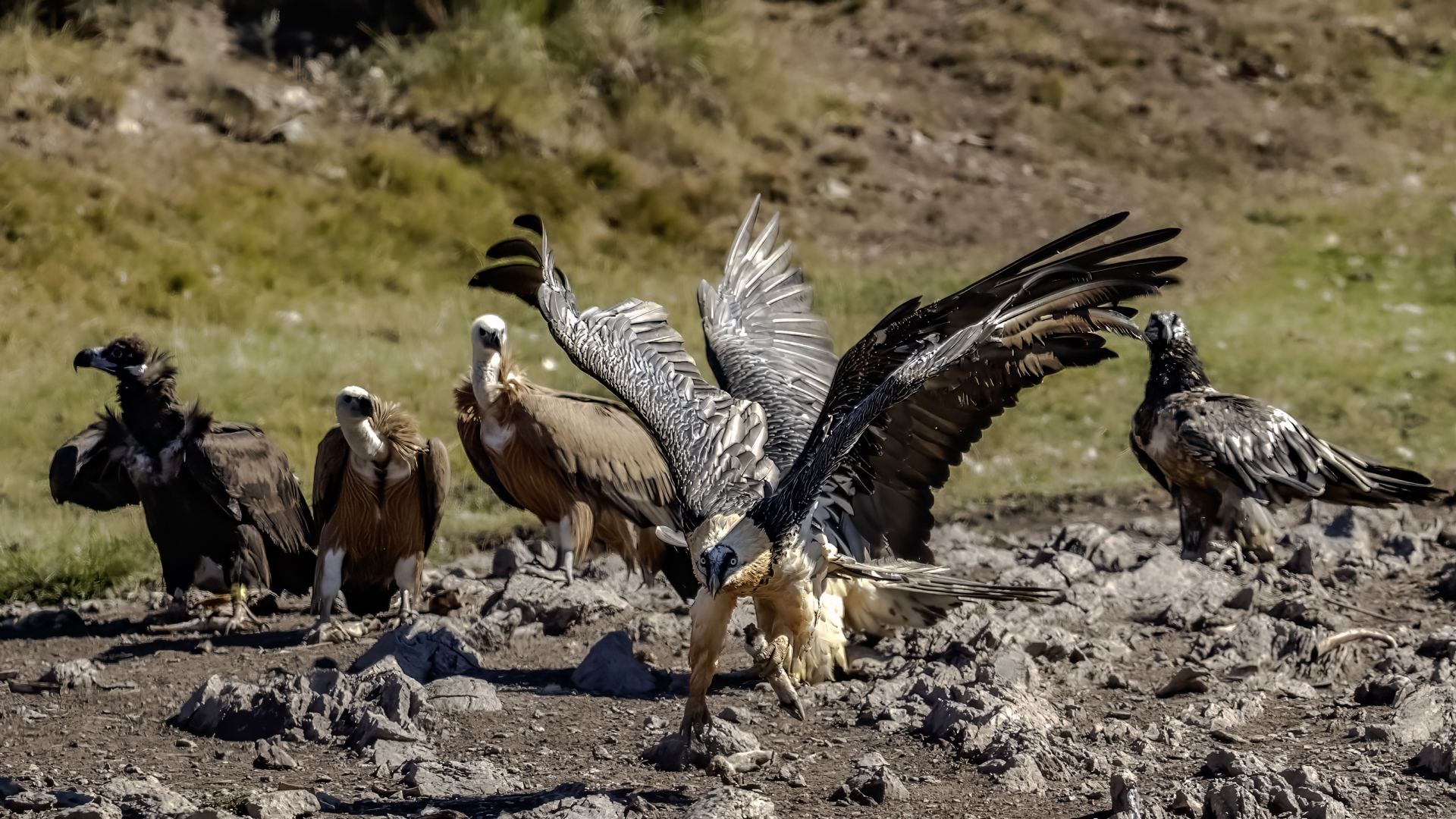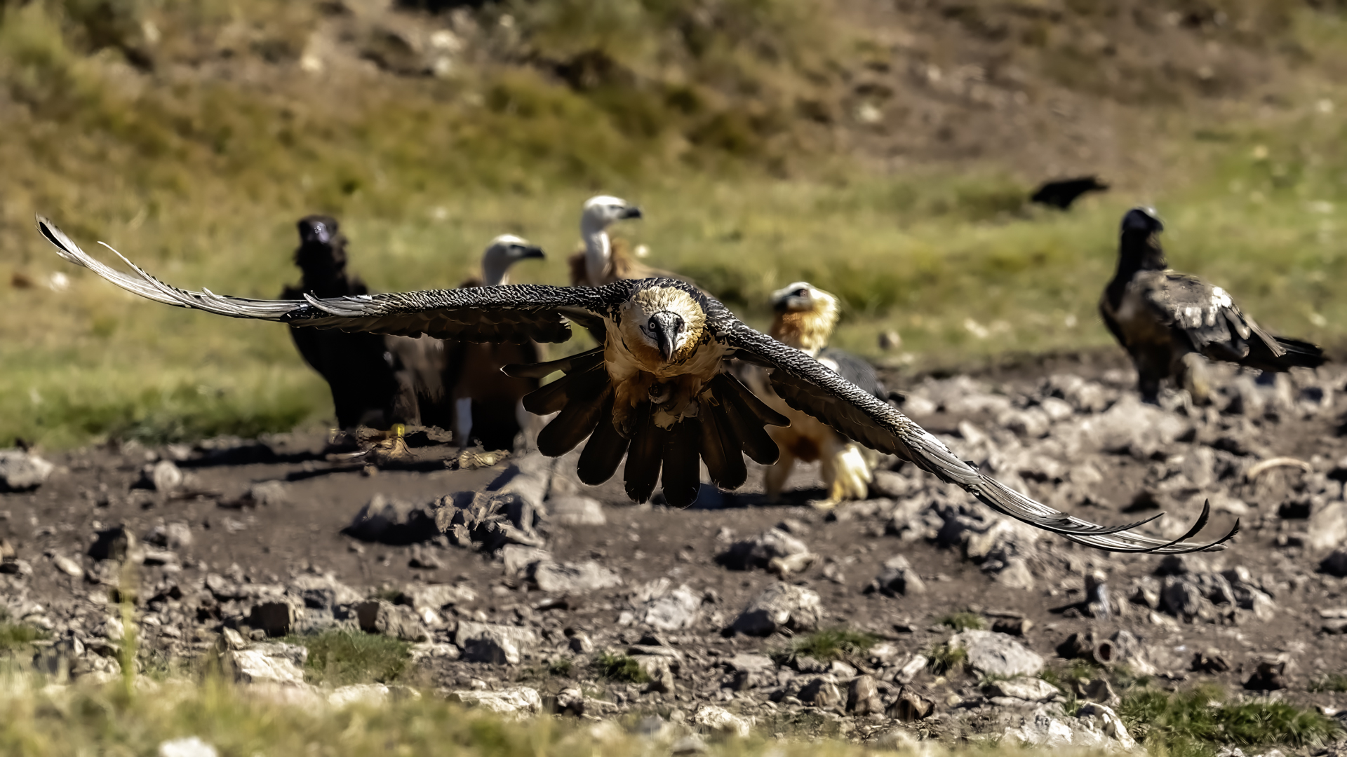 There are galleries of documentary value on my website, which I think will remain unchanged. But the bearded vulture‘s gallery could not be one of them. For the first time I tried to photograph the bearded vulture in 2014. I succeeded half-way, because although I took some photos, but not one that would capture all the charm of this bird. In Mongolia, a few random pictures of a passing vulture have been taken. Not to mention that meeting an adult never happened to me. My fascination with this species is not unusual. Many people admire this wonderful glider due to its charm, its behavior different from other birds of prey and the variation of plumage. Within the time until they are 7 years old the bird’s coloration changes practically every year. Efforts are effectively made to reintroduce this species in Europe, where it once occurred in almost all the high mountains. When photographing birds of prey in Poland we have to wait for them in the lookouts point all day long, an hour before dawn and an hour after dusk. In the case of the bearded vulture there is no such need, but to a large extent we are dependent on weather conditions. It is hard to encounter a vulture on windless, rainy days. These birds can wait 2-3 hours from sunrise for thermals to rise (columns of rising warm air), that especially on windy days allow them to soar all day in search of food. At the end of the day downshift of temperature before sunset makes the vultures disappear. Such weather conditions make it difficult to take good pictures. The strong sunshine is conducive to high contrast and overexposed images. There were no clouds that could diminish the strong light and contrast. Birds were actually quite numerous. Sometimes I could see six birds in front of the lens and the same number of them in the air. They were only going to fly down when one of them had landed looking for more delicious bones to eat. Sometimes they performed many laps spending time on watching the place where the bones were laid. They were so focused on the observation that many times they seemed to collide in the air. The ease they soar with is another reason to admire them. I could see them quarrelling in the air while the birds flew upside down. I posted some pictures of these aerial acrobatics. I have also seen two failed attempts to break bones against rocks. Young individuals tried to do it from relatively small height and the bones fell on the grass. In the gallery of the bearded vulture no trace of the old pictures can be found. This time it was also possible to record the voice of the bearded vulture. This is not a typical sound I guess, but the only animal that gave sounds was a young specimen of this year hatch. He landed among dozens of bones and only when saw any other vulture arrived it gave sounds as if asking for feeding. Birds after picking bones almost always took their wings and flew up in the air with "prey" unless there were other birds nearby, in such case they fed on the spot. Adults when they took flight almost always kept a bone in their claws, while the young at first kept a bone in the beak, and then a few meters above the ground they grabbed it in their claws. Bearded vultures generally raise one offspring. Even if the second egg appears in the nest only one chick grows up to flying age. But before that happens bearded vultures build a large nest or a few nests in inaccessible caves, crevices and rock shelves at a short distance one from another. Once the eggs are laid incubation lasts almost two months. Another 4 months or so the young is fed in the nest. The young become independent at the age of two years and they reach sexual maturity when they are 7 years old. This time a lot of information and quite a lot of pictures, but species exceptional for me should have a special gallery. Finally, I did it. The gallery, in my opinion, has become one of the most interesting on my site and from a documentary one-star converted into a four-star gallery. Finally, the time has come, the moment I have been waiting for years, and all this happened in Spain. Who knows, maybe once in our Tatra mountains we will find these birds, which, unlike the golden eagles or white-tailed eagles, do not avoid so much people and their homes.