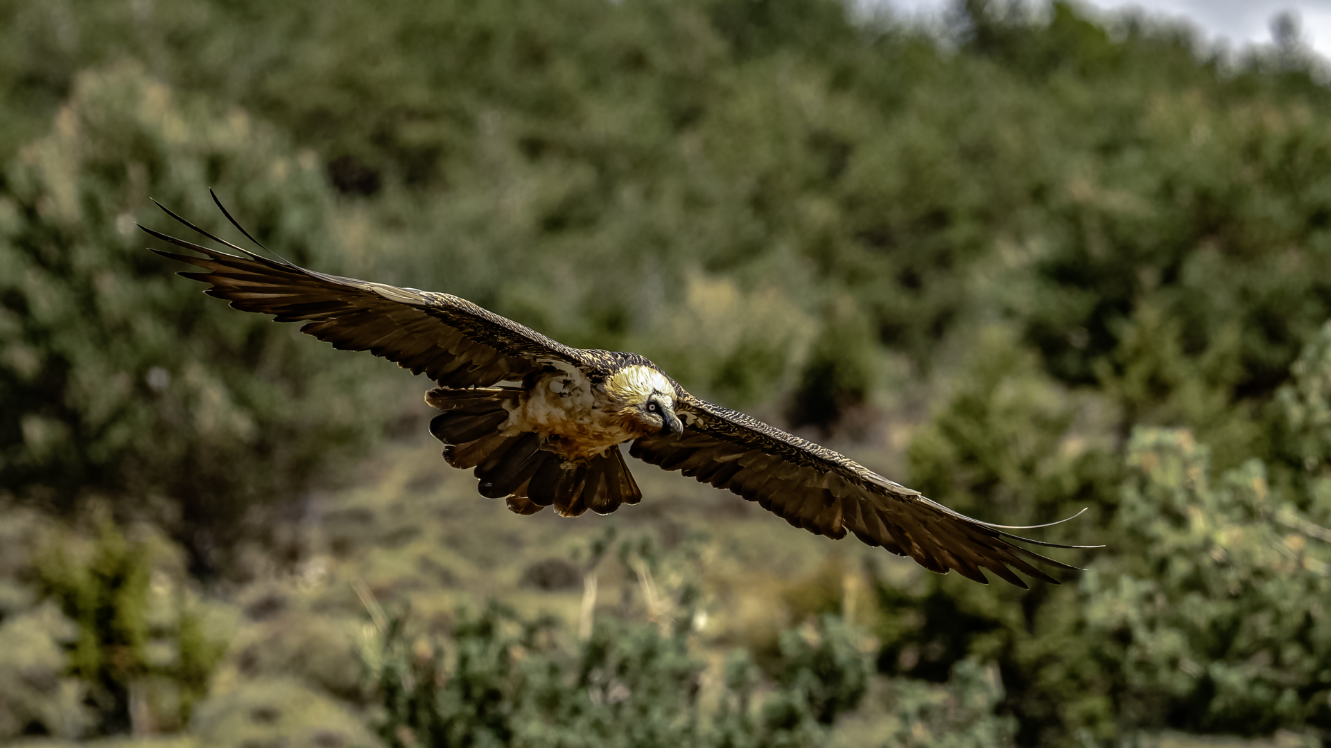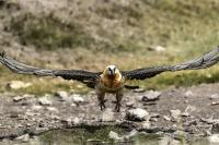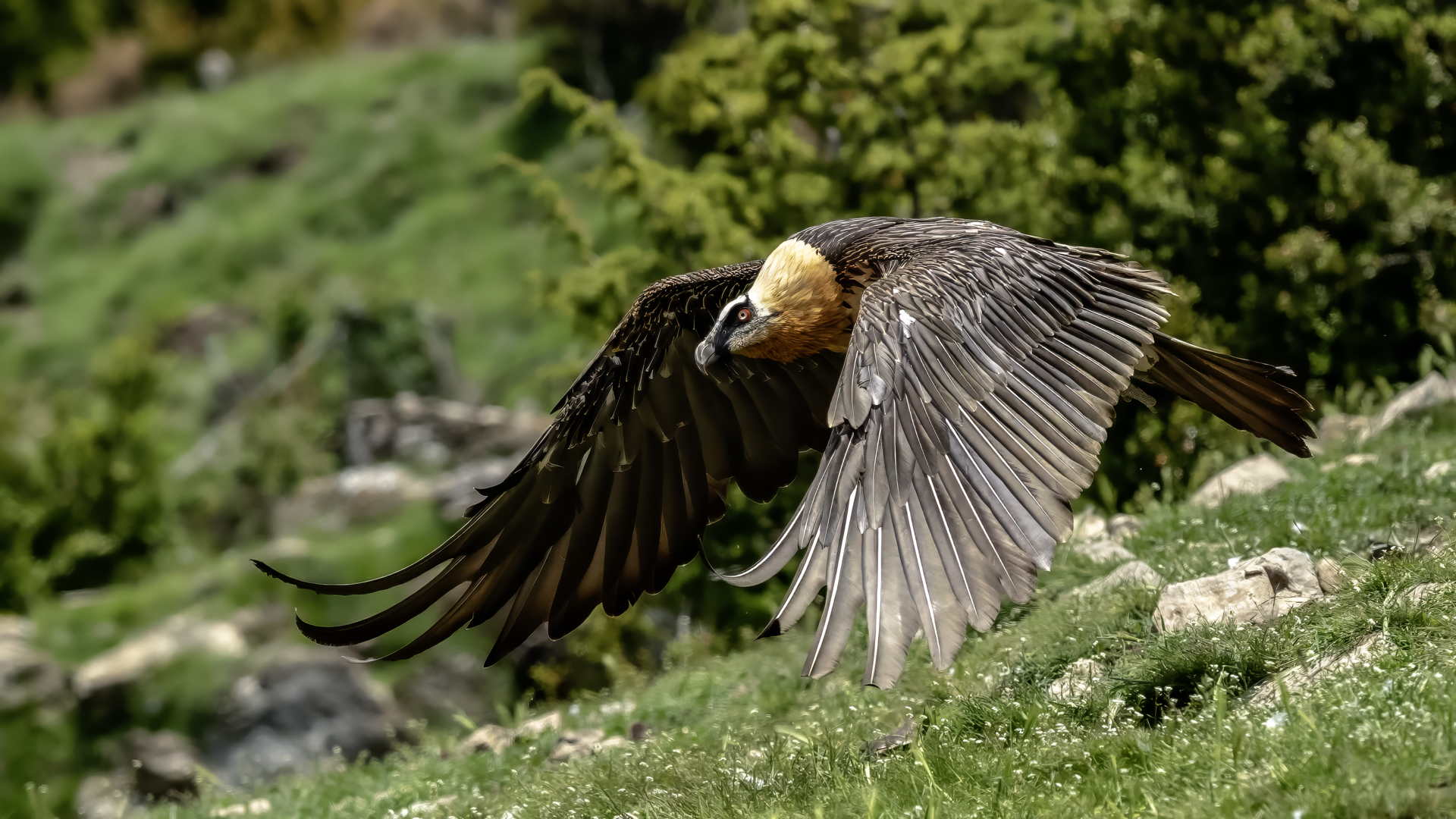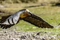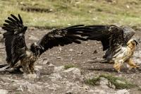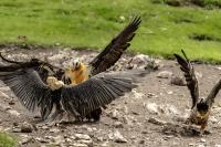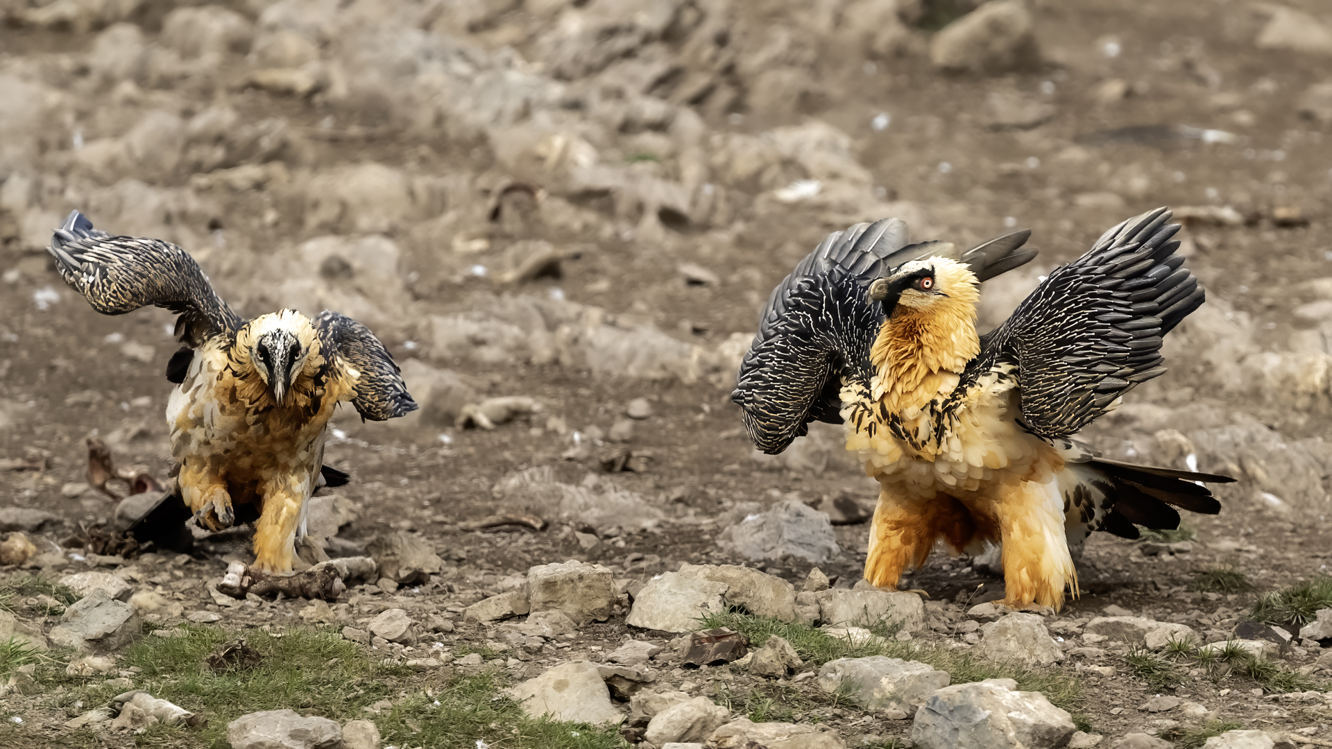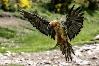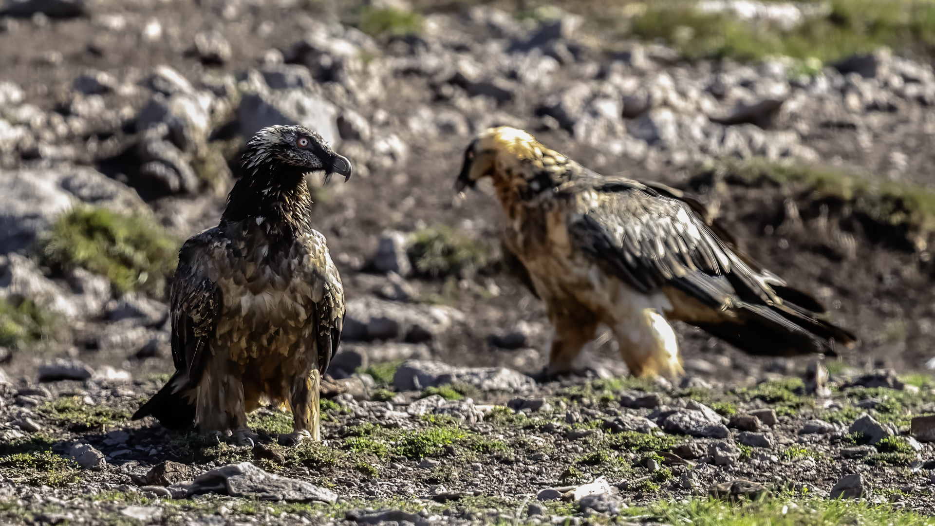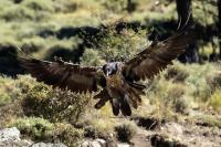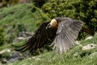 There are galleries of documentary value on my website, which I think will remain unchanged. But the bearded vulture‘s gallery could not be one of them. For the first time I tried to photograph the bearded vulture in 2014. I succeeded half-way, because although I took some photos, but not one that would capture all the charm of this bird. In Mongolia, a few random pictures of a passing vulture have been taken. Not to mention that meeting an adult never happened to me. My fascination with this species is not unusual. Many people admire this wonderful glider due to its charm, its behavior different from other birds of prey and the variation of plumage. Within the time until they are 7 years old the bird’s coloration changes practically every year. Efforts are effectively made to reintroduce this species in Europe, where it once occurred in almost all the high mountains. When photographing birds of prey in Poland we have to wait for them in the lookouts point all day long, an hour before dawn and an hour after dusk. In the case of the bearded vulture there is no such need, but to a large extent we are dependent on weather conditions. It is hard to encounter a vulture on windless, rainy days. These birds can wait 2-3 hours from sunrise for thermals to rise (columns of rising warm air), that especially on windy days allow them to soar all day in search of food. At the end of the day downshift of temperature before sunset makes the vultures disappear. Such weather conditions make it difficult to take good pictures. The strong sunshine is conducive to high contrast and overexposed images. There were no clouds that could diminish the strong light and contrast. Birds were actually quite numerous. Sometimes I could see six birds in front of the lens and the same number of them in the air. They were only going to fly down when one of them had landed looking for more delicious bones to eat. Sometimes they performed many laps spending time on watching the place where the bones were laid. They were so focused on the observation that many times they seemed to collide in the air. The ease they soar with is another reason to admire them. I could see them quarrelling in the air while the birds flew upside down. I posted some pictures of these aerial acrobatics. I have also seen two failed attempts to break bones against rocks. Young individuals tried to do it from relatively small height and the bones fell on the grass. In the gallery of the bearded vulture no trace of the old pictures can be found. This time it was also possible to record the voice of the bearded vulture. This is not a typical sound I guess, but the only animal that gave sounds was a young specimen of this year hatch. He landed among dozens of bones and only when saw any other vulture arrived it gave sounds as if asking for feeding. Birds after picking bones almost always took their wings and flew up in the air with "prey" unless there were other birds nearby, in such case they fed on the spot. Adults when they took flight almost always kept a bone in their claws, while the young at first kept a bone in the beak, and then a few meters above the ground they grabbed it in their claws. Bearded vultures generally raise one offspring. Even if the second egg appears in the nest only one chick grows up to flying age. But before that happens bearded vultures build a large nest or a few nests in inaccessible caves, crevices and rock shelves at a short distance one from another. Once the eggs are laid incubation lasts almost two months. Another 4 months or so the young is fed in the nest. The young become independent at the age of two years and they reach sexual maturity when they are 7 years old. This time a lot of information and quite a lot of pictures, but species exceptional for me should have a special gallery. Finally, I did it. The gallery, in my opinion, has become one of the most interesting on my site and from a documentary one-star converted into a four-star gallery. Finally, the time has come, the moment I have been waiting for years, and all this happened in Spain. Who knows, maybe once in our Tatra mountains we will find these birds, which, unlike the golden eagles or white-tailed eagles, do not avoid so much people and their homes.
