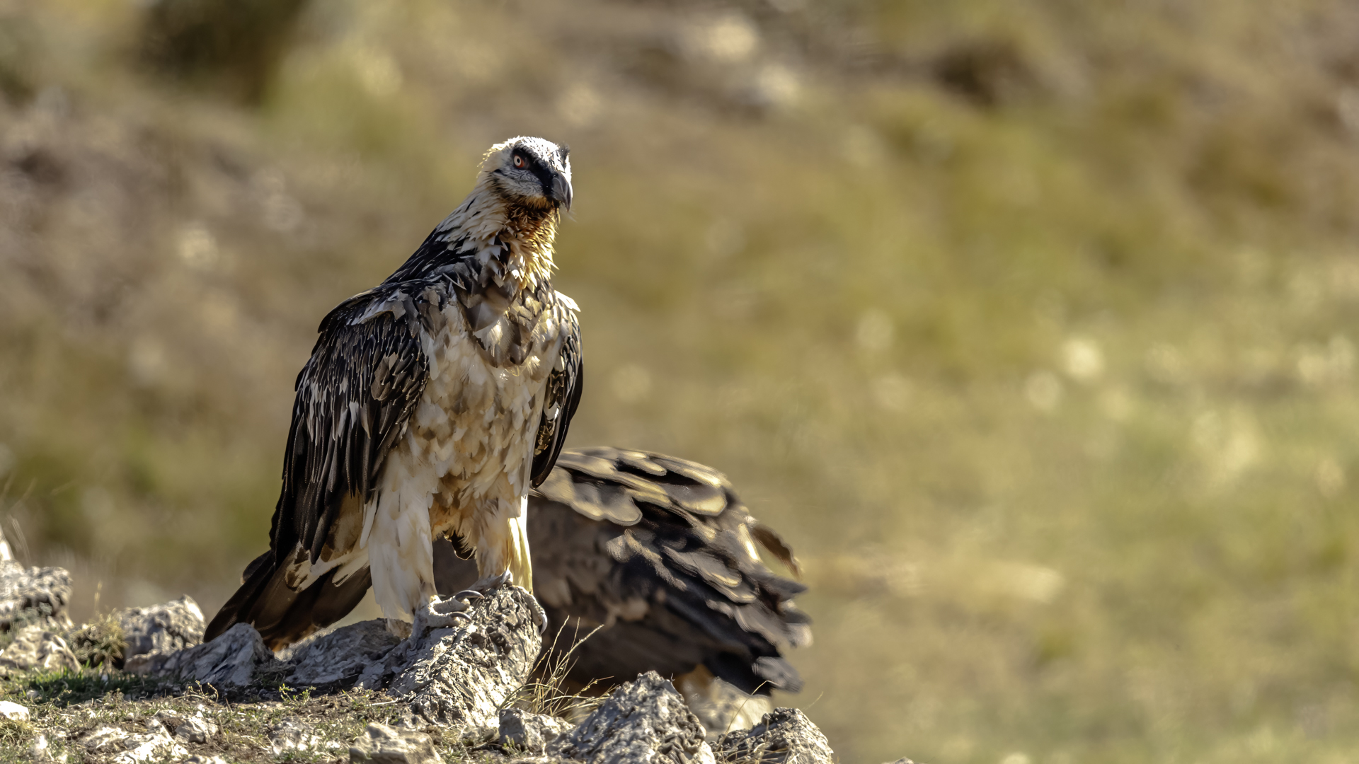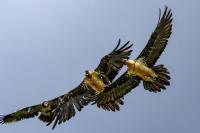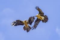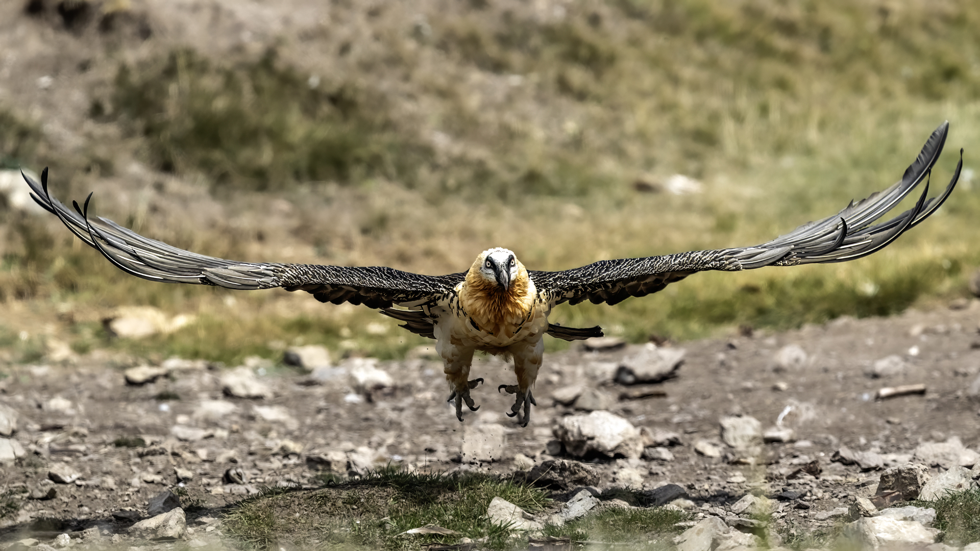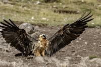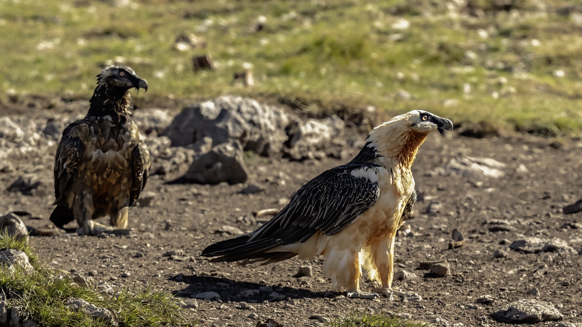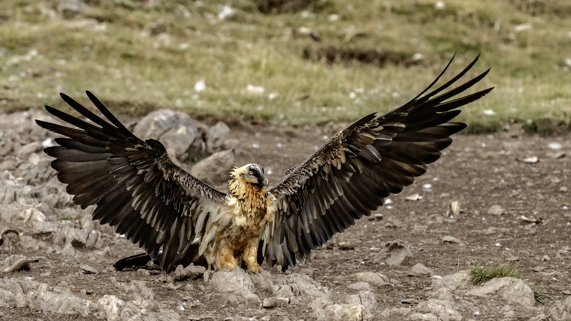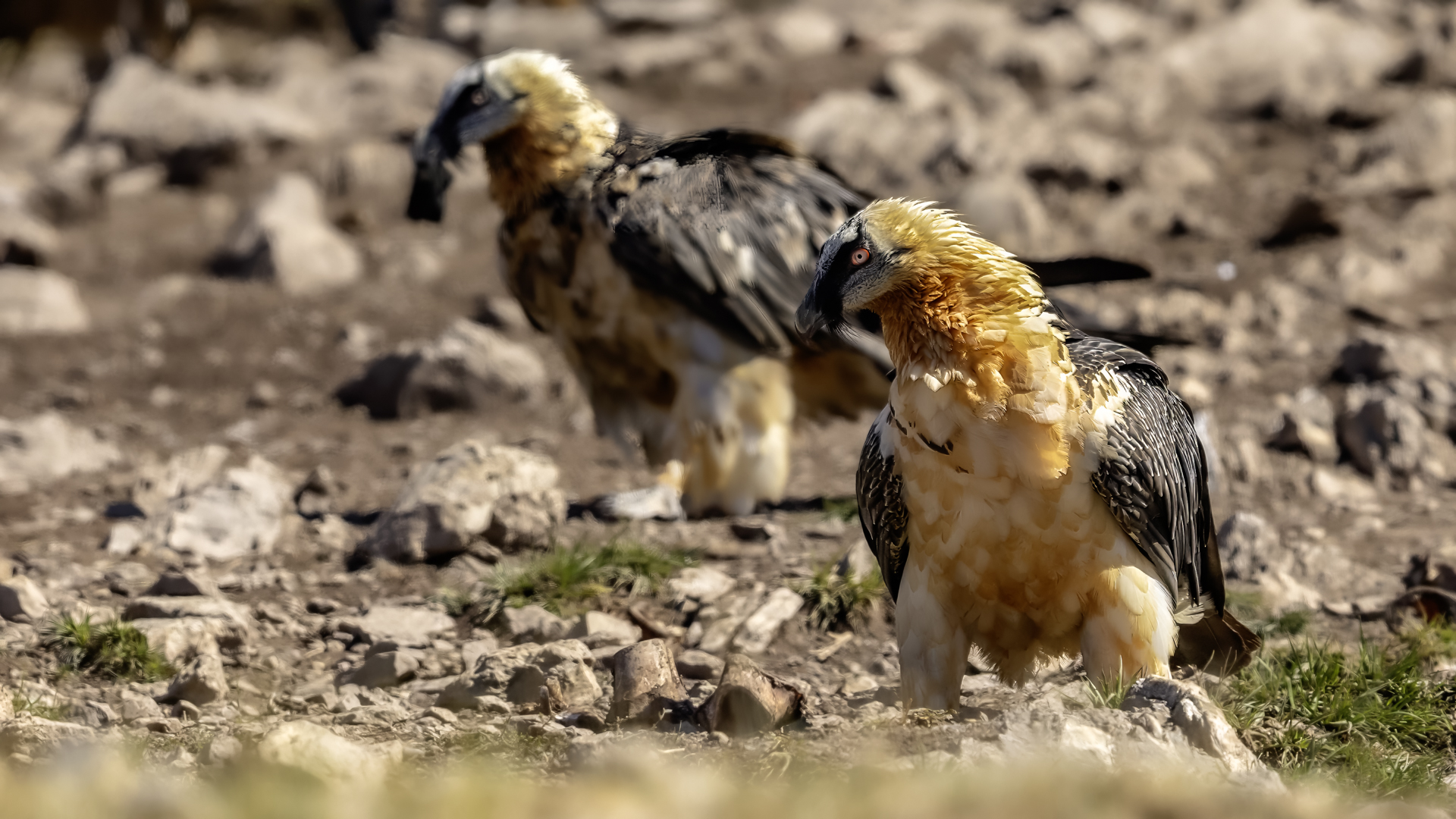 There are galleries of documentary value on my website, which I think will remain unchanged. But the bearded vulture‘s gallery could not be one of them. For the first time I tried to photograph the bearded vulture in 2014. I succeeded half-way, because although I took some photos, but not one that would capture all the charm of this bird. In Mongolia, a few random pictures of a passing vulture have been taken. Not to mention that meeting an adult never happened to me. My fascination with this species is not unusual. Many people admire this wonderful glider due to its charm, its behavior different from other birds of prey and the variation of plumage. Within the time until they are 7 years old the bird’s coloration changes practically every year. Efforts are effectively made to reintroduce this species in Europe, where it once occurred in almost all the high mountains. When photographing birds of prey in Poland we have to wait for them in the lookouts point all day long, an hour before dawn and an hour after dusk. In the case of the bearded vulture there is no such need, but to a large extent we are dependent on weather conditions. It is hard to encounter a vulture on windless, rainy days. These birds can wait 2-3 hours from sunrise for thermals to rise (columns of rising warm air), that especially on windy days allow them to soar all day in search of food. At the end of the day downshift of temperature before sunset makes the vultures disappear. Such weather conditions make it difficult to take good pictures. The strong sunshine is conducive to high contrast and overexposed images. There were no clouds that could diminish the strong light and contrast. Birds were actually quite numerous. Sometimes I could see six birds in front of the lens and the same number of them in the air. They were only going to fly down when one of them had landed looking for more delicious bones to eat. Sometimes they performed many laps spending time on watching the place where the bones were laid. They were so focused on the observation that many times they seemed to collide in the air. The ease they soar with is another reason to admire them. I could see them quarrelling in the air while the birds flew upside down. I posted some pictures of these aerial acrobatics. I have also seen two failed attempts to break bones against rocks. Young individuals tried to do it from relatively small height and the bones fell on the grass. In the gallery of the bearded vulture no trace of the old pictures can be found. This time it was also possible to record the voice of the bearded vulture. This is not a typical sound I guess, but the only animal that gave sounds was a young specimen of this year hatch. He landed among dozens of bones and only when saw any other vulture arrived it gave sounds as if asking for feeding. Birds after picking bones almost always took their wings and flew up in the air with "prey" unless there were other birds nearby, in such case they fed on the spot. Adults when they took flight almost always kept a bone in their claws, while the young at first kept a bone in the beak, and then a few meters above the ground they grabbed it in their claws. Bearded vultures generally raise one offspring. Even if the second egg appears in the nest only one chick grows up to flying age. But before that happens bearded vultures build a large nest or a few nests in inaccessible caves, crevices and rock shelves at a short distance one from another. Once the eggs are laid incubation lasts almost two months. Another 4 months or so the young is fed in the nest. The young become independent at the age of two years and they reach sexual maturity when they are 7 years old. This time a lot of information and quite a lot of pictures, but species exceptional for me should have a special gallery. Finally, I did it. The gallery, in my opinion, has become one of the most interesting on my site and from a documentary one-star converted into a four-star gallery. Finally, the time has come, the moment I have been waiting for years, and all this happened in Spain. Who knows, maybe once in our Tatra mountains we will find these birds, which, unlike the golden eagles or white-tailed eagles, do not avoid so much people and their homes.