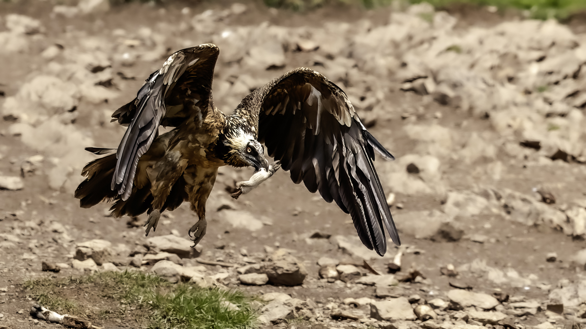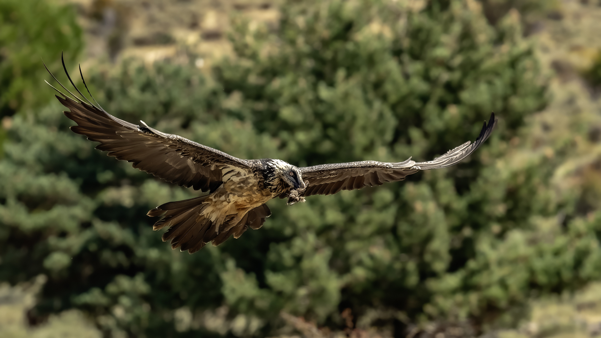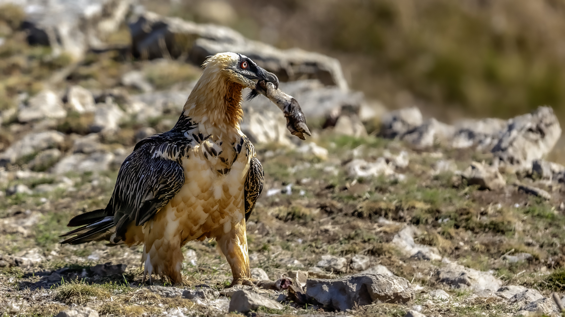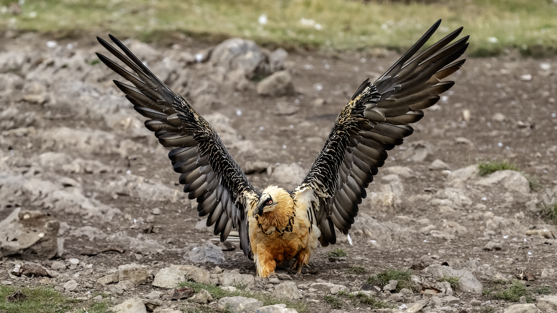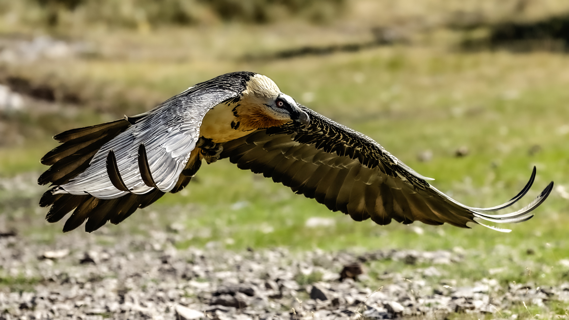 There are galleries of documentary value on my website, which I think will remain unchanged. But the bearded vulture‘s gallery could not be one of them. For the first time I tried to photograph the bearded vulture in 2014. I succeeded half-way, because although I took some photos, but not one that would capture all the charm of this bird. In Mongolia, a few random pictures of a passing vulture have been taken. Not to mention that meeting an adult never happened to me. My fascination with this species is not unusual. Many people admire this wonderful glider due to its charm, its behavior different from other birds of prey and the variation of plumage. Within the time until they are 7 years old the bird’s coloration changes practically every year. Efforts are effectively made to reintroduce this species in Europe, where it once occurred in almost all the high mountains. When photographing birds of prey in Poland we have to wait for them in the lookouts point all day long, an hour before dawn and an hour after dusk. In the case of the bearded vulture there is no such need, but to a large extent we are dependent on weather conditions. It is hard to encounter a vulture on windless, rainy days. These birds can wait 2-3 hours from sunrise for thermals to rise (columns of rising warm air), that especially on windy days allow them to soar all day in search of food. At the end of the day downshift of temperature before sunset makes the vultures disappear. Such weather conditions make it difficult to take good pictures. The strong sunshine is conducive to high contrast and overexposed images. There were no clouds that could diminish the strong light and contrast. Birds were actually quite numerous. Sometimes I could see six birds in front of the lens and the same number of them in the air. They were only going to fly down when one of them had landed looking for more delicious bones to eat. Sometimes they performed many laps spending time on watching the place where the bones were laid. They were so focused on the observation that many times they seemed to collide in the air. The ease they soar with is another reason to admire them. I could see them quarrelling in the air while the birds flew upside down. I posted some pictures of these aerial acrobatics. I have also seen two failed attempts to break bones against rocks. Young individuals tried to do it from relatively small height and the bones fell on the grass. In the gallery of the bearded vulture no trace of the old pictures can be found. This time it was also possible to record the voice of the bearded vulture. This is not a typical sound I guess, but the only animal that gave sounds was a young specimen of this year hatch. He landed among dozens of bones and only when saw any other vulture arrived it gave sounds as if asking for feeding. Birds after picking bones almost always took their wings and flew up in the air with "prey" unless there were other birds nearby, in such case they fed on the spot. Adults when they took flight almost always kept a bone in their claws, while the young at first kept a bone in the beak, and then a few meters above the ground they grabbed it in their claws. Bearded vultures generally raise one offspring. Even if the second egg appears in the nest only one chick grows up to flying age. But before that happens bearded vultures build a large nest or a few nests in inaccessible caves, crevices and rock shelves at a short distance one from another. Once the eggs are laid incubation lasts almost two months. Another 4 months or so the young is fed in the nest. The young become independent at the age of two years and they reach sexual maturity when they are 7 years old. This time a lot of information and quite a lot of pictures, but species exceptional for me should have a special gallery. Finally, I did it. The gallery, in my opinion, has become one of the most interesting on my site and from a documentary one-star converted into a four-star gallery. Finally, the time has come, the moment I have been waiting for years, and all this happened in Spain. Who knows, maybe once in our Tatra mountains we will find these birds, which, unlike the golden eagles or white-tailed eagles, do not avoid so much people and their homes.