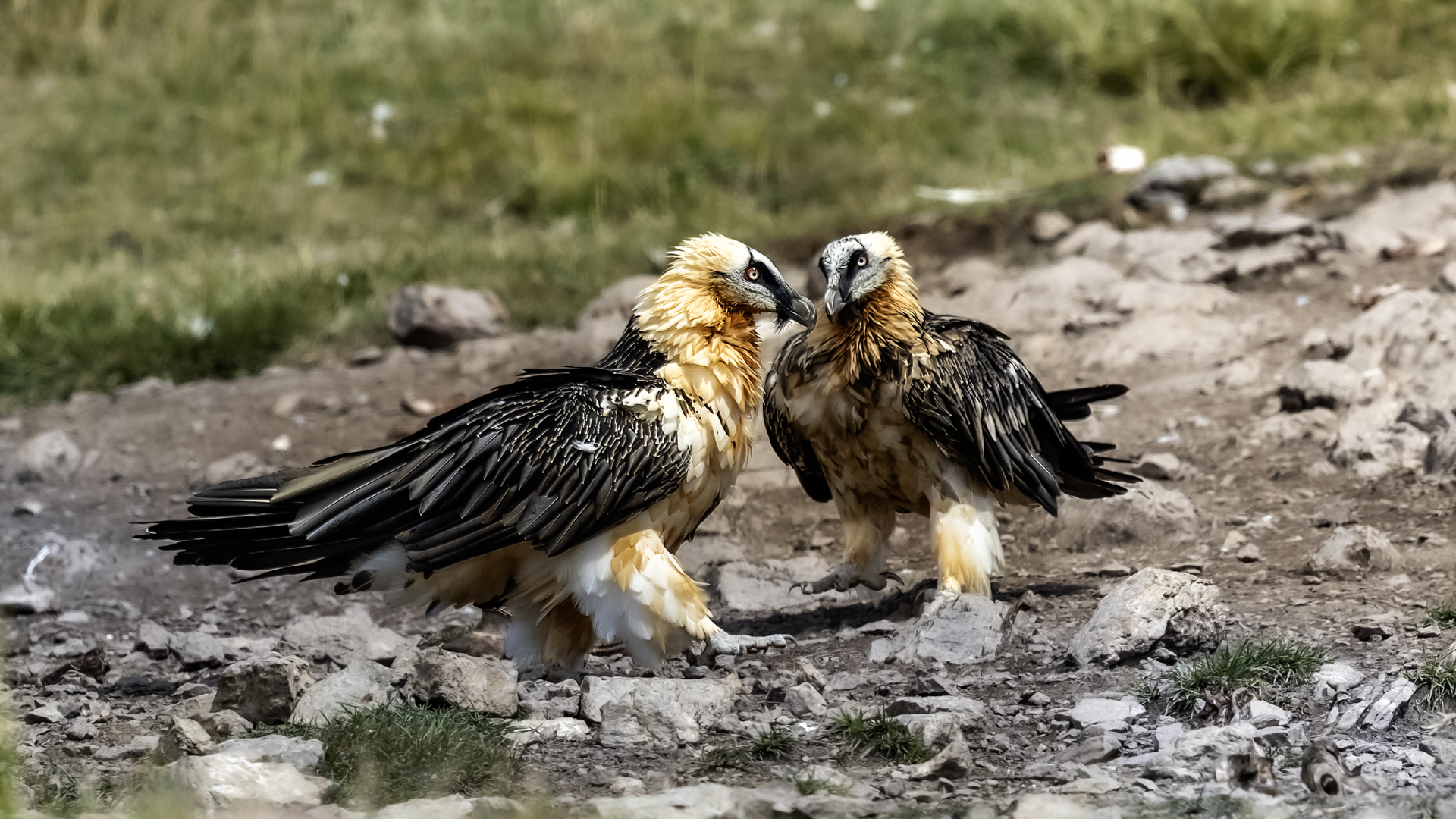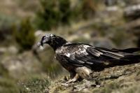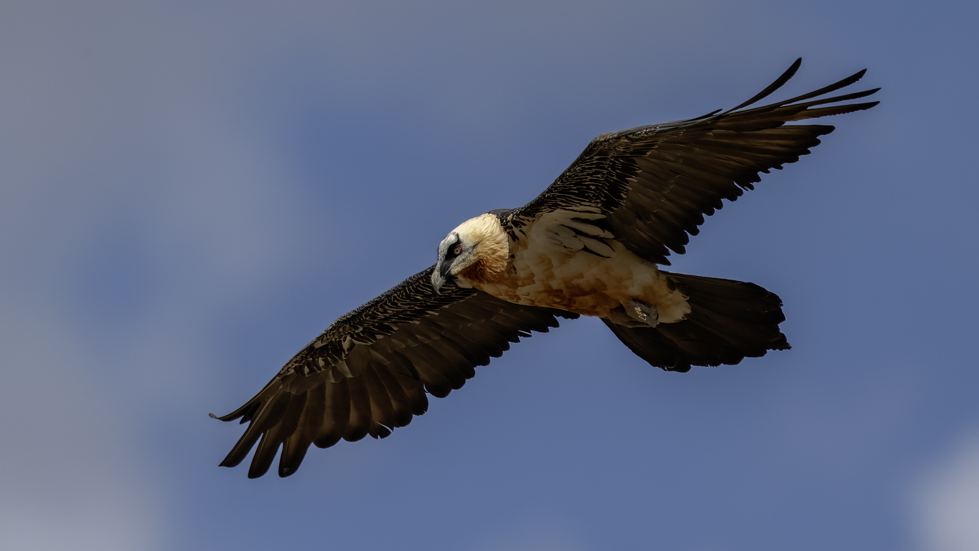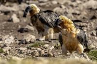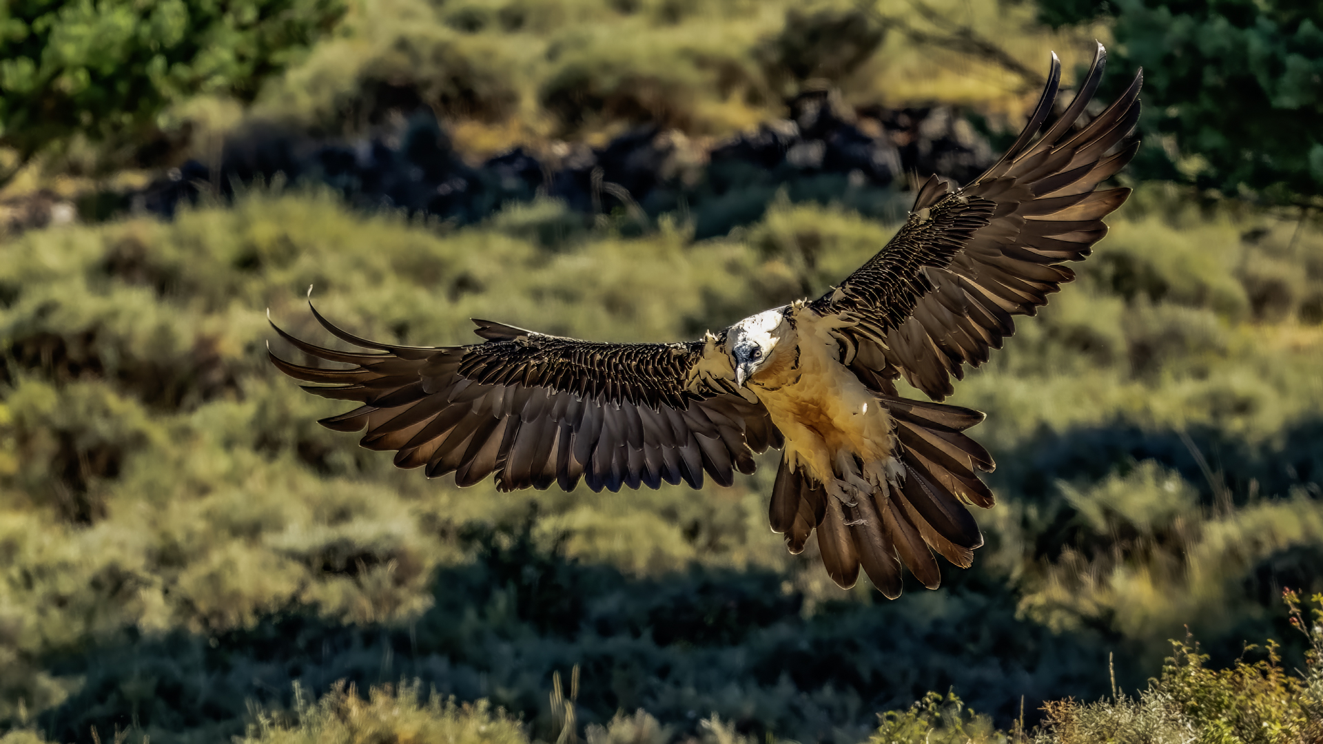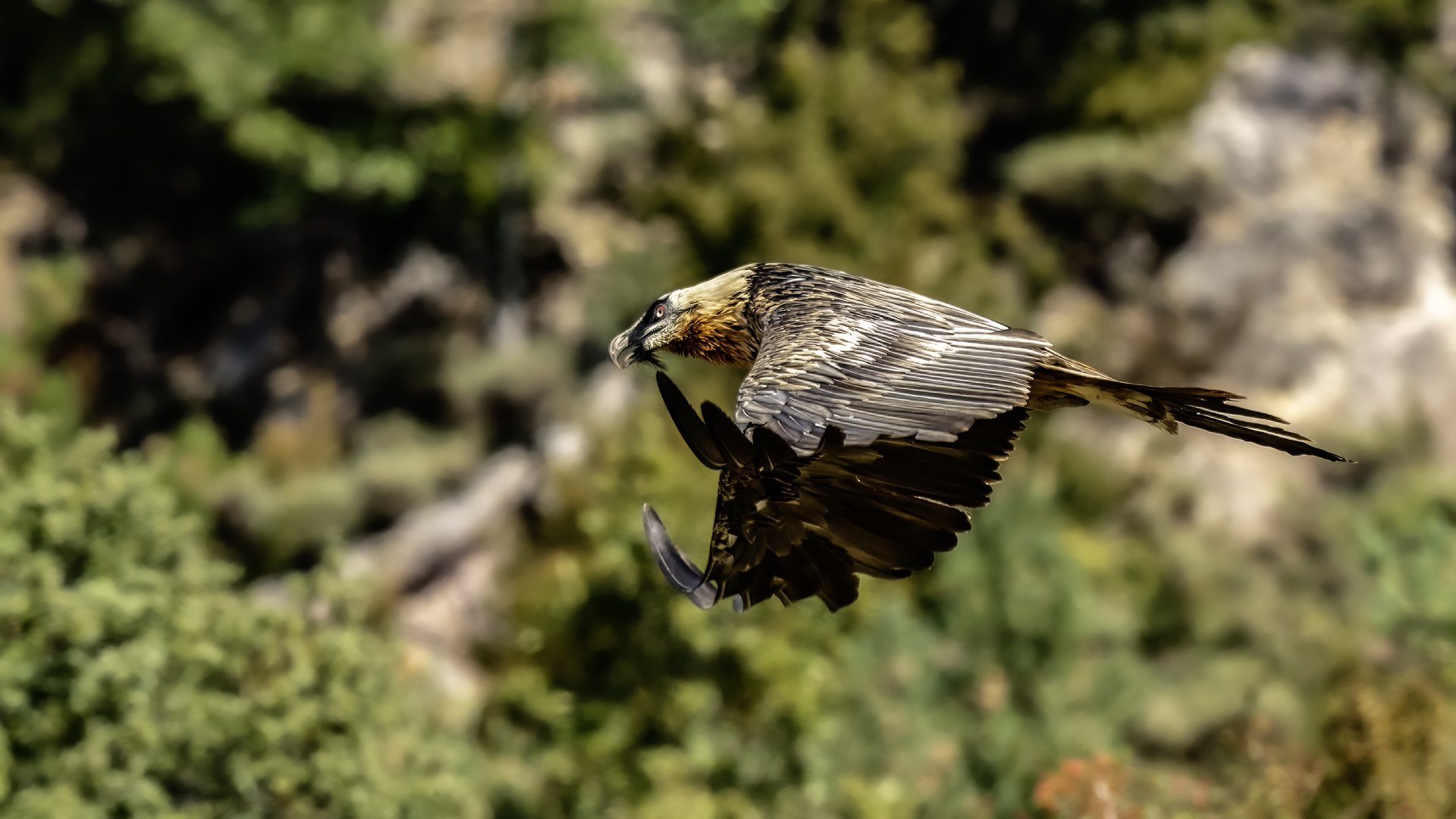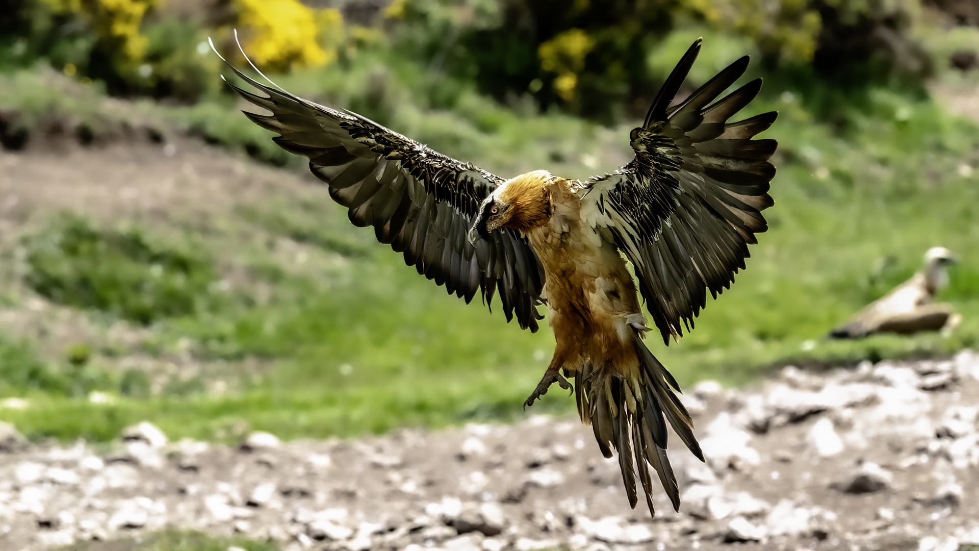 There are galleries of documentary value on my website, which I think will remain unchanged. But the bearded vulture‘s gallery could not be one of them. For the first time I tried to photograph the bearded vulture in 2014. I succeeded half-way, because although I took some photos, but not one that would capture all the charm of this bird. In Mongolia, a few random pictures of a passing vulture have been taken. Not to mention that meeting an adult never happened to me. My fascination with this species is not unusual. Many people admire this wonderful glider due to its charm, its behavior different from other birds of prey and the variation of plumage. Within the time until they are 7 years old the bird’s coloration changes practically every year. Efforts are effectively made to reintroduce this species in Europe, where it once occurred in almost all the high mountains. When photographing birds of prey in Poland we have to wait for them in the lookouts point all day long, an hour before dawn and an hour after dusk. In the case of the bearded vulture there is no such need, but to a large extent we are dependent on weather conditions. It is hard to encounter a vulture on windless, rainy days. These birds can wait 2-3 hours from sunrise for thermals to rise (columns of rising warm air), that especially on windy days allow them to soar all day in search of food. At the end of the day downshift of temperature before sunset makes the vultures disappear. Such weather conditions make it difficult to take good pictures. The strong sunshine is conducive to high contrast and overexposed images. There were no clouds that could diminish the strong light and contrast. Birds were actually quite numerous. Sometimes I could see six birds in front of the lens and the same number of them in the air. They were only going to fly down when one of them had landed looking for more delicious bones to eat. Sometimes they performed many laps spending time on watching the place where the bones were laid. They were so focused on the observation that many times they seemed to collide in the air. The ease they soar with is another reason to admire them. I could see them quarrelling in the air while the birds flew upside down. I posted some pictures of these aerial acrobatics. I have also seen two failed attempts to break bones against rocks. Young individuals tried to do it from relatively small height and the bones fell on the grass. In the gallery of the bearded vulture no trace of the old pictures can be found. This time it was also possible to record the voice of the bearded vulture. This is not a typical sound I guess, but the only animal that gave sounds was a young specimen of this year hatch. He landed among dozens of bones and only when saw any other vulture arrived it gave sounds as if asking for feeding. Birds after picking bones almost always took their wings and flew up in the air with "prey" unless there were other birds nearby, in such case they fed on the spot. Adults when they took flight almost always kept a bone in their claws, while the young at first kept a bone in the beak, and then a few meters above the ground they grabbed it in their claws. Bearded vultures generally raise one offspring. Even if the second egg appears in the nest only one chick grows up to flying age. But before that happens bearded vultures build a large nest or a few nests in inaccessible caves, crevices and rock shelves at a short distance one from another. Once the eggs are laid incubation lasts almost two months. Another 4 months or so the young is fed in the nest. The young become independent at the age of two years and they reach sexual maturity when they are 7 years old. This time a lot of information and quite a lot of pictures, but species exceptional for me should have a special gallery. Finally, I did it. The gallery, in my opinion, has become one of the most interesting on my site and from a documentary one-star converted into a four-star gallery. Finally, the time has come, the moment I have been waiting for years, and all this happened in Spain. Who knows, maybe once in our Tatra mountains we will find these birds, which, unlike the golden eagles or white-tailed eagles, do not avoid so much people and their homes.