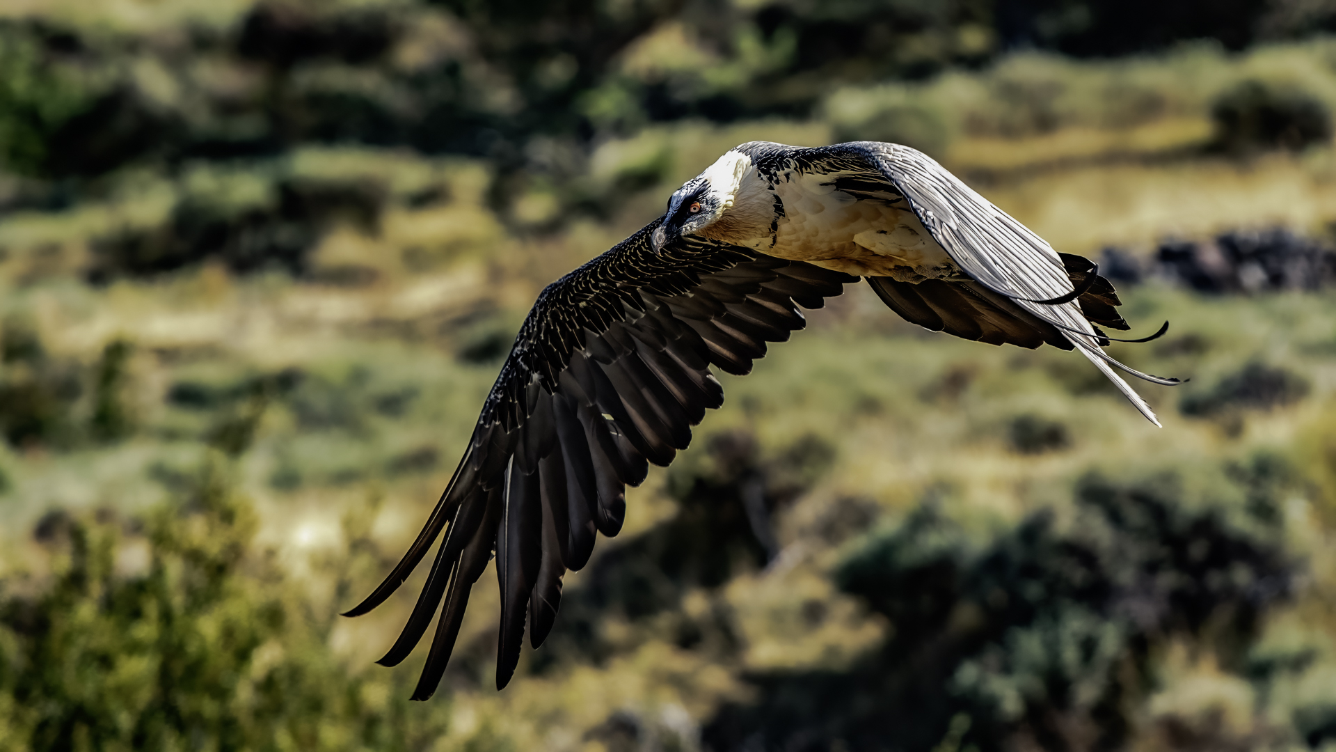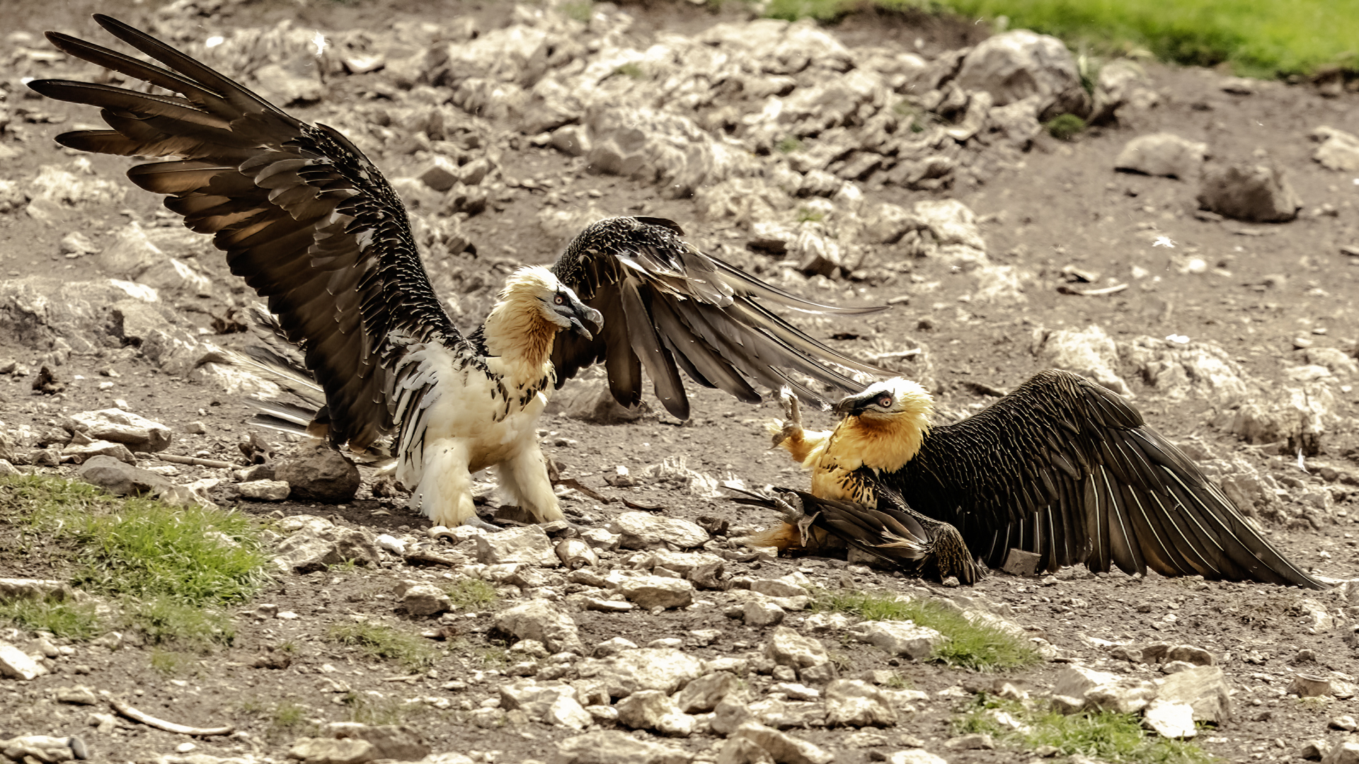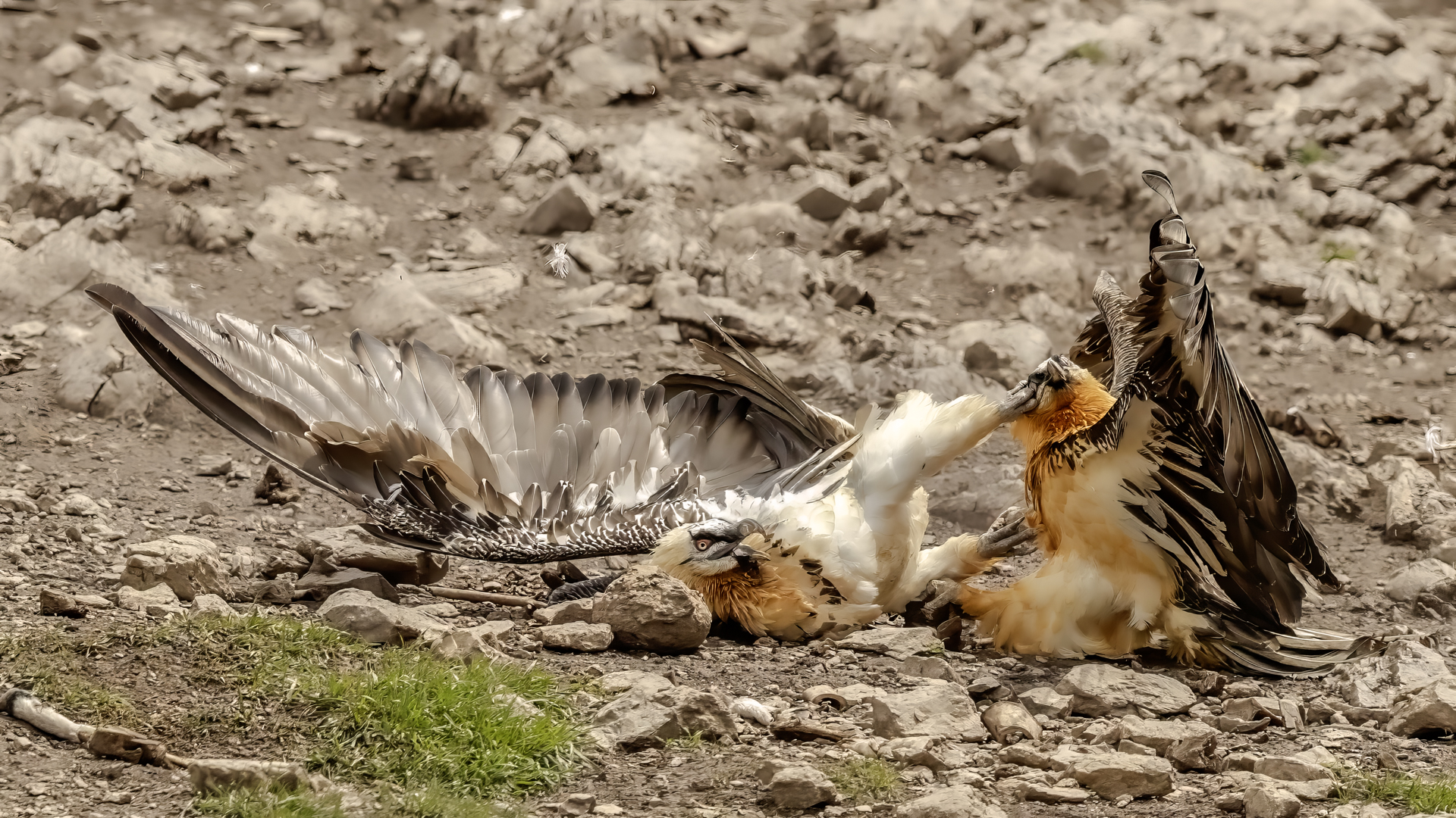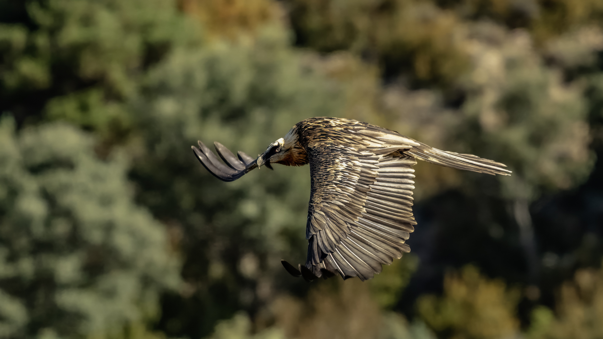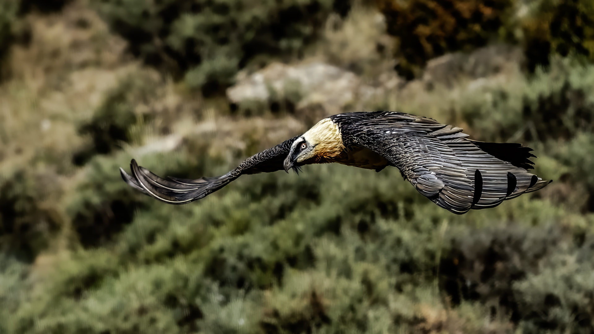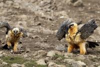 There are galleries of documentary value on my website, which I think will remain unchanged. But the bearded vulture‘s gallery could not be one of them. For the first time I tried to photograph the bearded vulture in 2014. I succeeded half-way, because although I took some photos, but not one that would capture all the charm of this bird. In Mongolia, a few random pictures of a passing vulture have been taken. Not to mention that meeting an adult never happened to me. My fascination with this species is not unusual. Many people admire this wonderful glider due to its charm, its behavior different from other birds of prey and the variation of plumage. Within the time until they are 7 years old the bird’s coloration changes practically every year. Efforts are effectively made to reintroduce this species in Europe, where it once occurred in almost all the high mountains. When photographing birds of prey in Poland we have to wait for them in the lookouts point all day long, an hour before dawn and an hour after dusk. In the case of the bearded vulture there is no such need, but to a large extent we are dependent on weather conditions. It is hard to encounter a vulture on windless, rainy days. These birds can wait 2-3 hours from sunrise for thermals to rise (columns of rising warm air), that especially on windy days allow them to soar all day in search of food. At the end of the day downshift of temperature before sunset makes the vultures disappear. Such weather conditions make it difficult to take good pictures. The strong sunshine is conducive to high contrast and overexposed images. There were no clouds that could diminish the strong light and contrast. Birds were actually quite numerous. Sometimes I could see six birds in front of the lens and the same number of them in the air. They were only going to fly down when one of them had landed looking for more delicious bones to eat. Sometimes they performed many laps spending time on watching the place where the bones were laid. They were so focused on the observation that many times they seemed to collide in the air. The ease they soar with is another reason to admire them. I could see them quarrelling in the air while the birds flew upside down. I posted some pictures of these aerial acrobatics. I have also seen two failed attempts to break bones against rocks. Young individuals tried to do it from relatively small height and the bones fell on the grass. In the gallery of the bearded vulture no trace of the old pictures can be found. This time it was also possible to record the voice of the bearded vulture. This is not a typical sound I guess, but the only animal that gave sounds was a young specimen of this year hatch. He landed among dozens of bones and only when saw any other vulture arrived it gave sounds as if asking for feeding. Birds after picking bones almost always took their wings and flew up in the air with "prey" unless there were other birds nearby, in such case they fed on the spot. Adults when they took flight almost always kept a bone in their claws, while the young at first kept a bone in the beak, and then a few meters above the ground they grabbed it in their claws. Bearded vultures generally raise one offspring. Even if the second egg appears in the nest only one chick grows up to flying age. But before that happens bearded vultures build a large nest or a few nests in inaccessible caves, crevices and rock shelves at a short distance one from another. Once the eggs are laid incubation lasts almost two months. Another 4 months or so the young is fed in the nest. The young become independent at the age of two years and they reach sexual maturity when they are 7 years old. This time a lot of information and quite a lot of pictures, but species exceptional for me should have a special gallery. Finally, I did it. The gallery, in my opinion, has become one of the most interesting on my site and from a documentary one-star converted into a four-star gallery. Finally, the time has come, the moment I have been waiting for years, and all this happened in Spain. Who knows, maybe once in our Tatra mountains we will find these birds, which, unlike the golden eagles or white-tailed eagles, do not avoid so much people and their homes.