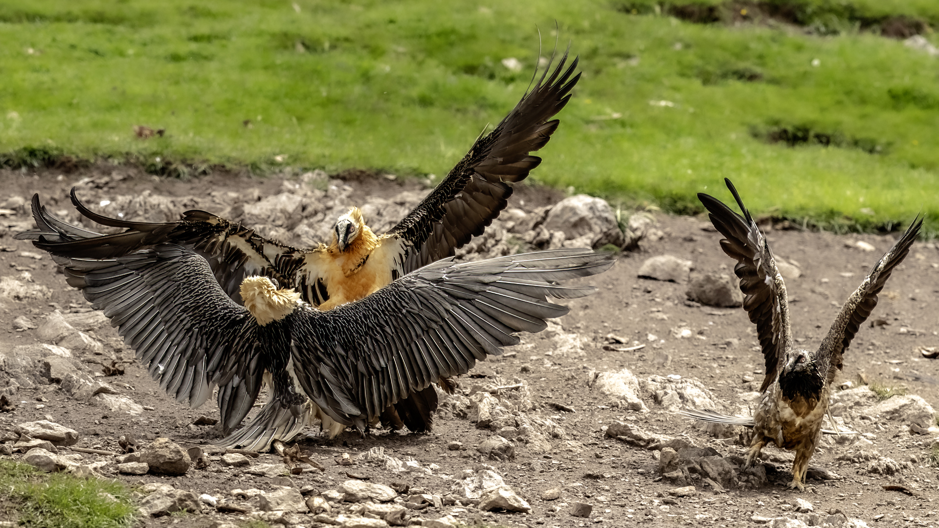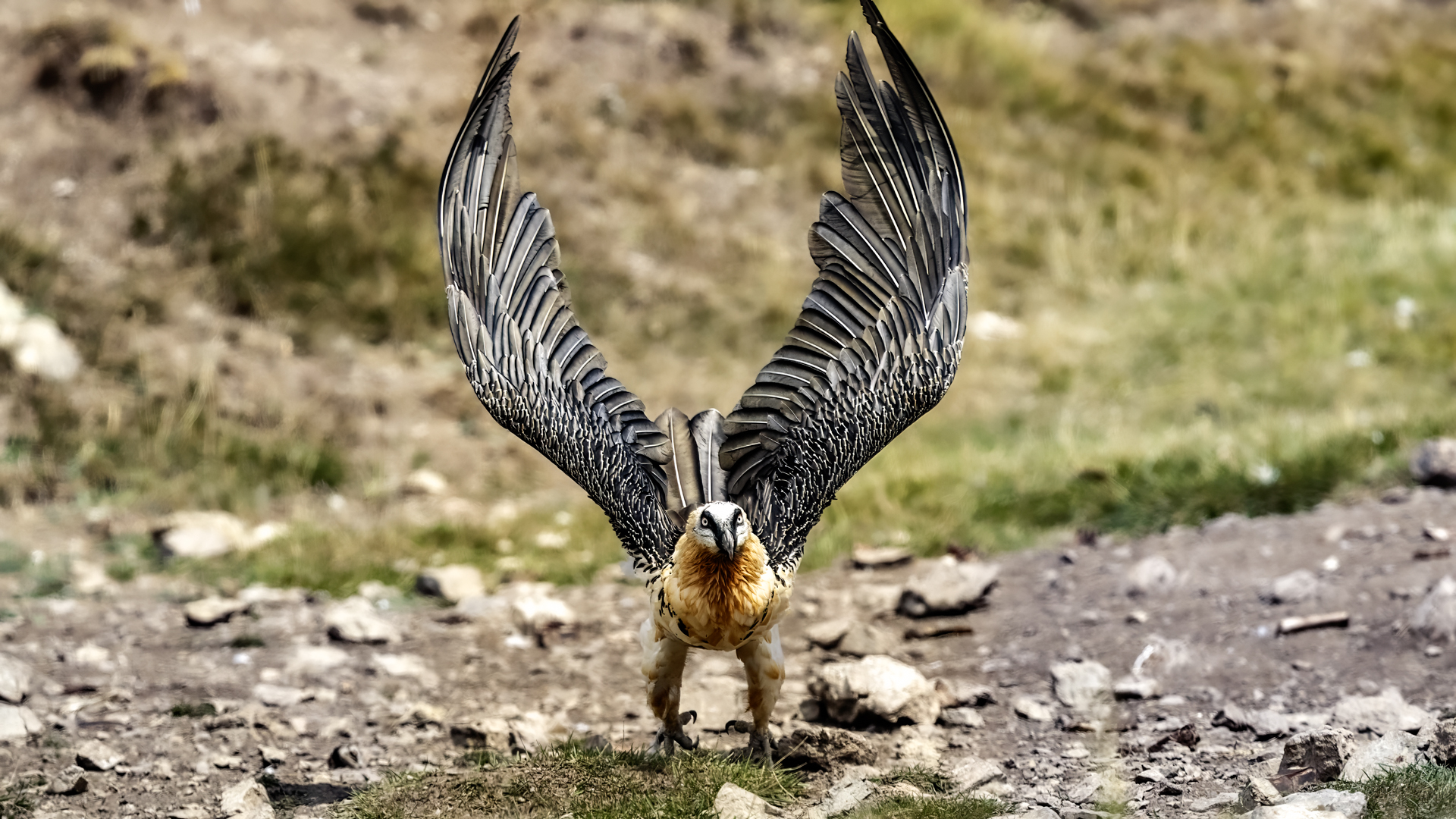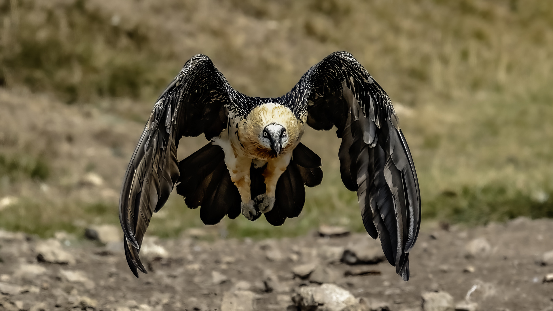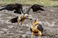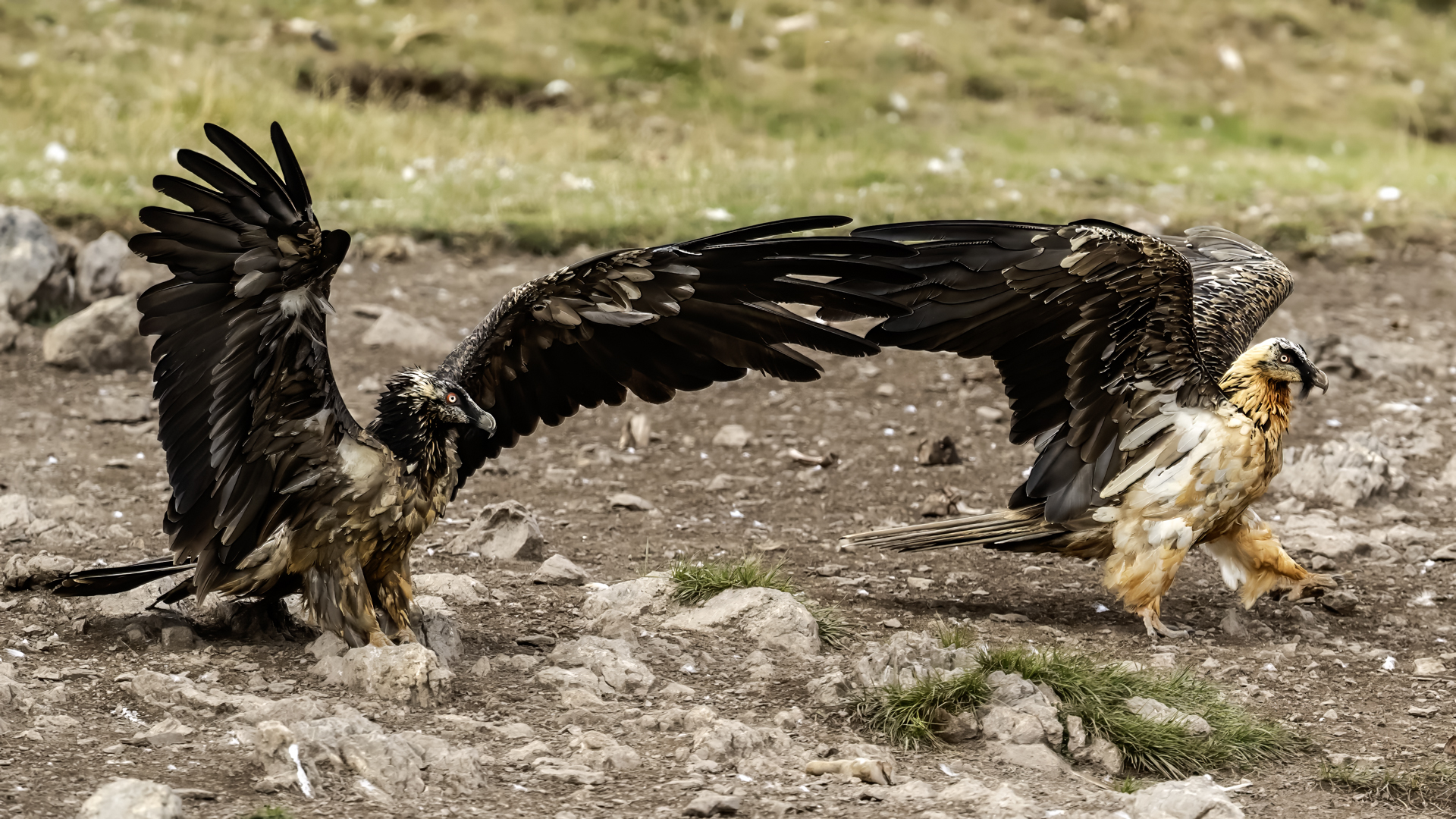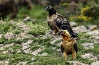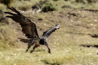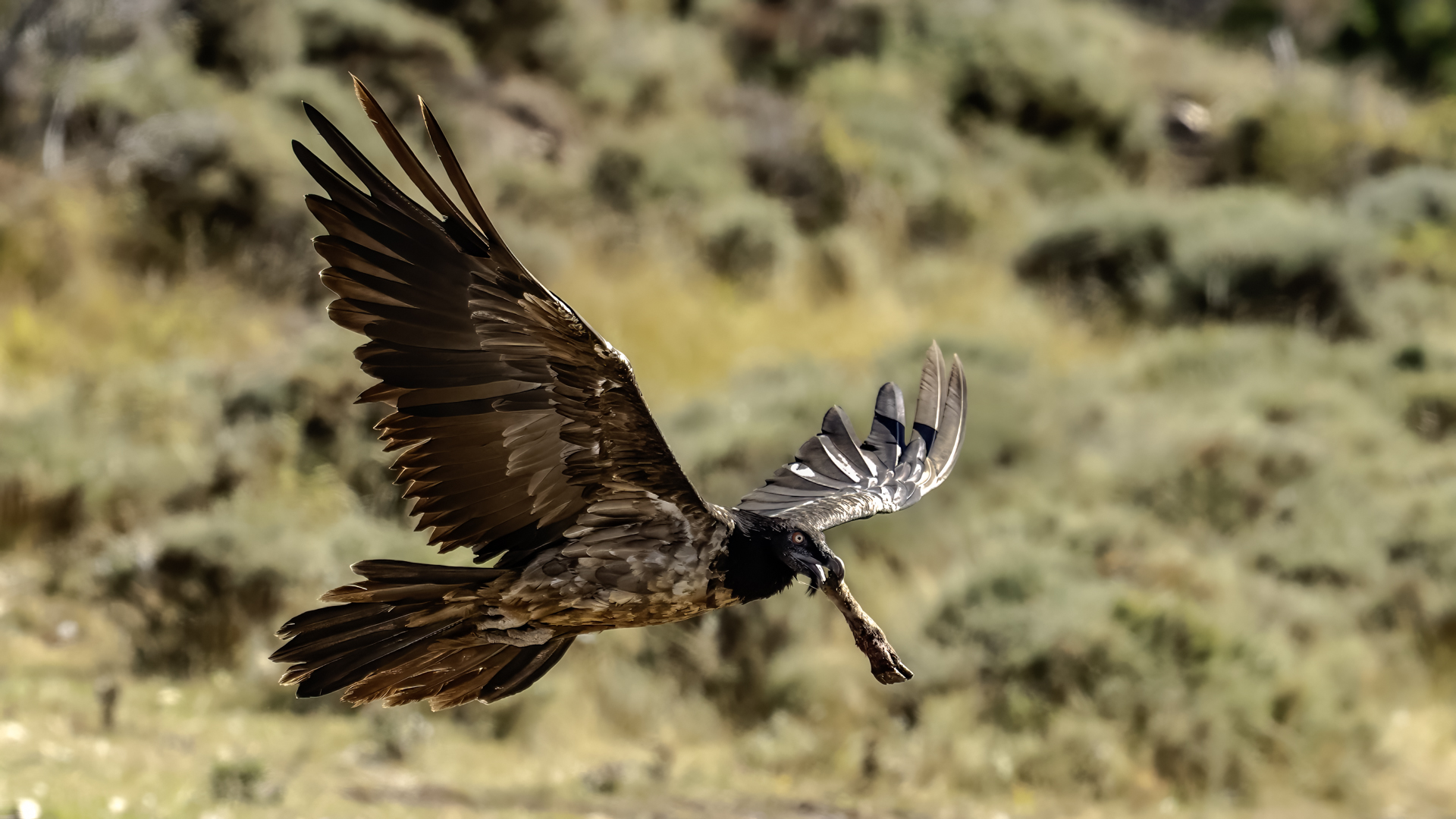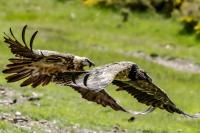 There are galleries of documentary value on my website, which I think will remain unchanged. But the bearded vulture‘s gallery could not be one of them. For the first time I tried to photograph the bearded vulture in 2014. I succeeded half-way, because although I took some photos, but not one that would capture all the charm of this bird. In Mongolia, a few random pictures of a passing vulture have been taken. Not to mention that meeting an adult never happened to me. My fascination with this species is not unusual. Many people admire this wonderful glider due to its charm, its behavior different from other birds of prey and the variation of plumage. Within the time until they are 7 years old the bird’s coloration changes practically every year. Efforts are effectively made to reintroduce this species in Europe, where it once occurred in almost all the high mountains. When photographing birds of prey in Poland we have to wait for them in the lookouts point all day long, an hour before dawn and an hour after dusk. In the case of the bearded vulture there is no such need, but to a large extent we are dependent on weather conditions. It is hard to encounter a vulture on windless, rainy days. These birds can wait 2-3 hours from sunrise for thermals to rise (columns of rising warm air), that especially on windy days allow them to soar all day in search of food. At the end of the day downshift of temperature before sunset makes the vultures disappear. Such weather conditions make it difficult to take good pictures. The strong sunshine is conducive to high contrast and overexposed images. There were no clouds that could diminish the strong light and contrast. Birds were actually quite numerous. Sometimes I could see six birds in front of the lens and the same number of them in the air. They were only going to fly down when one of them had landed looking for more delicious bones to eat. Sometimes they performed many laps spending time on watching the place where the bones were laid. They were so focused on the observation that many times they seemed to collide in the air. The ease they soar with is another reason to admire them. I could see them quarrelling in the air while the birds flew upside down. I posted some pictures of these aerial acrobatics. I have also seen two failed attempts to break bones against rocks. Young individuals tried to do it from relatively small height and the bones fell on the grass. In the gallery of the bearded vulture no trace of the old pictures can be found. This time it was also possible to record the voice of the bearded vulture. This is not a typical sound I guess, but the only animal that gave sounds was a young specimen of this year hatch. He landed among dozens of bones and only when saw any other vulture arrived it gave sounds as if asking for feeding. Birds after picking bones almost always took their wings and flew up in the air with "prey" unless there were other birds nearby, in such case they fed on the spot. Adults when they took flight almost always kept a bone in their claws, while the young at first kept a bone in the beak, and then a few meters above the ground they grabbed it in their claws. Bearded vultures generally raise one offspring. Even if the second egg appears in the nest only one chick grows up to flying age. But before that happens bearded vultures build a large nest or a few nests in inaccessible caves, crevices and rock shelves at a short distance one from another. Once the eggs are laid incubation lasts almost two months. Another 4 months or so the young is fed in the nest. The young become independent at the age of two years and they reach sexual maturity when they are 7 years old. This time a lot of information and quite a lot of pictures, but species exceptional for me should have a special gallery. Finally, I did it. The gallery, in my opinion, has become one of the most interesting on my site and from a documentary one-star converted into a four-star gallery. Finally, the time has come, the moment I have been waiting for years, and all this happened in Spain. Who knows, maybe once in our Tatra mountains we will find these birds, which, unlike the golden eagles or white-tailed eagles, do not avoid so much people and their homes.
