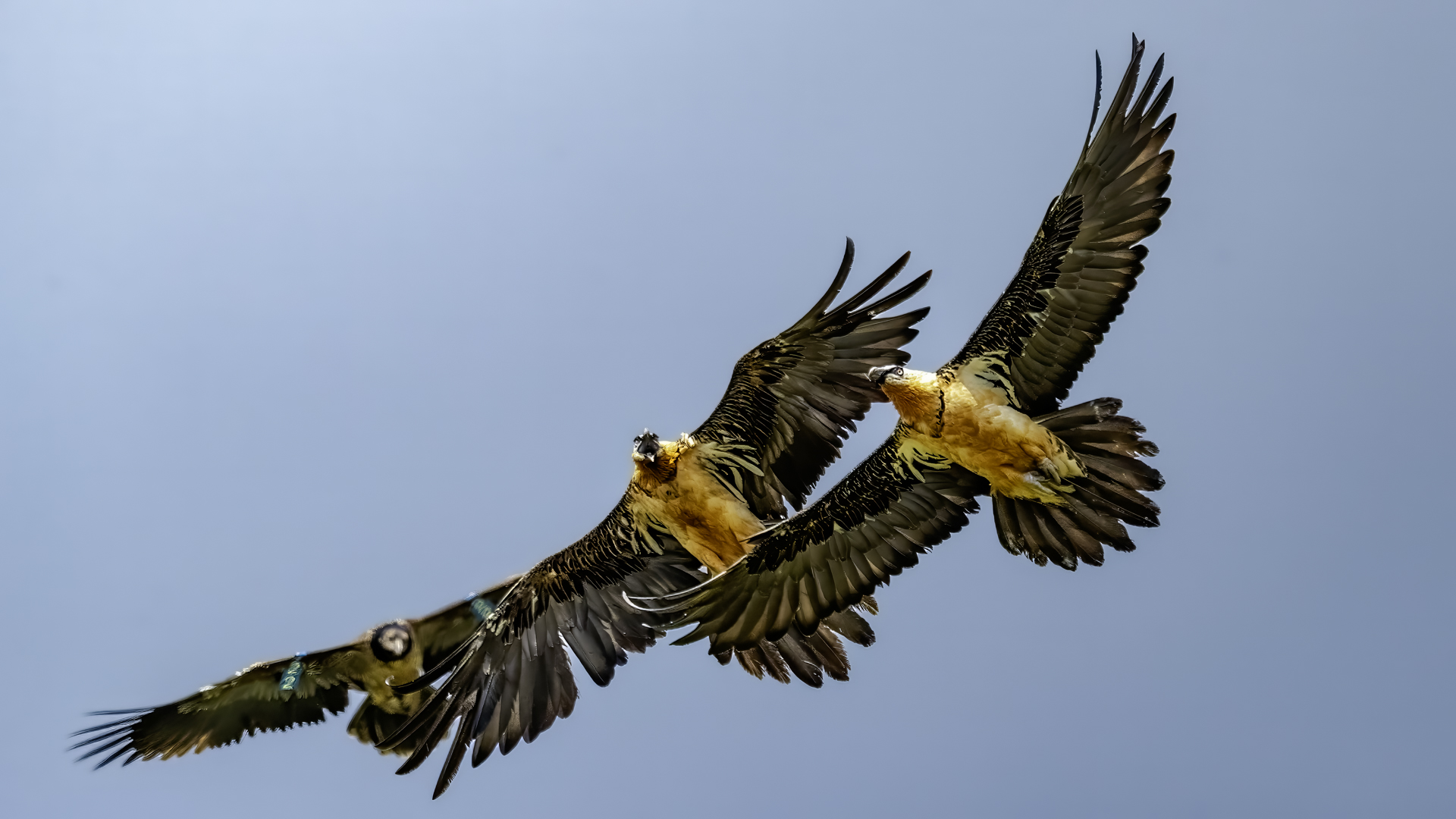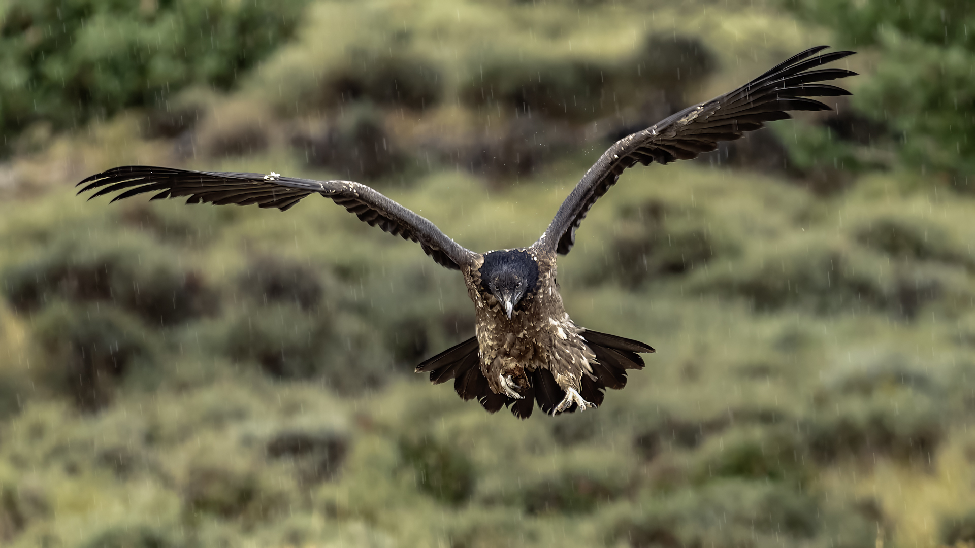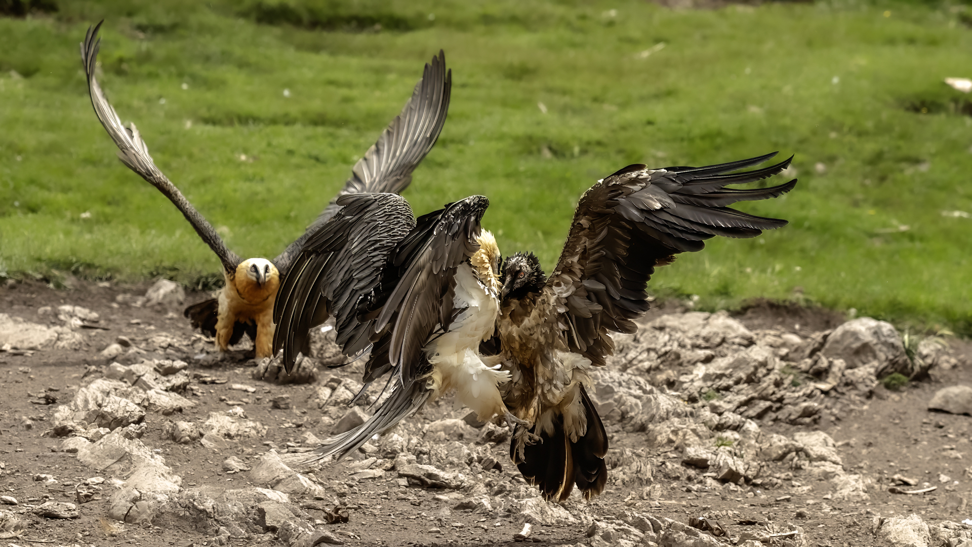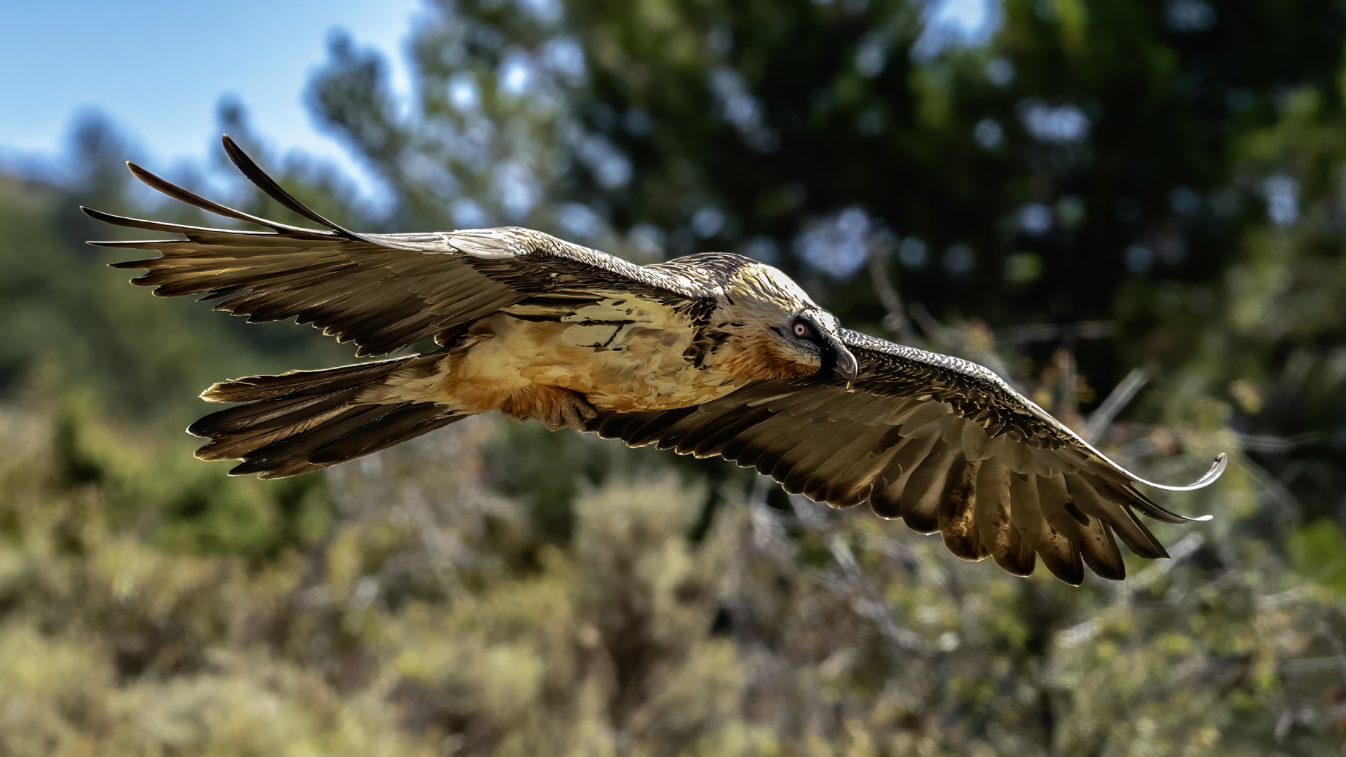 There are galleries of documentary value on my website, which I think will remain unchanged. But the bearded vulture‘s gallery could not be one of them. For the first time I tried to photograph the bearded vulture in 2014. I succeeded half-way, because although I took some photos, but not one that would capture all the charm of this bird. In Mongolia, a few random pictures of a passing vulture have been taken. Not to mention that meeting an adult never happened to me. My fascination with this species is not unusual. Many people admire this wonderful glider due to its charm, its behavior different from other birds of prey and the variation of plumage. Within the time until they are 7 years old the bird’s coloration changes practically every year. Efforts are effectively made to reintroduce this species in Europe, where it once occurred in almost all the high mountains. When photographing birds of prey in Poland we have to wait for them in the lookouts point all day long, an hour before dawn and an hour after dusk. In the case of the bearded vulture there is no such need, but to a large extent we are dependent on weather conditions. It is hard to encounter a vulture on windless, rainy days. These birds can wait 2-3 hours from sunrise for thermals to rise (columns of rising warm air), that especially on windy days allow them to soar all day in search of food. At the end of the day downshift of temperature before sunset makes the vultures disappear. Such weather conditions make it difficult to take good pictures. The strong sunshine is conducive to high contrast and overexposed images. There were no clouds that could diminish the strong light and contrast. Birds were actually quite numerous. Sometimes I could see six birds in front of the lens and the same number of them in the air. They were only going to fly down when one of them had landed looking for more delicious bones to eat. Sometimes they performed many laps spending time on watching the place where the bones were laid. They were so focused on the observation that many times they seemed to collide in the air. The ease they soar with is another reason to admire them. I could see them quarrelling in the air while the birds flew upside down. I posted some pictures of these aerial acrobatics. I have also seen two failed attempts to break bones against rocks. Young individuals tried to do it from relatively small height and the bones fell on the grass. In the gallery of the bearded vulture no trace of the old pictures can be found. This time it was also possible to record the voice of the bearded vulture. This is not a typical sound I guess, but the only animal that gave sounds was a young specimen of this year hatch. He landed among dozens of bones and only when saw any other vulture arrived it gave sounds as if asking for feeding. Birds after picking bones almost always took their wings and flew up in the air with "prey" unless there were other birds nearby, in such case they fed on the spot. Adults when they took flight almost always kept a bone in their claws, while the young at first kept a bone in the beak, and then a few meters above the ground they grabbed it in their claws. Bearded vultures generally raise one offspring. Even if the second egg appears in the nest only one chick grows up to flying age. But before that happens bearded vultures build a large nest or a few nests in inaccessible caves, crevices and rock shelves at a short distance one from another. Once the eggs are laid incubation lasts almost two months. Another 4 months or so the young is fed in the nest. The young become independent at the age of two years and they reach sexual maturity when they are 7 years old. This time a lot of information and quite a lot of pictures, but species exceptional for me should have a special gallery. Finally, I did it. The gallery, in my opinion, has become one of the most interesting on my site and from a documentary one-star converted into a four-star gallery. Finally, the time has come, the moment I have been waiting for years, and all this happened in Spain. Who knows, maybe once in our Tatra mountains we will find these birds, which, unlike the golden eagles or white-tailed eagles, do not avoid so much people and their homes.