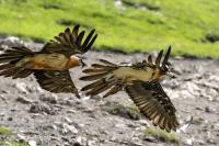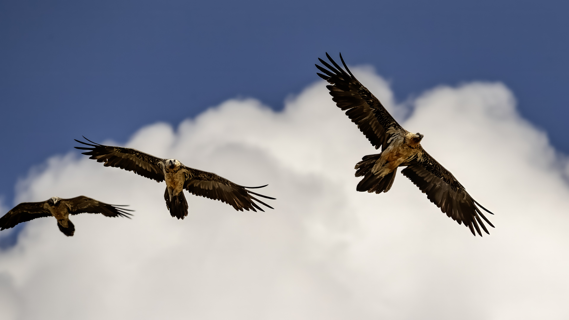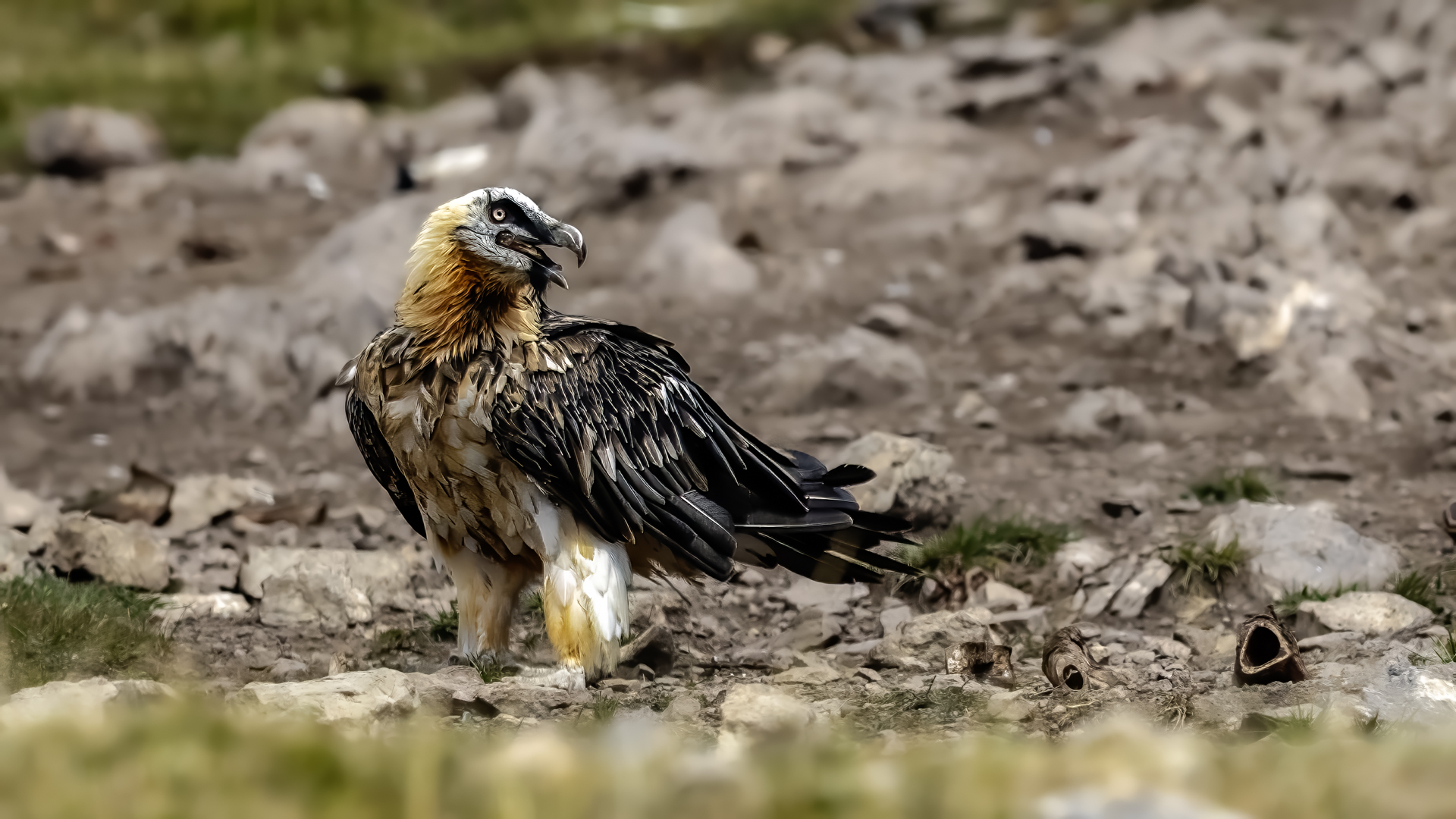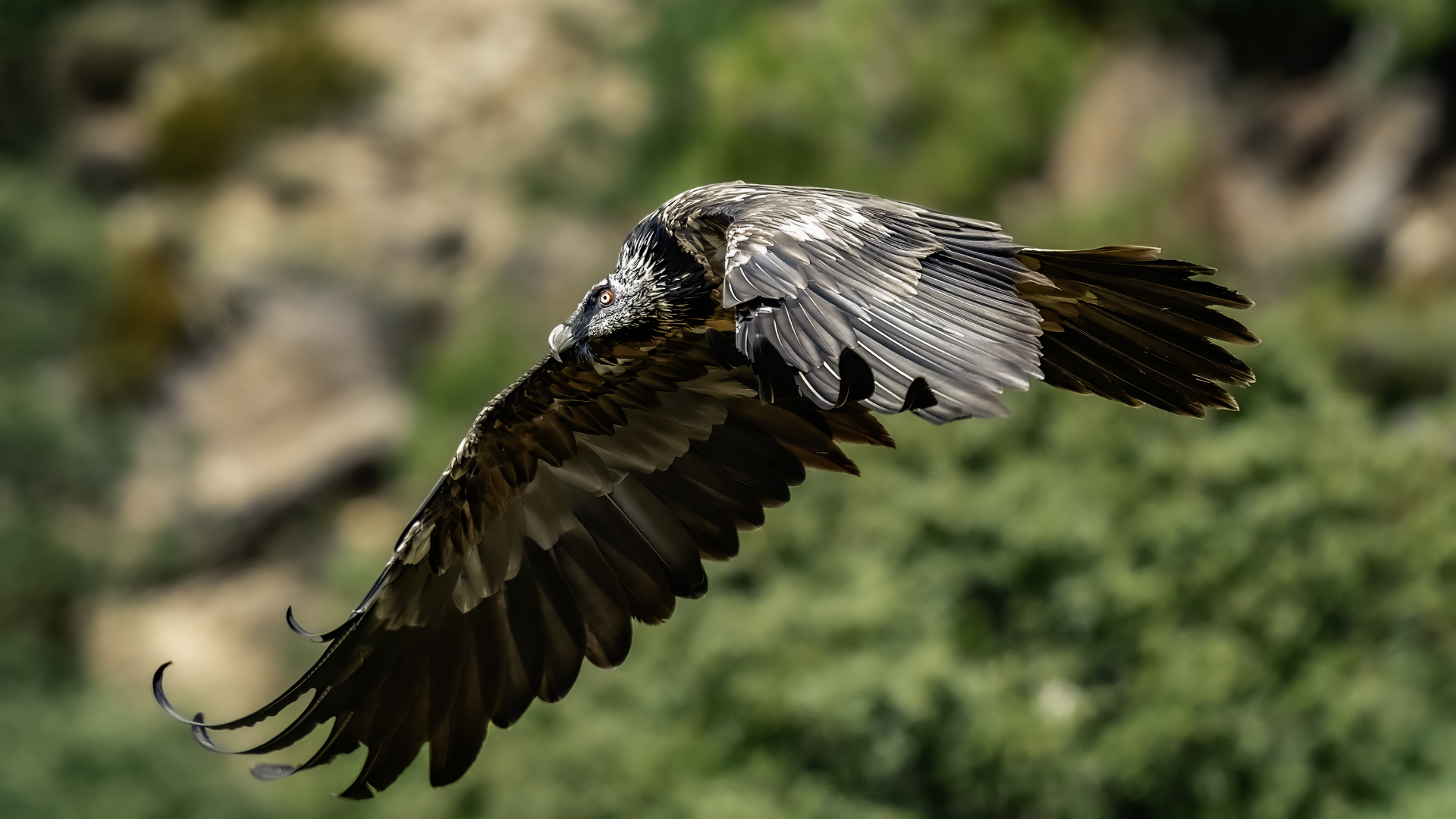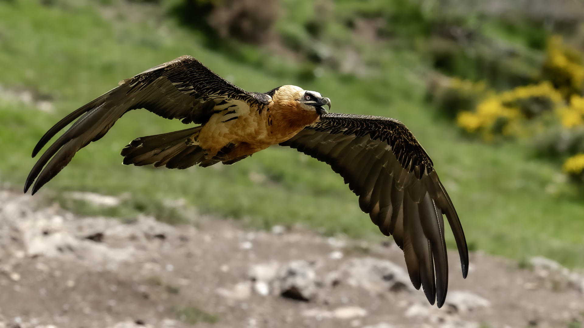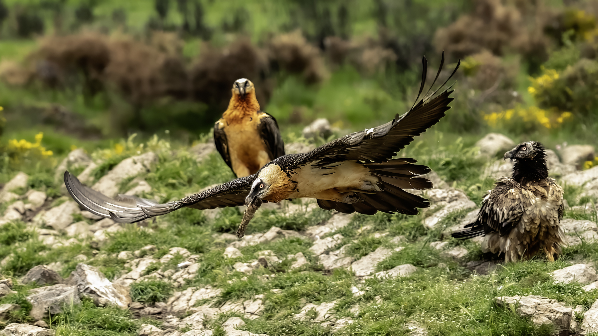 There are galleries of documentary value on my website, which I think will remain unchanged. But the bearded vulture‘s gallery could not be one of them. For the first time I tried to photograph the bearded vulture in 2014. I succeeded half-way, because although I took some photos, but not one that would capture all the charm of this bird. In Mongolia, a few random pictures of a passing vulture have been taken. Not to mention that meeting an adult never happened to me. My fascination with this species is not unusual. Many people admire this wonderful glider due to its charm, its behavior different from other birds of prey and the variation of plumage. Within the time until they are 7 years old the bird’s coloration changes practically every year. Efforts are effectively made to reintroduce this species in Europe, where it once occurred in almost all the high mountains. When photographing birds of prey in Poland we have to wait for them in the lookouts point all day long, an hour before dawn and an hour after dusk. In the case of the bearded vulture there is no such need, but to a large extent we are dependent on weather conditions. It is hard to encounter a vulture on windless, rainy days. These birds can wait 2-3 hours from sunrise for thermals to rise (columns of rising warm air), that especially on windy days allow them to soar all day in search of food. At the end of the day downshift of temperature before sunset makes the vultures disappear. Such weather conditions make it difficult to take good pictures. The strong sunshine is conducive to high contrast and overexposed images. There were no clouds that could diminish the strong light and contrast. Birds were actually quite numerous. Sometimes I could see six birds in front of the lens and the same number of them in the air. They were only going to fly down when one of them had landed looking for more delicious bones to eat. Sometimes they performed many laps spending time on watching the place where the bones were laid. They were so focused on the observation that many times they seemed to collide in the air. The ease they soar with is another reason to admire them. I could see them quarrelling in the air while the birds flew upside down. I posted some pictures of these aerial acrobatics. I have also seen two failed attempts to break bones against rocks. Young individuals tried to do it from relatively small height and the bones fell on the grass. In the gallery of the bearded vulture no trace of the old pictures can be found. This time it was also possible to record the voice of the bearded vulture. This is not a typical sound I guess, but the only animal that gave sounds was a young specimen of this year hatch. He landed among dozens of bones and only when saw any other vulture arrived it gave sounds as if asking for feeding. Birds after picking bones almost always took their wings and flew up in the air with "prey" unless there were other birds nearby, in such case they fed on the spot. Adults when they took flight almost always kept a bone in their claws, while the young at first kept a bone in the beak, and then a few meters above the ground they grabbed it in their claws. Bearded vultures generally raise one offspring. Even if the second egg appears in the nest only one chick grows up to flying age. But before that happens bearded vultures build a large nest or a few nests in inaccessible caves, crevices and rock shelves at a short distance one from another. Once the eggs are laid incubation lasts almost two months. Another 4 months or so the young is fed in the nest. The young become independent at the age of two years and they reach sexual maturity when they are 7 years old. This time a lot of information and quite a lot of pictures, but species exceptional for me should have a special gallery. Finally, I did it. The gallery, in my opinion, has become one of the most interesting on my site and from a documentary one-star converted into a four-star gallery. Finally, the time has come, the moment I have been waiting for years, and all this happened in Spain. Who knows, maybe once in our Tatra mountains we will find these birds, which, unlike the golden eagles or white-tailed eagles, do not avoid so much people and their homes.