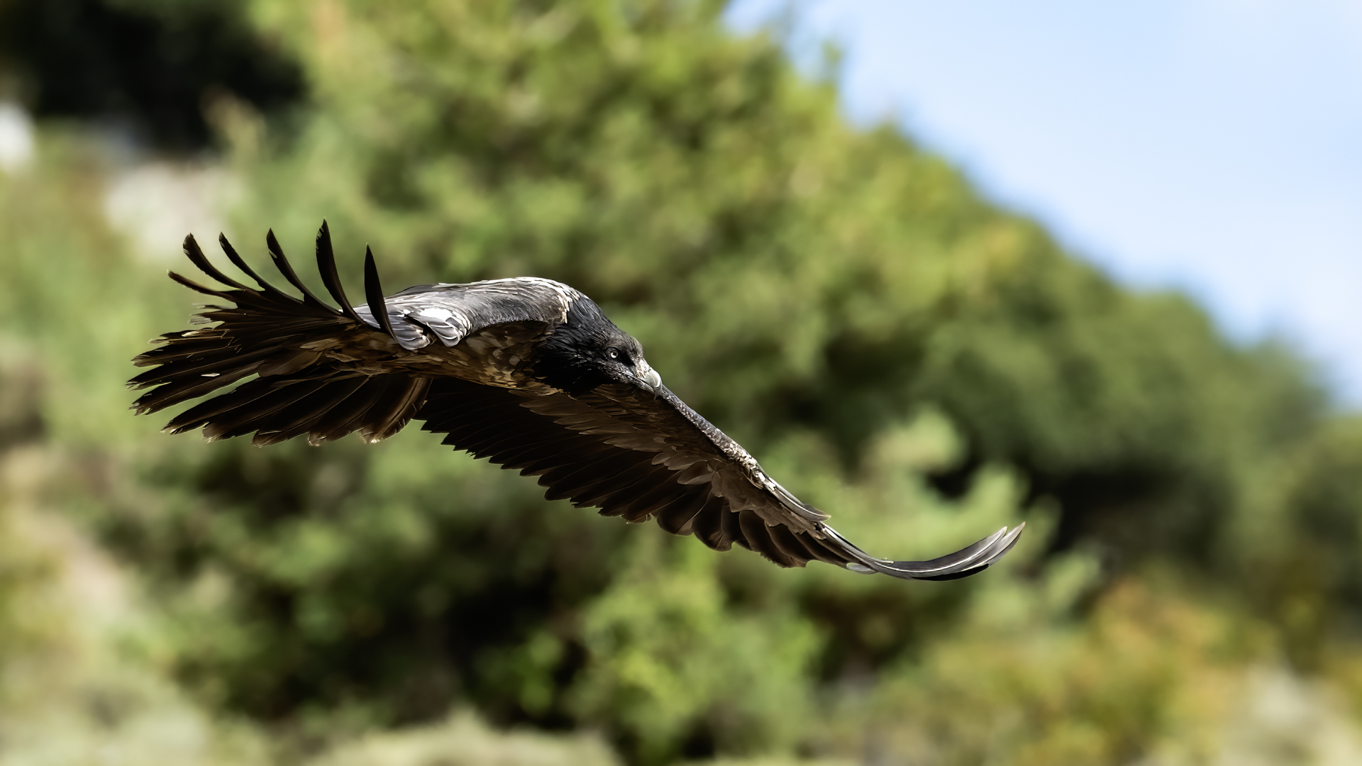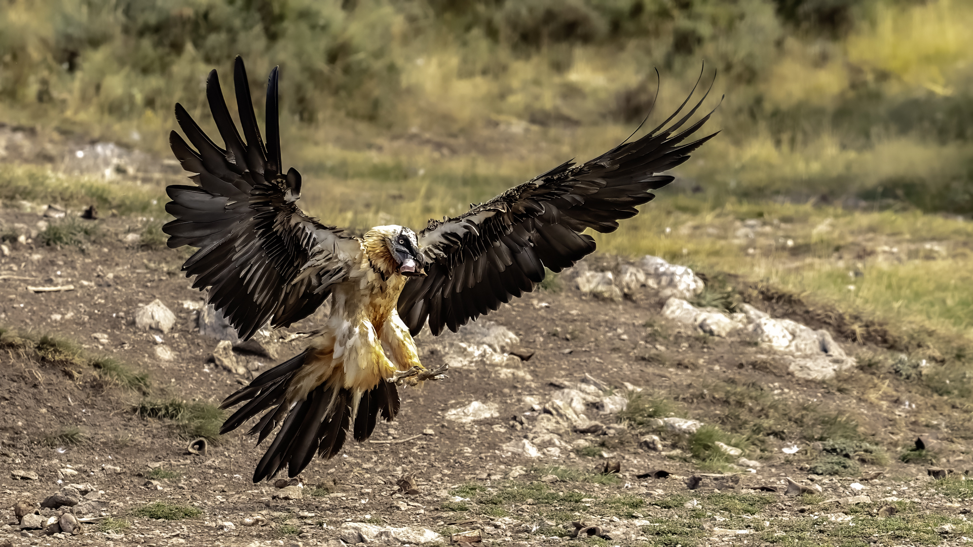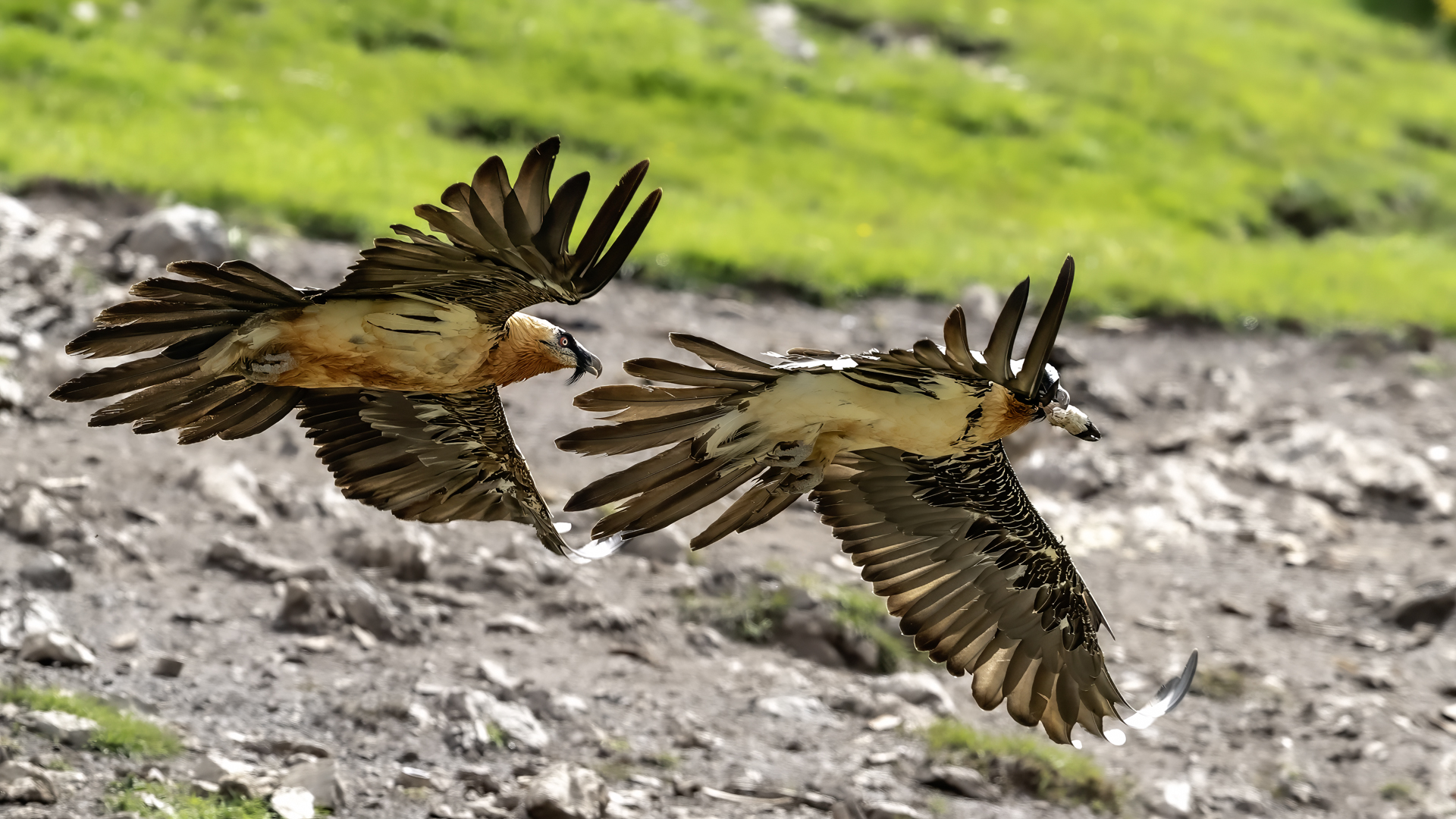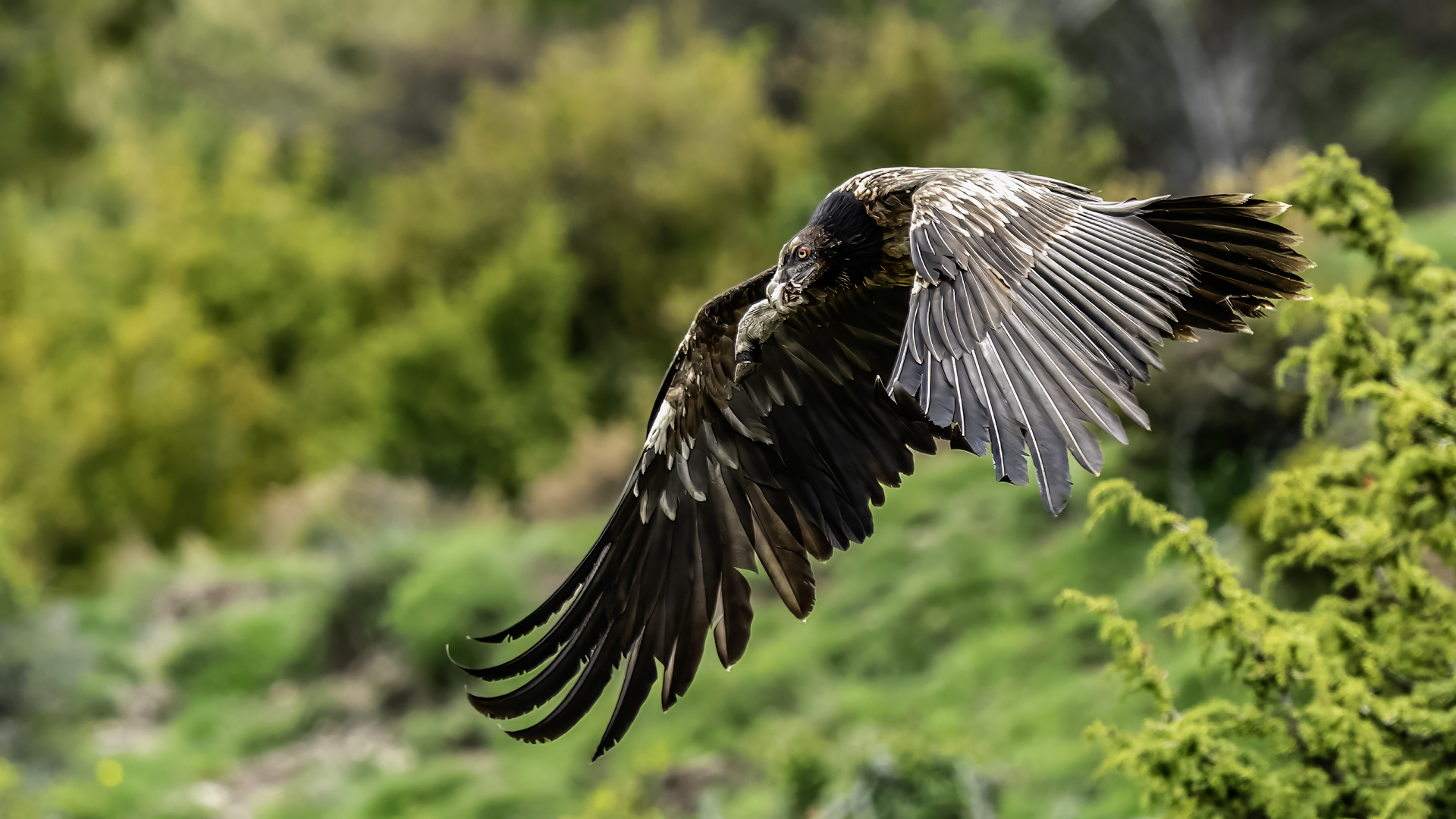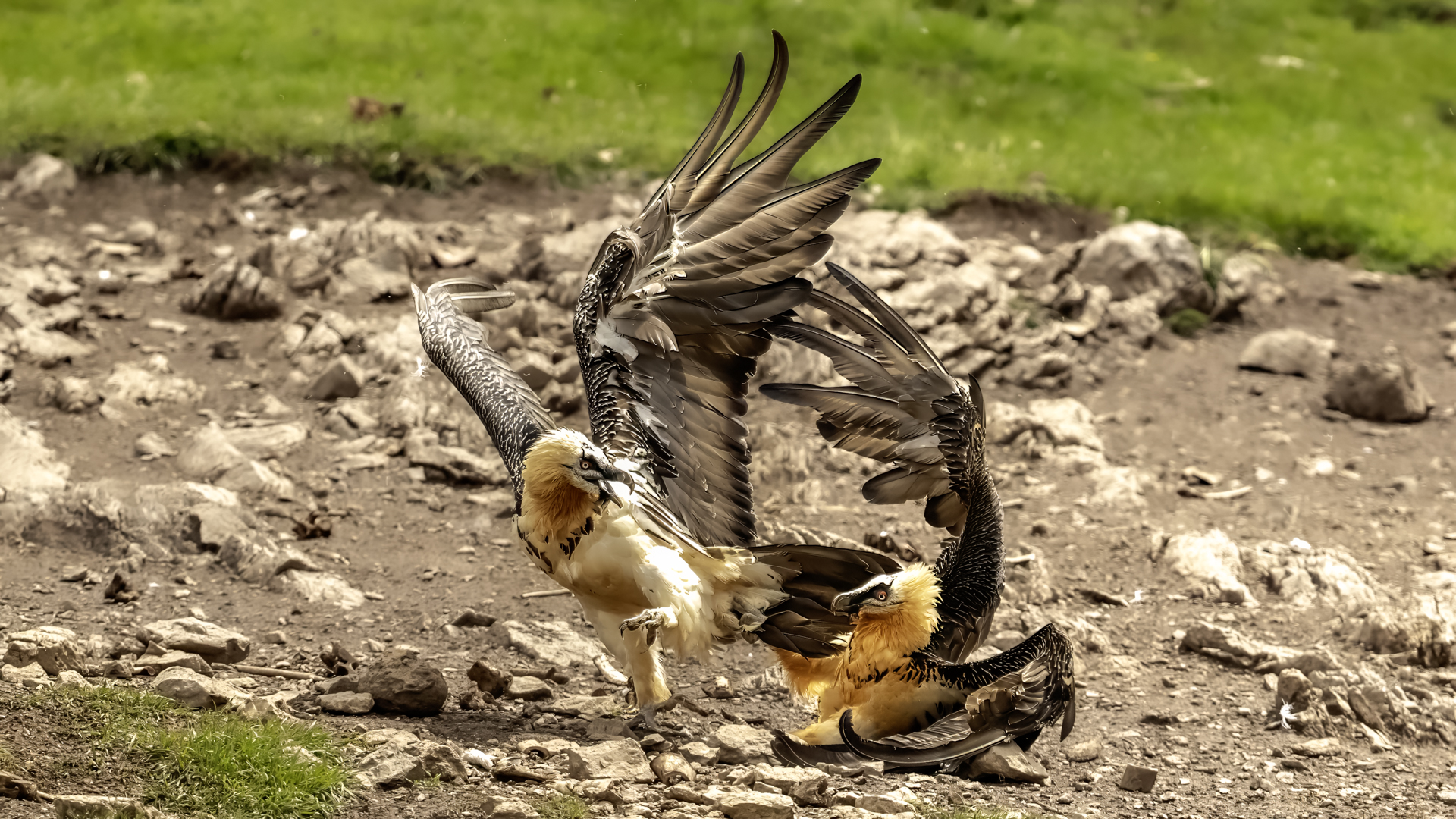There are galleries of documentary value on my website, which I think will remain unchanged. But the bearded vulture‘s gallery could not be one of them. For the first time I tried to photograph the bearded vulture in 2014. I succeeded half-way, because although I took some photos, but not one that would capture all the charm of this bird. In Mongolia, a few random pictures of a passing vulture have been taken. Not to mention that meeting an adult never happened to me. My fascination with this species is not unusual. Many people admire this wonderful glider due to its charm, its behavior different from other birds of prey and the variation of plumage. Within the time until they are 7 years old the bird’s coloration changes practically every year. Efforts are effectively made to reintroduce this species in Europe, where it once occurred in almost all the high mountains. When photographing birds of prey in Poland we have to wait for them in the lookouts point all day long, an hour before dawn and an hour after dusk. In the case of the bearded vulture there is no such need, but to a large extent we are dependent on weather conditions. It is hard to encounter a vulture on windless, rainy days. These birds can wait 2-3 hours from sunrise for thermals to rise (columns of rising warm air), that especially on windy days allow them to soar all day in search of food. At the end of the day downshift of temperature before sunset makes the vultures disappear. Such weather conditions make it difficult to take good pictures. The strong sunshine is conducive to high contrast and overexposed images. There were no clouds that could diminish the strong light and contrast. Birds were actually quite numerous. Sometimes I could see six birds in front of the lens and the same number of them in the air. They were only going to fly down when one of them had landed looking for more delicious bones to eat. Sometimes they performed many laps spending time on watching the place where the bones were laid. They were so focused on the observation that many times they seemed to collide in the air. The ease they soar with is another reason to admire them. I could see them quarrelling in the air while the birds flew upside down. I posted some pictures of these aerial acrobatics. I have also seen two failed attempts to break bones against rocks. Young individuals tried to do it from relatively small height and the bones fell on the grass. In the gallery of the bearded vulture no trace of the old pictures can be found. This time it was also possible to record the voice of the bearded vulture. This is not a typical sound I guess, but the only animal that gave sounds was a young specimen of this year hatch. He landed among dozens of bones and only when saw any other vulture arrived it gave sounds as if asking for feeding. Birds after picking bones almost always took their wings and flew up in the air with "prey" unless there were other birds nearby, in such case they fed on the spot. Adults when they took flight almost always kept a bone in their claws, while the young at first kept a bone in the beak, and then a few meters above the ground they grabbed it in their claws. Bearded vultures generally raise one offspring. Even if the second egg appears in the nest only one chick grows up to flying age. But before that happens bearded vultures build a large nest or a few nests in inaccessible caves, crevices and rock shelves at a short distance one from another. Once the eggs are laid incubation lasts almost two months. Another 4 months or so the young is fed in the nest. The young become independent at the age of two years and they reach sexual maturity when they are 7 years old. This time a lot of information and quite a lot of pictures, but species exceptional for me should have a special gallery. Finally, I did it. The gallery, in my opinion, has become one of the most interesting on my site and from a documentary one-star converted into a four-star gallery. Finally, the time has come, the moment I have been waiting for years, and all this happened in Spain. Who knows, maybe once in our Tatra mountains we will find these birds, which, unlike the golden eagles or white-tailed eagles, do not avoid so much people and their homes.