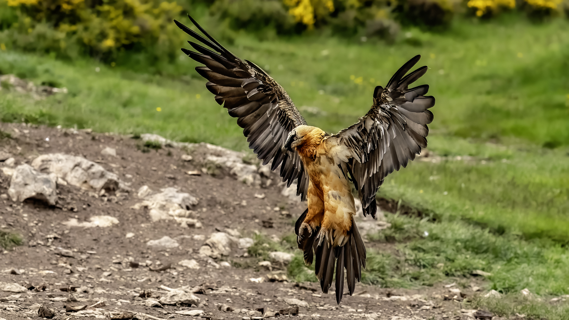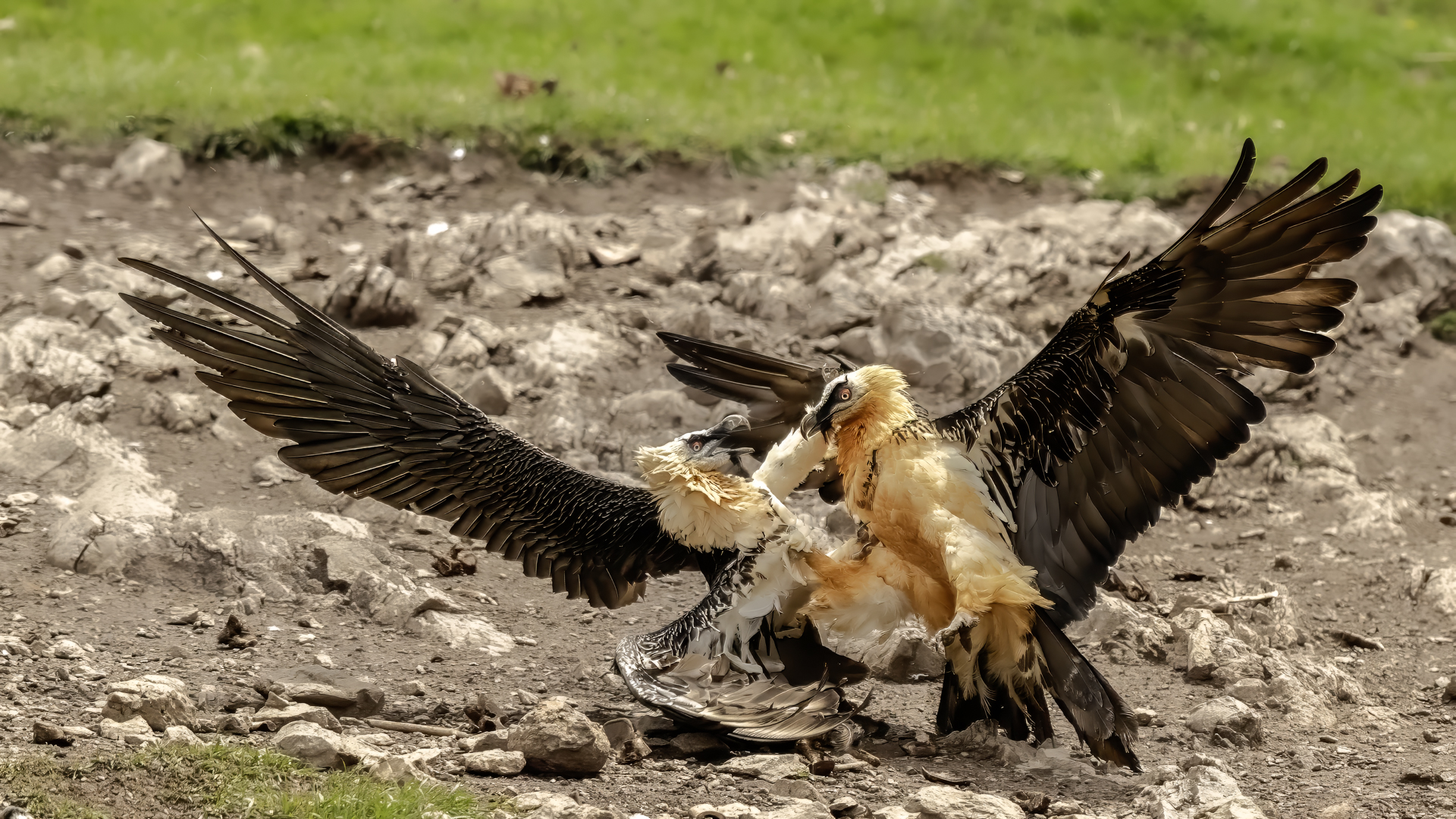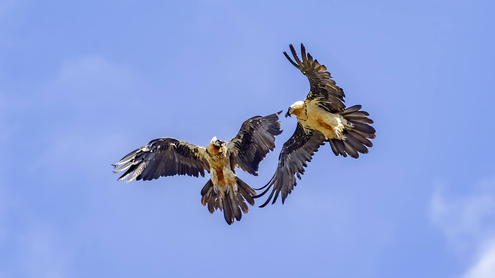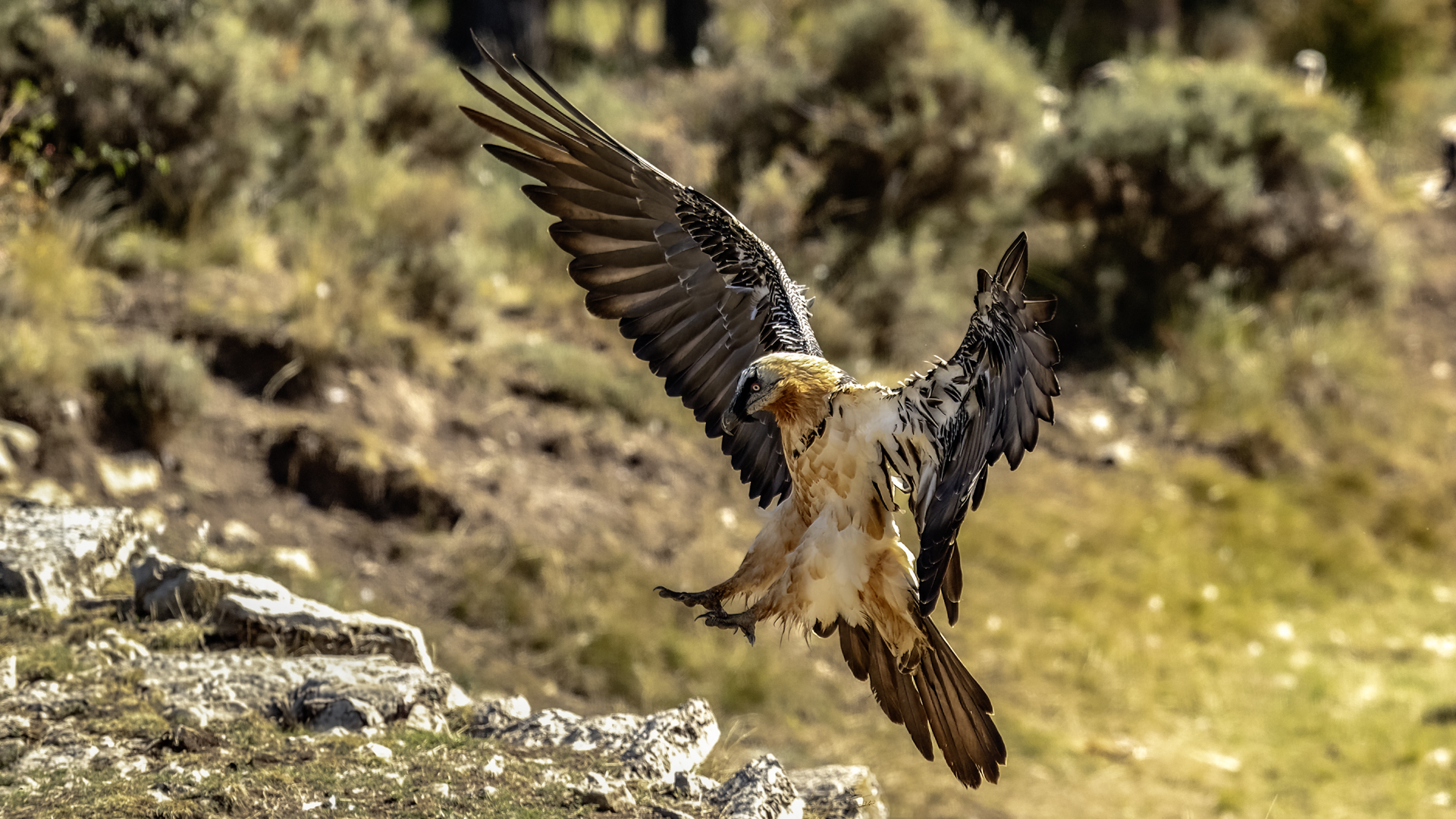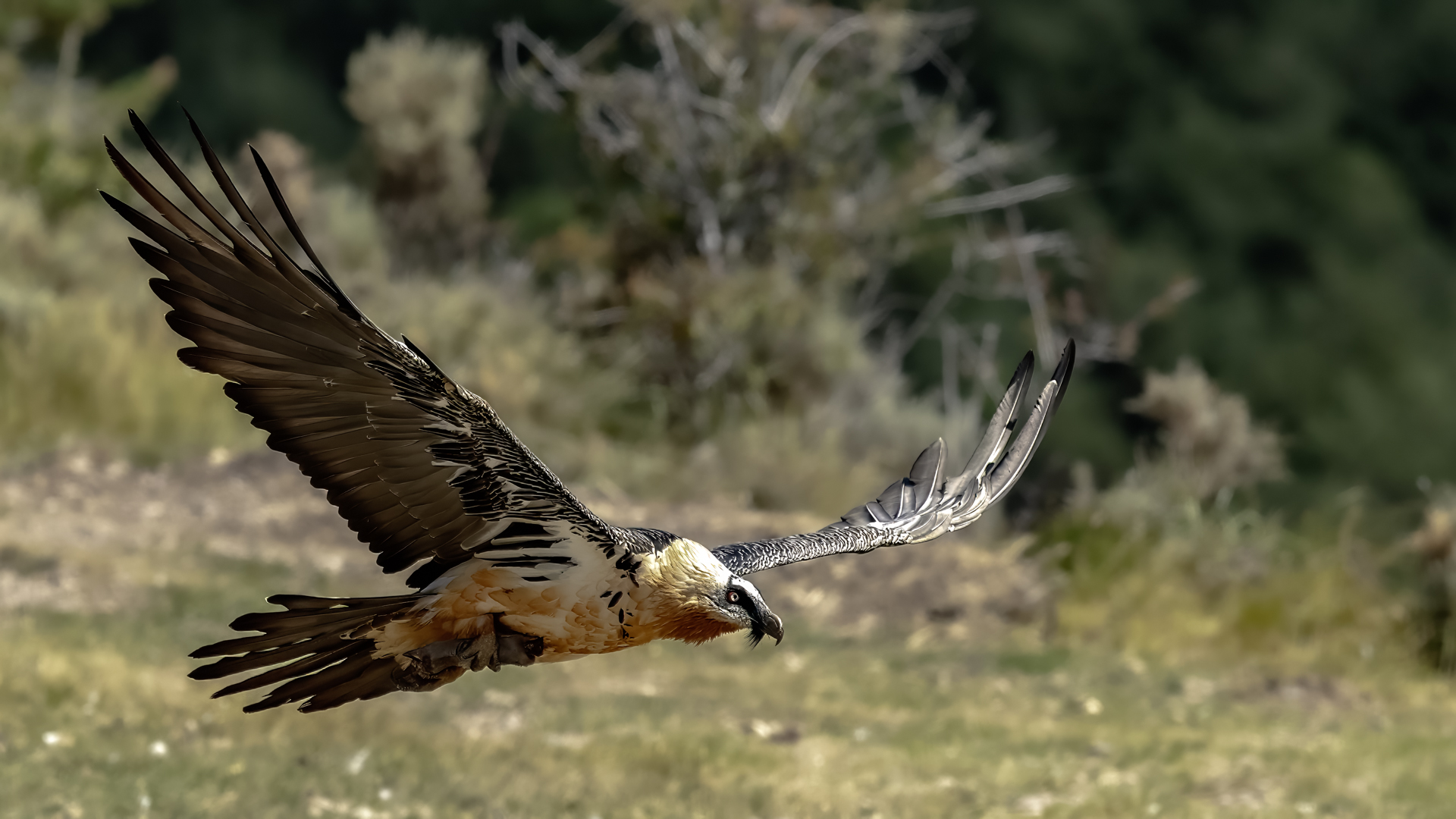 There are galleries of documentary value on my website, which I think will remain unchanged. But the bearded vulture‘s gallery could not be one of them. For the first time I tried to photograph the bearded vulture in 2014. I succeeded half-way, because although I took some photos, but not one that would capture all the charm of this bird. In Mongolia, a few random pictures of a passing vulture have been taken. Not to mention that meeting an adult never happened to me. My fascination with this species is not unusual. Many people admire this wonderful glider due to its charm, its behavior different from other birds of prey and the variation of plumage. Within the time until they are 7 years old the bird’s coloration changes practically every year. Efforts are effectively made to reintroduce this species in Europe, where it once occurred in almost all the high mountains. When photographing birds of prey in Poland we have to wait for them in the lookouts point all day long, an hour before dawn and an hour after dusk. In the case of the bearded vulture there is no such need, but to a large extent we are dependent on weather conditions. It is hard to encounter a vulture on windless, rainy days. These birds can wait 2-3 hours from sunrise for thermals to rise (columns of rising warm air), that especially on windy days allow them to soar all day in search of food. At the end of the day downshift of temperature before sunset makes the vultures disappear. Such weather conditions make it difficult to take good pictures. The strong sunshine is conducive to high contrast and overexposed images. There were no clouds that could diminish the strong light and contrast. Birds were actually quite numerous. Sometimes I could see six birds in front of the lens and the same number of them in the air. They were only going to fly down when one of them had landed looking for more delicious bones to eat. Sometimes they performed many laps spending time on watching the place where the bones were laid. They were so focused on the observation that many times they seemed to collide in the air. The ease they soar with is another reason to admire them. I could see them quarrelling in the air while the birds flew upside down. I posted some pictures of these aerial acrobatics. I have also seen two failed attempts to break bones against rocks. Young individuals tried to do it from relatively small height and the bones fell on the grass. In the gallery of the bearded vulture no trace of the old pictures can be found. This time it was also possible to record the voice of the bearded vulture. This is not a typical sound I guess, but the only animal that gave sounds was a young specimen of this year hatch. He landed among dozens of bones and only when saw any other vulture arrived it gave sounds as if asking for feeding. Birds after picking bones almost always took their wings and flew up in the air with "prey" unless there were other birds nearby, in such case they fed on the spot. Adults when they took flight almost always kept a bone in their claws, while the young at first kept a bone in the beak, and then a few meters above the ground they grabbed it in their claws. Bearded vultures generally raise one offspring. Even if the second egg appears in the nest only one chick grows up to flying age. But before that happens bearded vultures build a large nest or a few nests in inaccessible caves, crevices and rock shelves at a short distance one from another. Once the eggs are laid incubation lasts almost two months. Another 4 months or so the young is fed in the nest. The young become independent at the age of two years and they reach sexual maturity when they are 7 years old. This time a lot of information and quite a lot of pictures, but species exceptional for me should have a special gallery. Finally, I did it. The gallery, in my opinion, has become one of the most interesting on my site and from a documentary one-star converted into a four-star gallery. Finally, the time has come, the moment I have been waiting for years, and all this happened in Spain. Who knows, maybe once in our Tatra mountains we will find these birds, which, unlike the golden eagles or white-tailed eagles, do not avoid so much people and their homes.