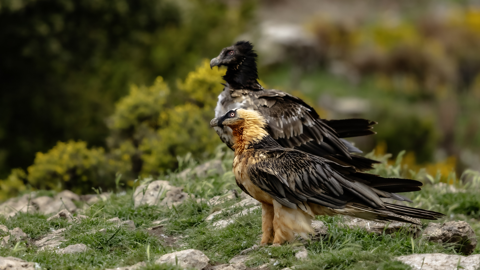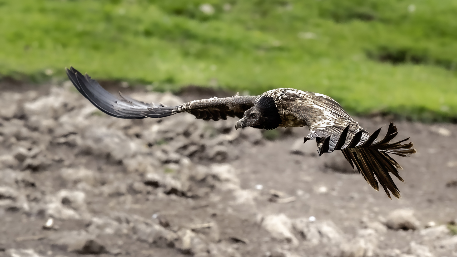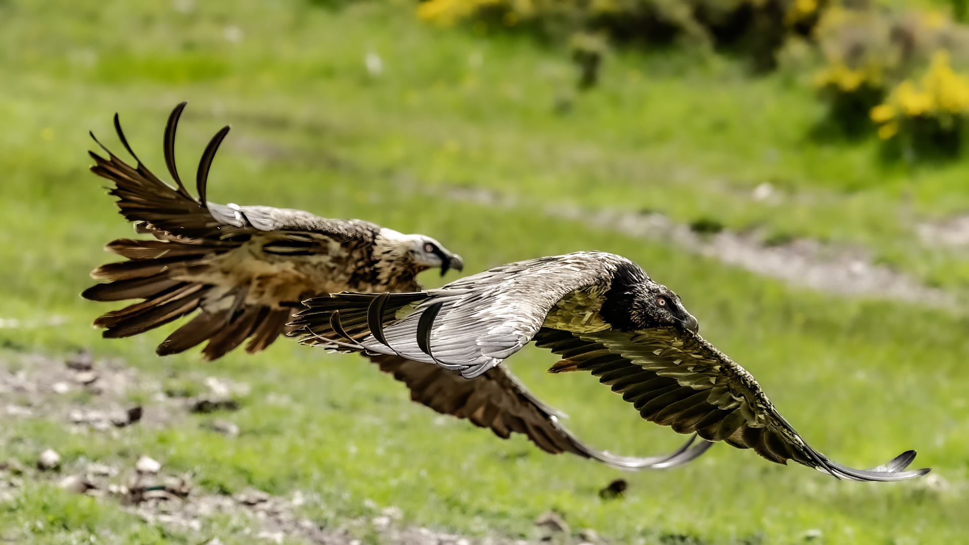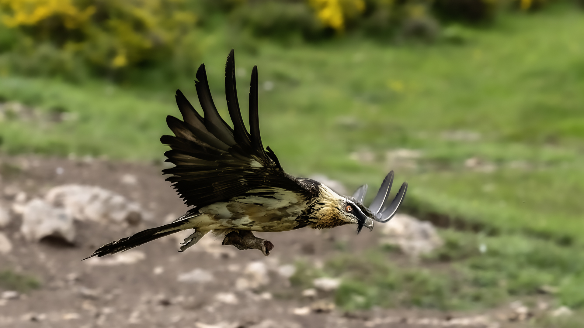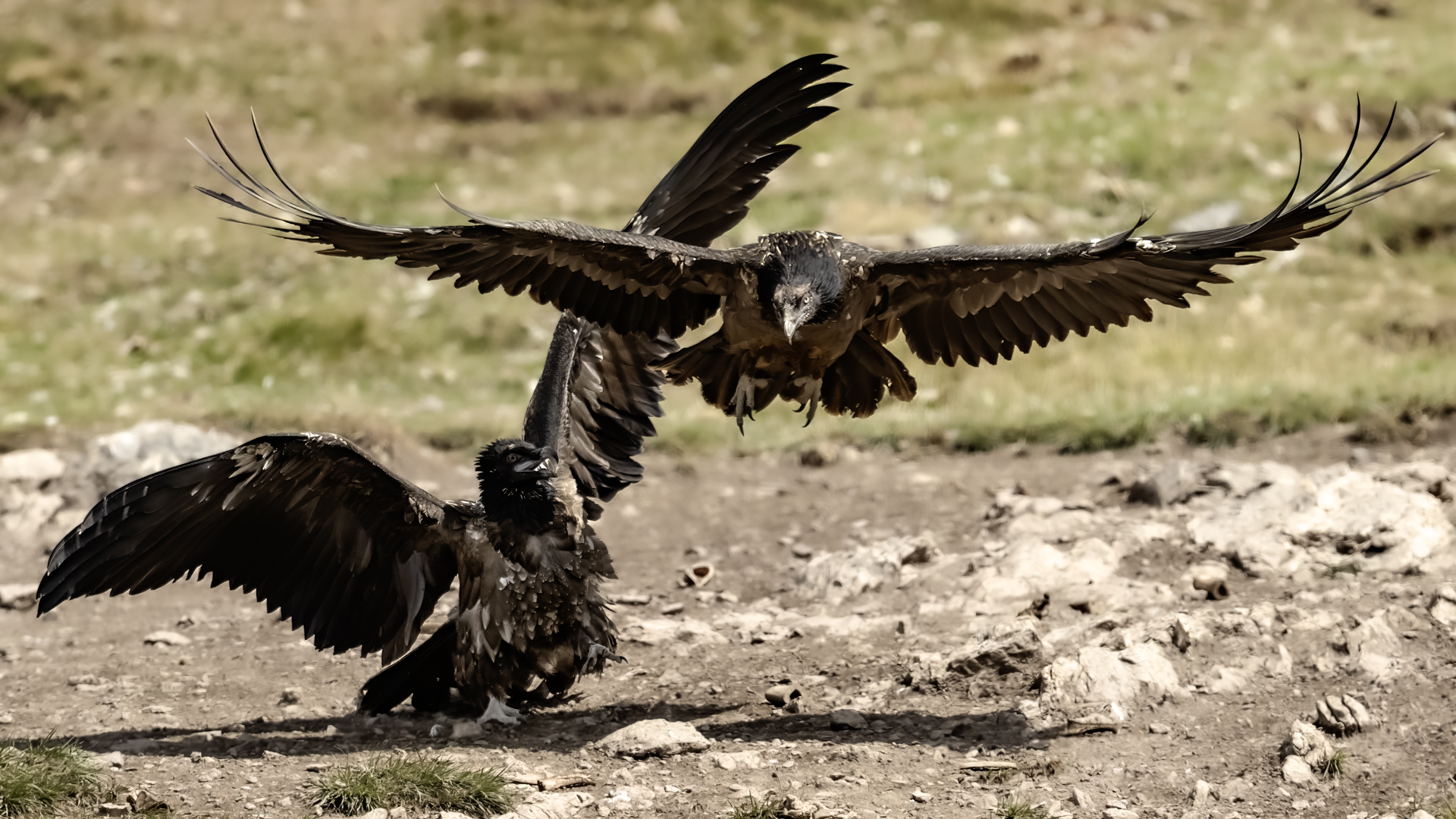 There are galleries of documentary value on my website, which I think will remain unchanged. But the bearded vulture‘s gallery could not be one of them. For the first time I tried to photograph the bearded vulture in 2014. I succeeded half-way, because although I took some photos, but not one that would capture all the charm of this bird. In Mongolia, a few random pictures of a passing vulture have been taken. Not to mention that meeting an adult never happened to me. My fascination with this species is not unusual. Many people admire this wonderful glider due to its charm, its behavior different from other birds of prey and the variation of plumage. Within the time until they are 7 years old the bird’s coloration changes practically every year. Efforts are effectively made to reintroduce this species in Europe, where it once occurred in almost all the high mountains. When photographing birds of prey in Poland we have to wait for them in the lookouts point all day long, an hour before dawn and an hour after dusk. In the case of the bearded vulture there is no such need, but to a large extent we are dependent on weather conditions. It is hard to encounter a vulture on windless, rainy days. These birds can wait 2-3 hours from sunrise for thermals to rise (columns of rising warm air), that especially on windy days allow them to soar all day in search of food. At the end of the day downshift of temperature before sunset makes the vultures disappear. Such weather conditions make it difficult to take good pictures. The strong sunshine is conducive to high contrast and overexposed images. There were no clouds that could diminish the strong light and contrast. Birds were actually quite numerous. Sometimes I could see six birds in front of the lens and the same number of them in the air. They were only going to fly down when one of them had landed looking for more delicious bones to eat. Sometimes they performed many laps spending time on watching the place where the bones were laid. They were so focused on the observation that many times they seemed to collide in the air. The ease they soar with is another reason to admire them. I could see them quarrelling in the air while the birds flew upside down. I posted some pictures of these aerial acrobatics. I have also seen two failed attempts to break bones against rocks. Young individuals tried to do it from relatively small height and the bones fell on the grass. In the gallery of the bearded vulture no trace of the old pictures can be found. This time it was also possible to record the voice of the bearded vulture. This is not a typical sound I guess, but the only animal that gave sounds was a young specimen of this year hatch. He landed among dozens of bones and only when saw any other vulture arrived it gave sounds as if asking for feeding. Birds after picking bones almost always took their wings and flew up in the air with "prey" unless there were other birds nearby, in such case they fed on the spot. Adults when they took flight almost always kept a bone in their claws, while the young at first kept a bone in the beak, and then a few meters above the ground they grabbed it in their claws. Bearded vultures generally raise one offspring. Even if the second egg appears in the nest only one chick grows up to flying age. But before that happens bearded vultures build a large nest or a few nests in inaccessible caves, crevices and rock shelves at a short distance one from another. Once the eggs are laid incubation lasts almost two months. Another 4 months or so the young is fed in the nest. The young become independent at the age of two years and they reach sexual maturity when they are 7 years old. This time a lot of information and quite a lot of pictures, but species exceptional for me should have a special gallery. Finally, I did it. The gallery, in my opinion, has become one of the most interesting on my site and from a documentary one-star converted into a four-star gallery. Finally, the time has come, the moment I have been waiting for years, and all this happened in Spain. Who knows, maybe once in our Tatra mountains we will find these birds, which, unlike the golden eagles or white-tailed eagles, do not avoid so much people and their homes.