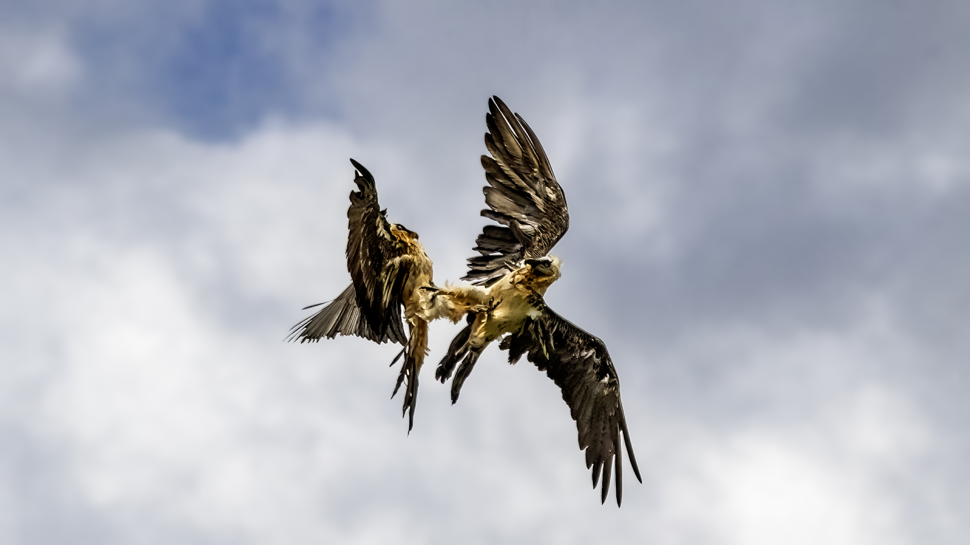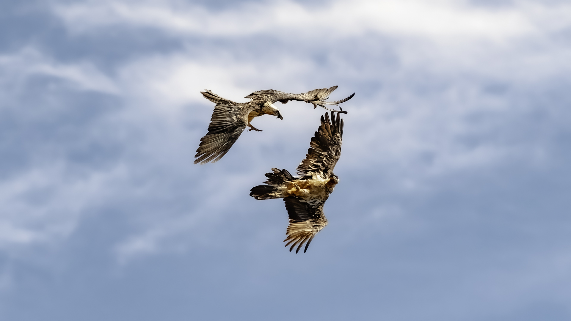 Well, I used to be satisfied with my previous bearded vulture gallery and the species was not the reason for my return to vulture hides in Spain. But my subsequent encounter with these birds has turned out to be more fruitful than the first one and it has far exceeded my expectations. All this thanks to favorable clouds and vultures’ fights. I have already written about air funnels which bearded vultures need to fly. Unfortunately, an intense sunlight caused “overlighting” of the white vultures’ necks. This time the birds occurred after a warm and cloudless morning, but after a while they covered the sky, or the sun, to be more precise. What is more, the birds fought with each other, which I hadn’t happened to observe before. Numerous photos of better quality were taken and the gallery has been remodeled, so the bearded vulture gets into the news section.