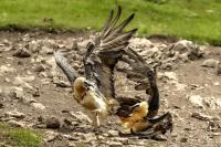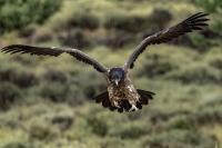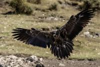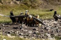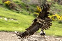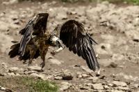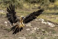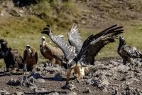 Frankly speaking when I was flying to Turkey, I did not believe that I would manage to photograph such a rare bird as the bearded vulture. In the whole world there's unfortunately only a few hundred pairs, but if I was successful with the houbara bustard, of which there are also a few hundred specimen in the world, I thought maybe I would be successful this time again. When I was preparing for the trip I watched pictures and read about this bird. What is incredible it's the fact that it can feed on bone marrow, and before it swallows a bone, it crashes it throwing it from a huge height. The bird doesn’t care that such broken bones can be very sharp sometimes. There was a lot of emotion during photo shooting of this bird, as on the first day the bird made a raid over the hide, while I was photographing the eastern imperial eagle, and had taken a lot of its pictures already. After it flew away the silence was deep as death. Being so close and even not to take one documentary photo… Fortunately a young, two-year-old specimen appeared for a longer while the next day, flying in circles over the hide. That was the time the photos presented here were taken. Having taken the above mentioned pictures, we were awaiting an adult specimen, whose plumage differs a lot from the plumage of a young bird. Here I refer you to other websites which present this majestic bird in all its splendor. Who knows, maybe someday I will have an opportunity to enrich the modest gallery of this species on my website? The wingspan of the barded vulture reaches up to 2.8 m, with a weight up to 7 kg. It is a huge and majestic bird, with a calm and serious look. Once it landed beyond the scope of the lens, hidden behind a hill and it made 6 cinereous vultures and two griffon vultures fly over the hide and land near it. Apparently not only we got interested in that beautiful, rare bird.