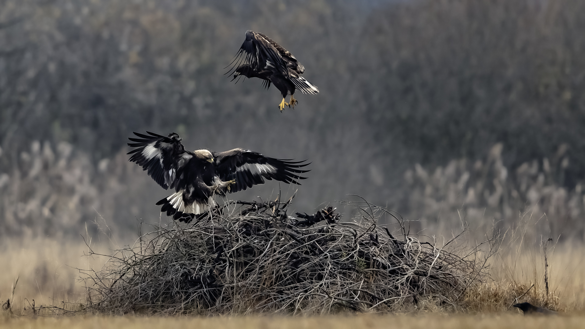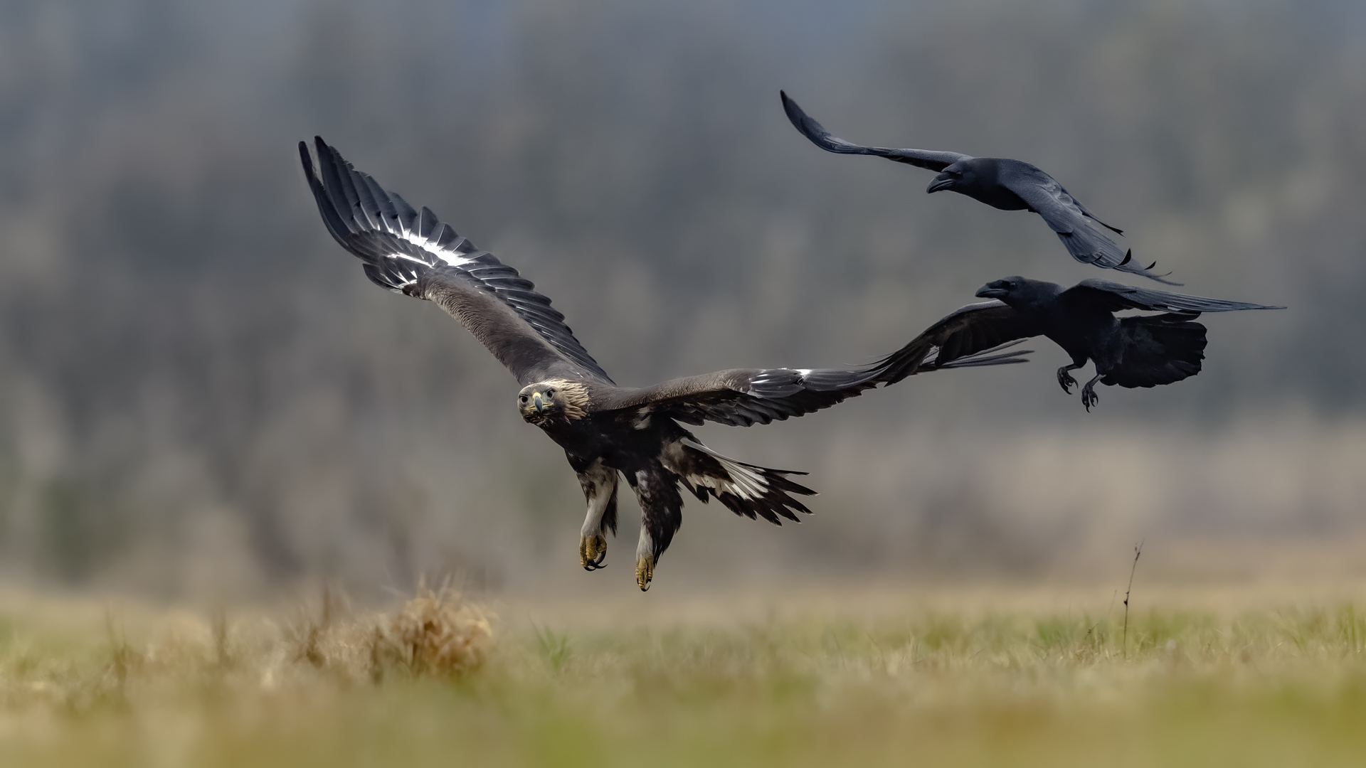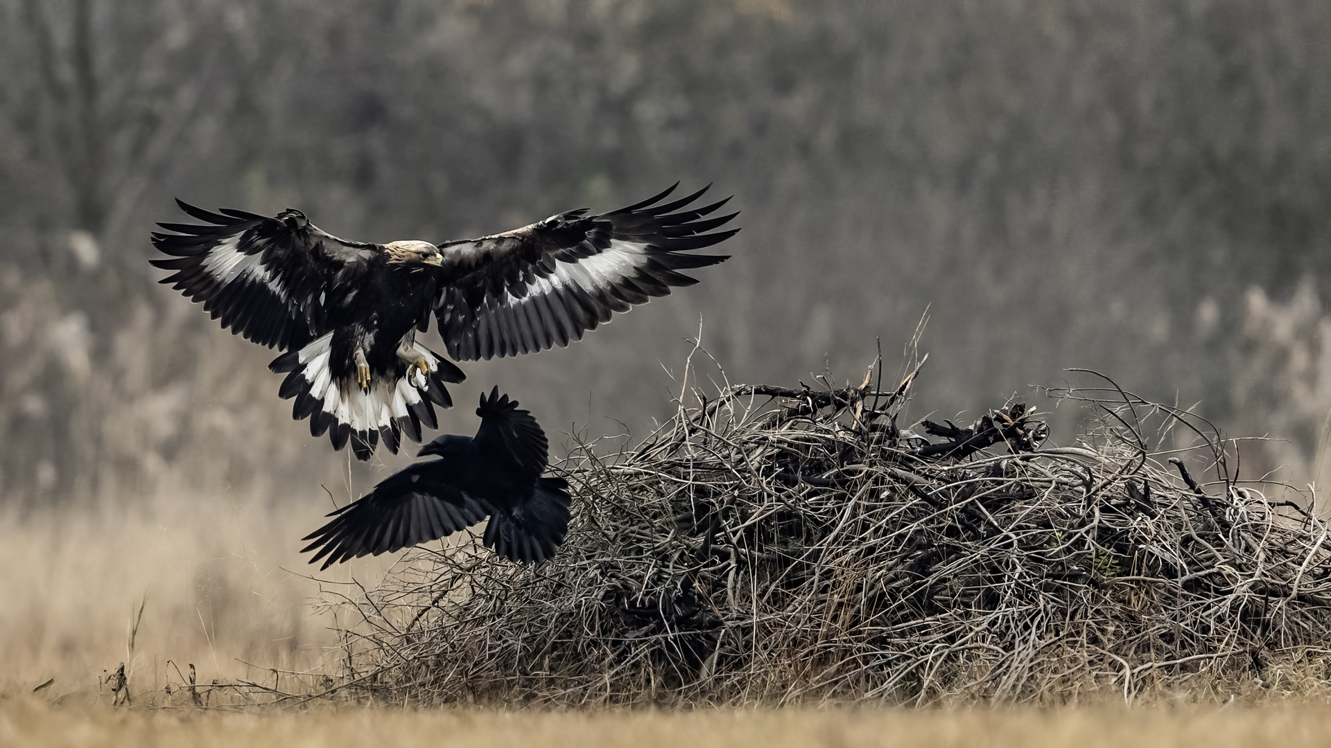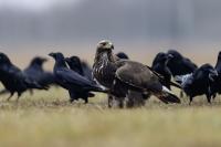 The premiere of a new version of my website opens golden eagle’s gallery, and actually changes that have occurred in this gallery. The display was founded not so long ago, just a few months ago, and was initiated by several documentary photos taken in Mongolia. And here we have such a surprise. Here in Poland I managed to take much better and more interesting shots of a golden eagle, actually two golden eagles, which appeared against the lens. Everybody there was very excited, because it is an amazing, strong, brave and rare bird. Although it probably was passing occasionally in a place where I photographed it, immediately changed the existing order that ruled in the clearing before its arrival. Adult white-tailed eagles, even though they were bigger, gave way without a struggle. And buzzards were disappearing without a trace at the sight of the golden eagle. Sometimes there was bad light, at times the distance was too big, or ravens crossed a frame, anyway, 3 stars go to the gallery as good one, because it is the golden eagle - the object of dreams probably all nature photographers.