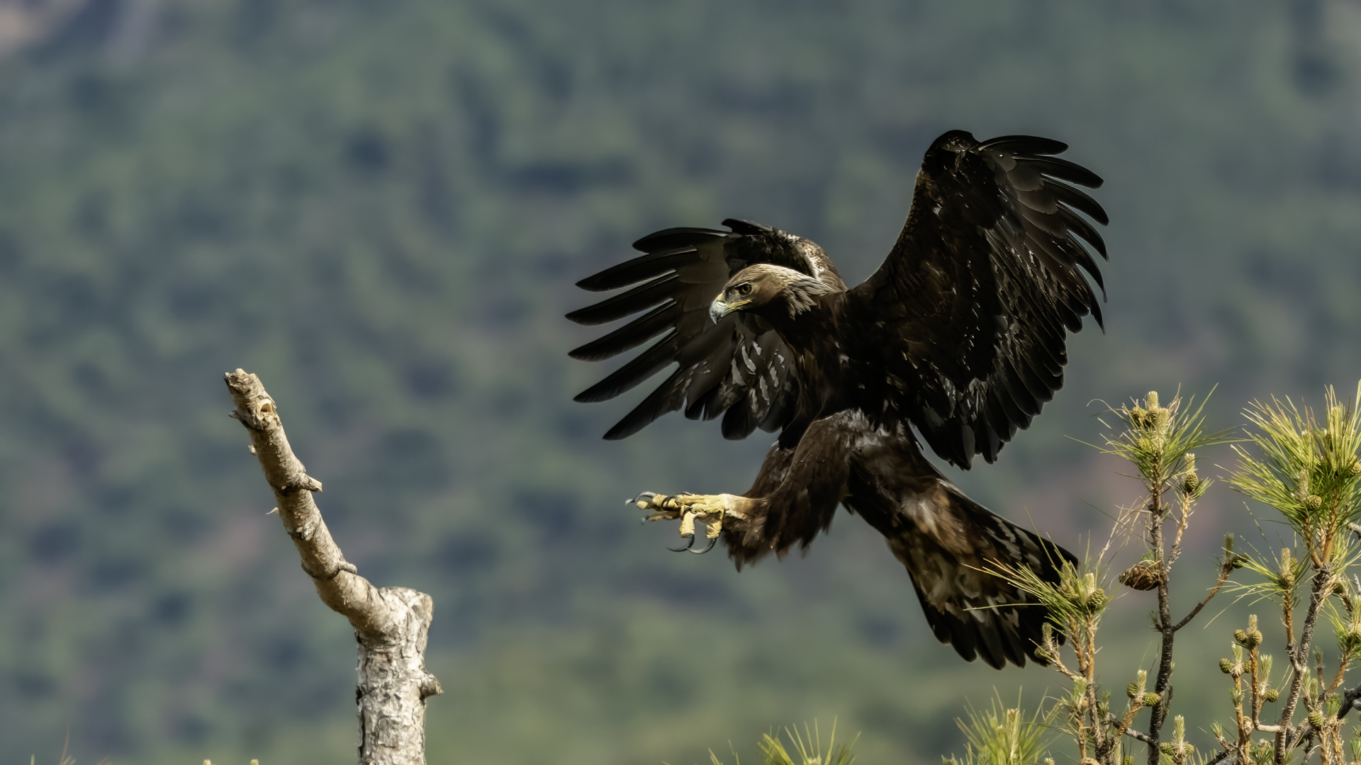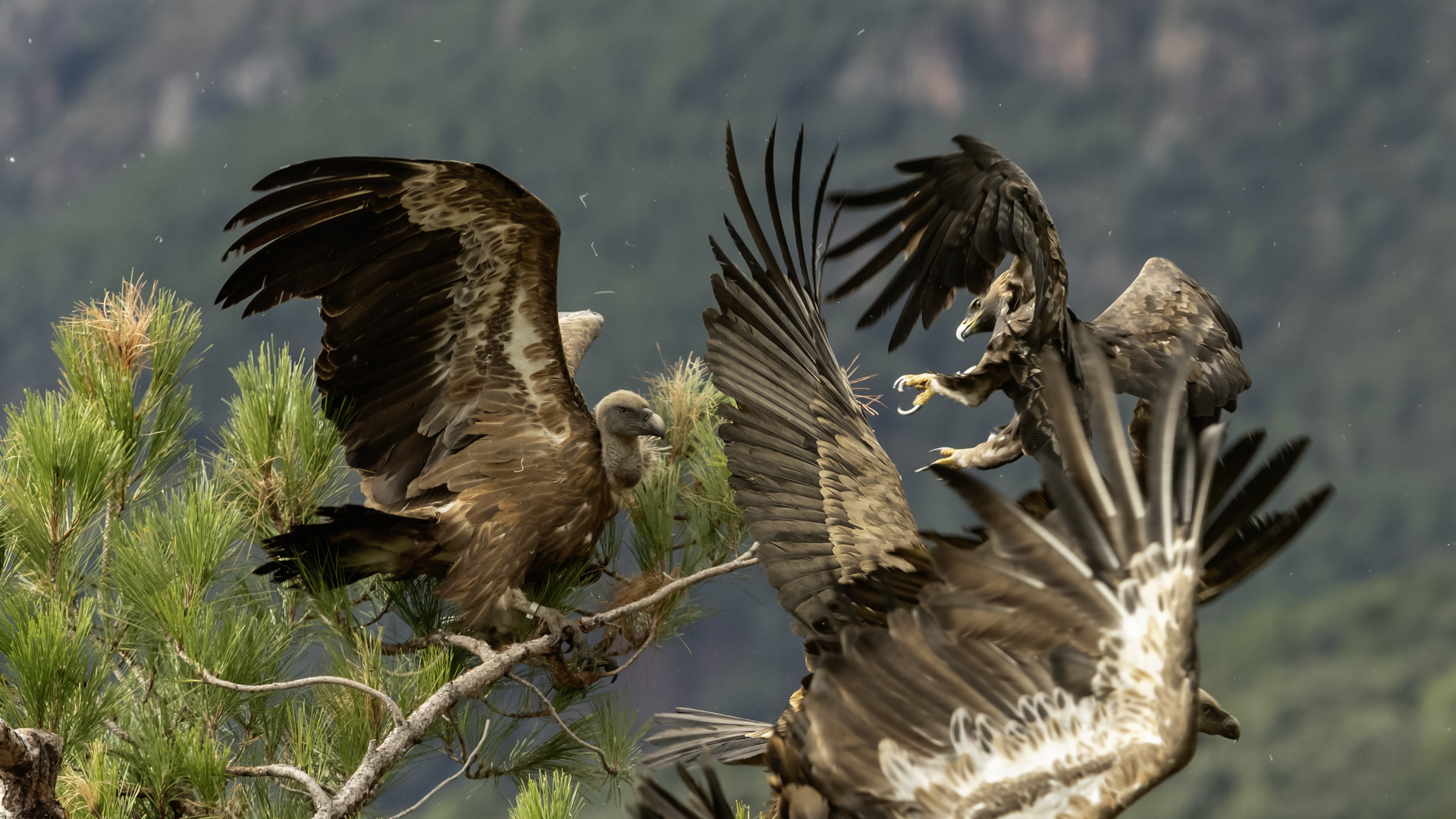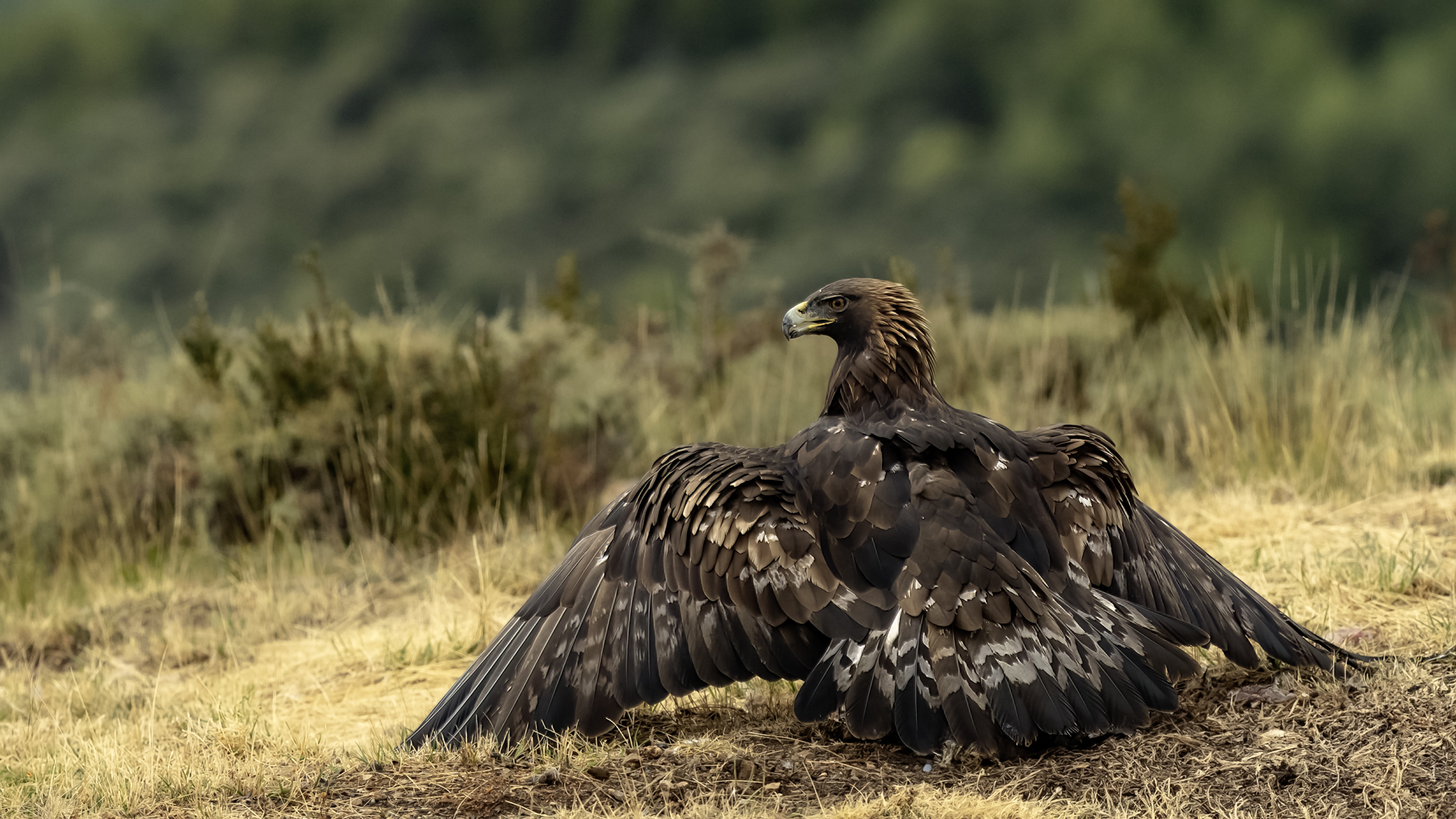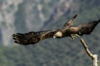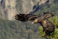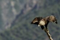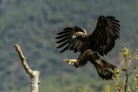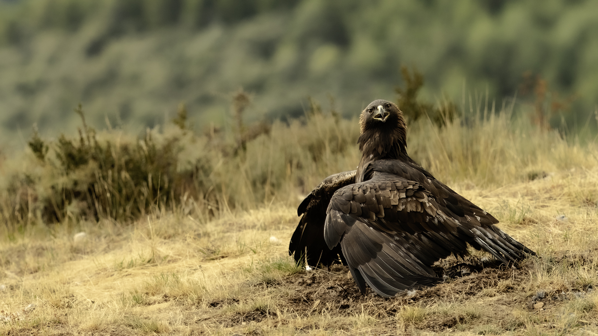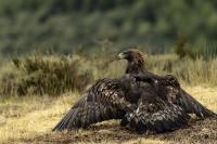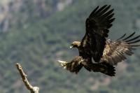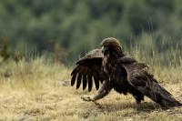 Undoubtedly the bearded vulture was a reason for going to Spain. But since it turned out that the golden eagle could be photographed there as well, perhaps the bravest bird on earth that can hunt bigger and dangerous animals such as wolves and foxes, it was difficult not to take the opportunity. This time it was not a quick and accidental shooting. The golden eagle showed how fast and courageous it could be. The bird flew down to a bait, but did it so quickly that it could be said to come down from the sky. It fed and flew as fast as it appeared. There was still a large amount of the bait and therefore it was probably watching somewhere nearby to be on guard of its meal if necessary. Only when it noticed that vultures were interested in the bait, it appeared as suddenly as before, and despite the fact that there were already many griffon vultures in the area, it chased them away and none of them dared come close to the food, waiting nearby or circling over our lookouts. Its second arrival to secure the meal ended with the recording of the eagle's voice. The bird sat by the bait, spread its wings, ruffled its feathers and made a kind of squeak that did not fit the hunter, to be honest. Anyway, you are welcomed to listen to. This time I managed to photograph adults, and the possibility of watching these birds, which took place several times, made me feel excited. The gallery has been rebuilt and again goes to the news.