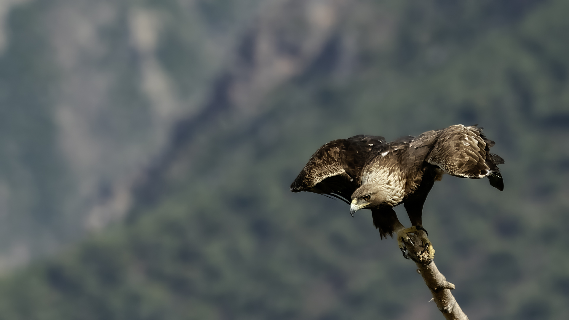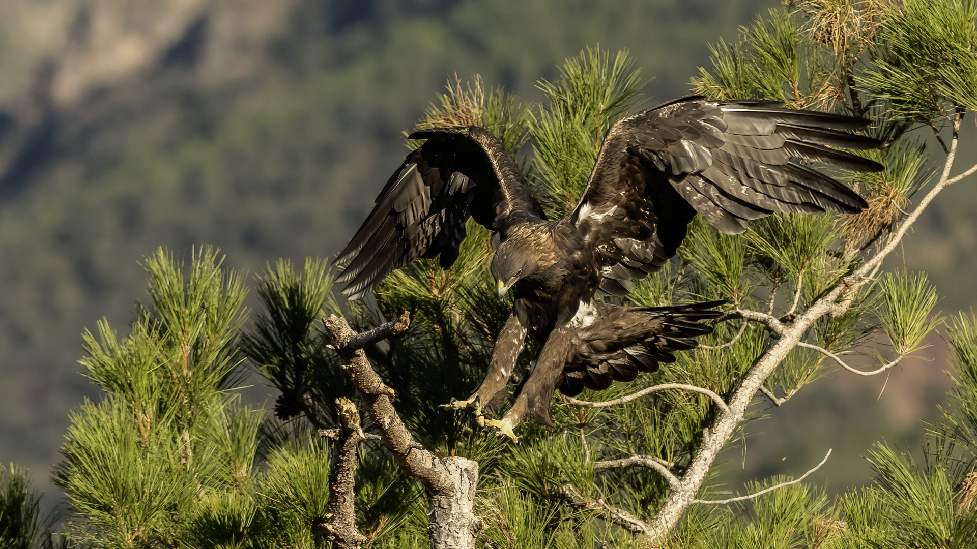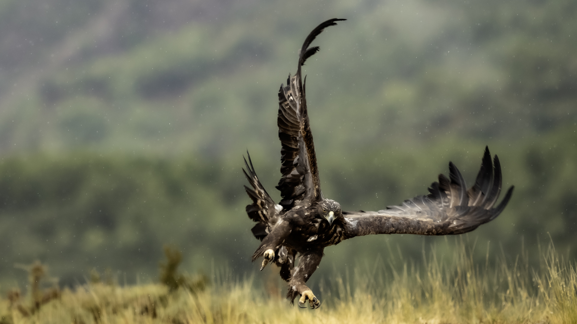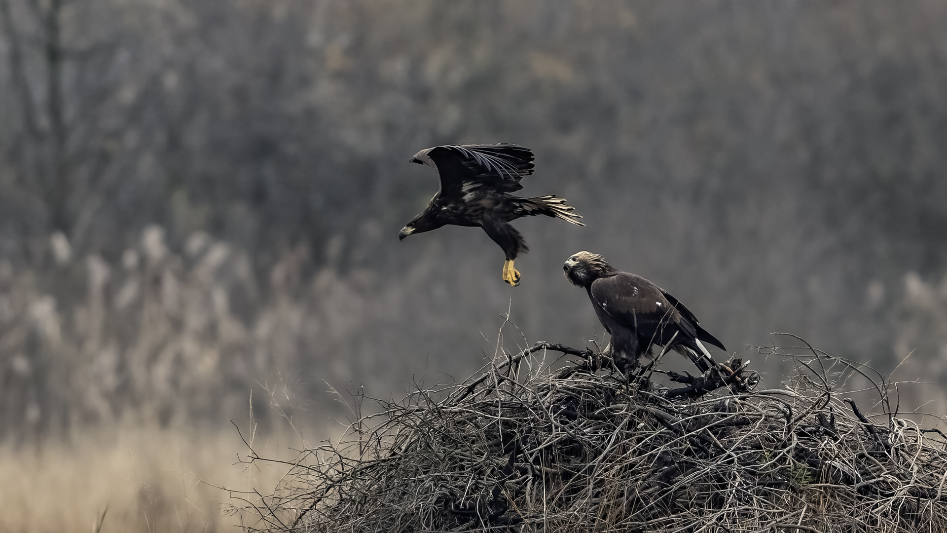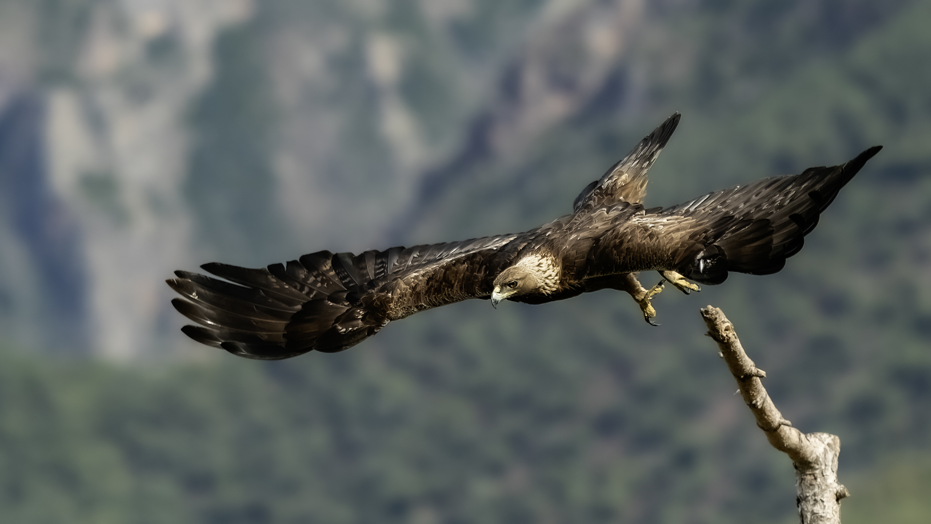 Undoubtedly the bearded vulture was a reason for going to Spain. But since it turned out that the golden eagle could be photographed there as well, perhaps the bravest bird on earth that can hunt bigger and dangerous animals such as wolves and foxes, it was difficult not to take the opportunity. This time it was not a quick and accidental shooting. The golden eagle showed how fast and courageous it could be. The bird flew down to a bait, but did it so quickly that it could be said to come down from the sky. It fed and flew as fast as it appeared. There was still a large amount of the bait and therefore it was probably watching somewhere nearby to be on guard of its meal if necessary. Only when it noticed that vultures were interested in the bait, it appeared as suddenly as before, and despite the fact that there were already many griffon vultures in the area, it chased them away and none of them dared come close to the food, waiting nearby or circling over our lookouts. Its second arrival to secure the meal ended with the recording of the eagle's voice. The bird sat by the bait, spread its wings, ruffled its feathers and made a kind of squeak that did not fit the hunter, to be honest. Anyway, you are welcomed to listen to. This time I managed to photograph adults, and the possibility of watching these birds, which took place several times, made me feel excited. The gallery has been rebuilt and again goes to the news.