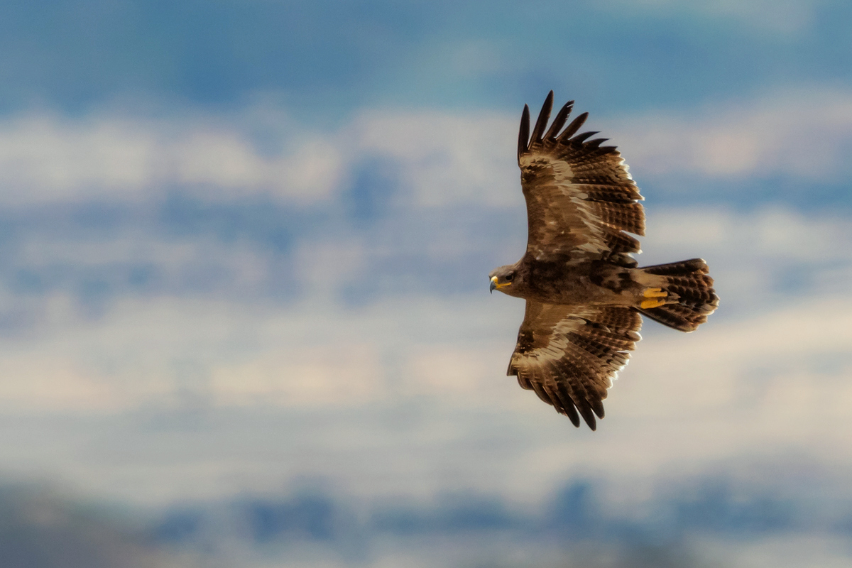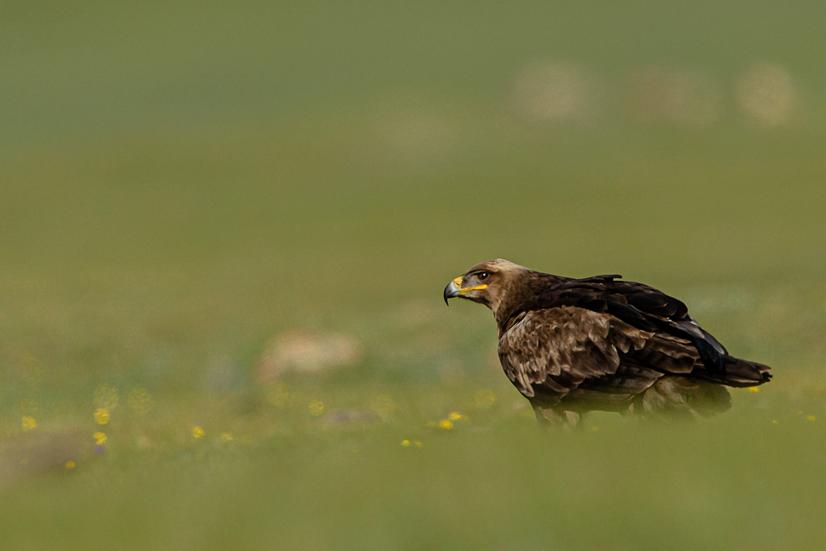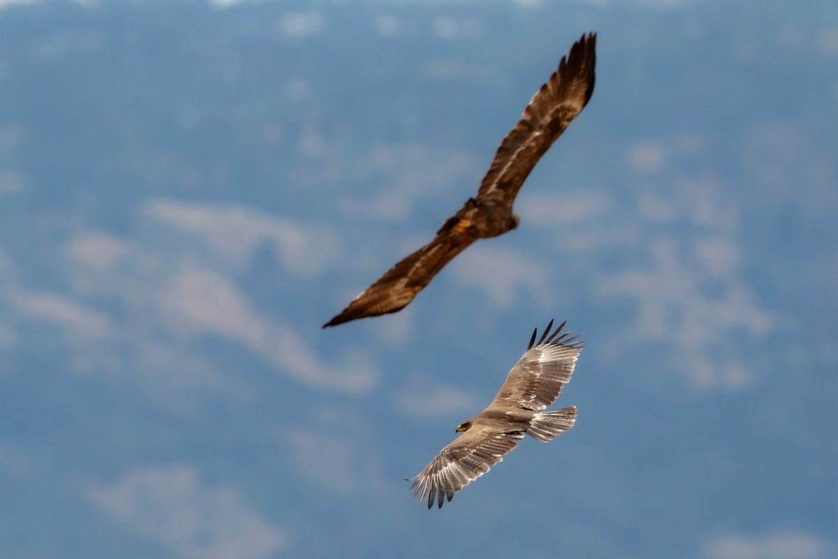 Unfortunately, steppe eagle appeared only once in front of the camera, moreover far away and high above our heads. If Kerem had not brought my attention to it I would not have photographed this bird at all. In terms of the size and silhouette it looked just the same like the imperial eagle, only the underside of the wings showed the difference. I already had a large number of photos of imperial eagle and shooting the bird from such a distance, with the sky in the background was no longer interesting to me. And what a surprise, here we have the first images of the steppe eagle. It was a day of miracles in our lookout point. Not to mention the cinereous vultures, but there also came griffon vultures, imperial eagle, long-legged buzzard, bearded vulture and steppe eagle at the end of the day. It really was a good day. Of course it was a pity that bearded vulture and steppe eagle did not land there in front of the lens, but it would probably be my too much greed towards nature...