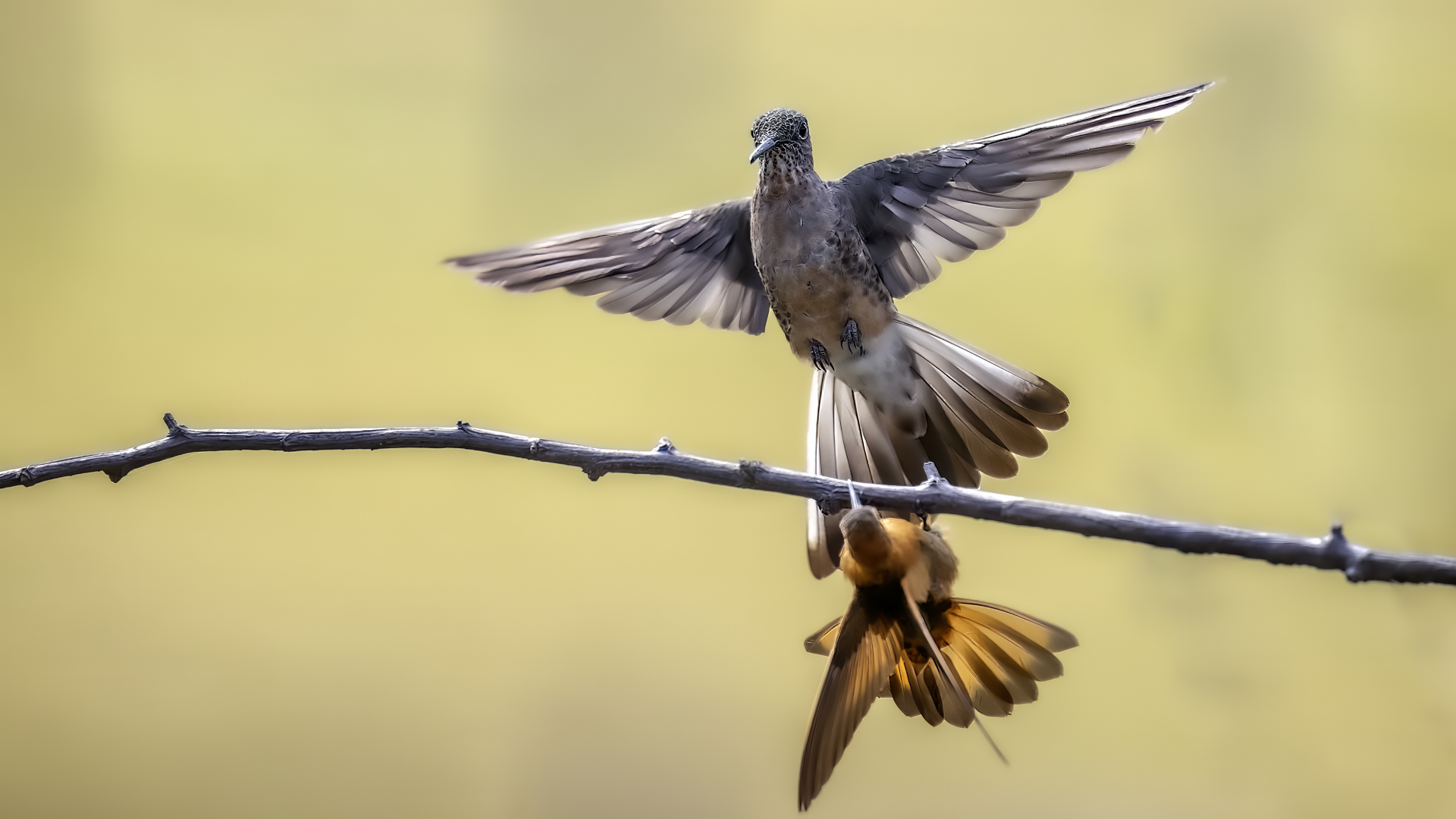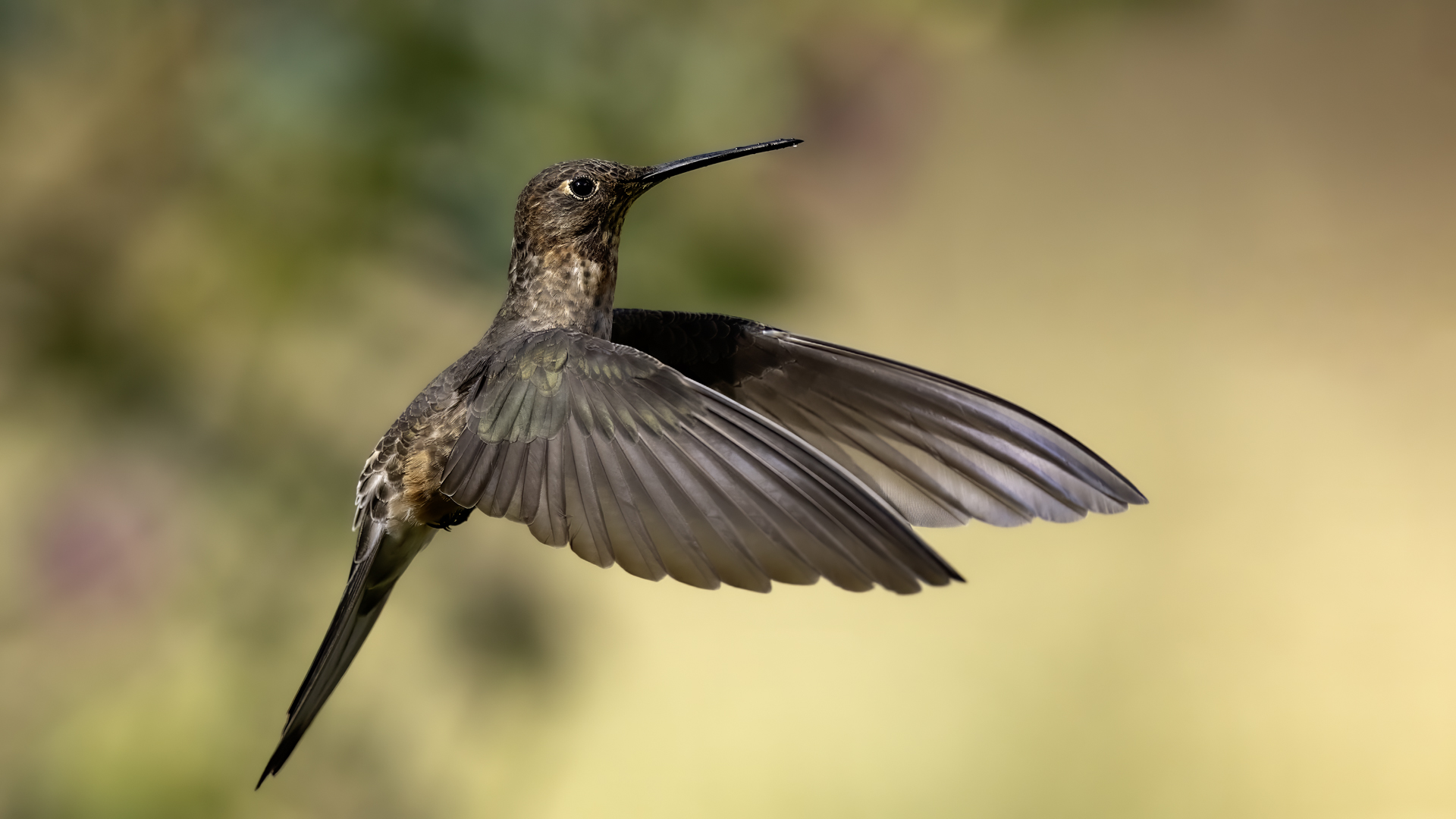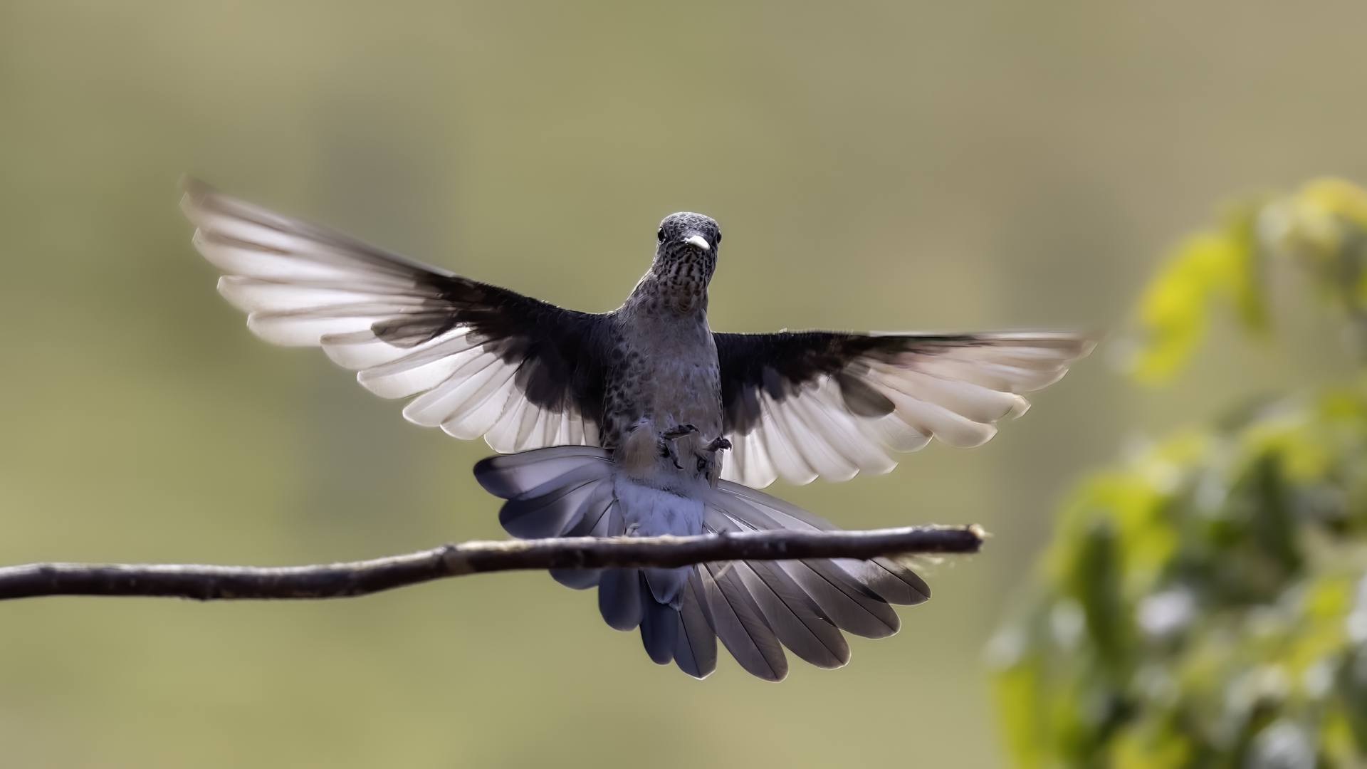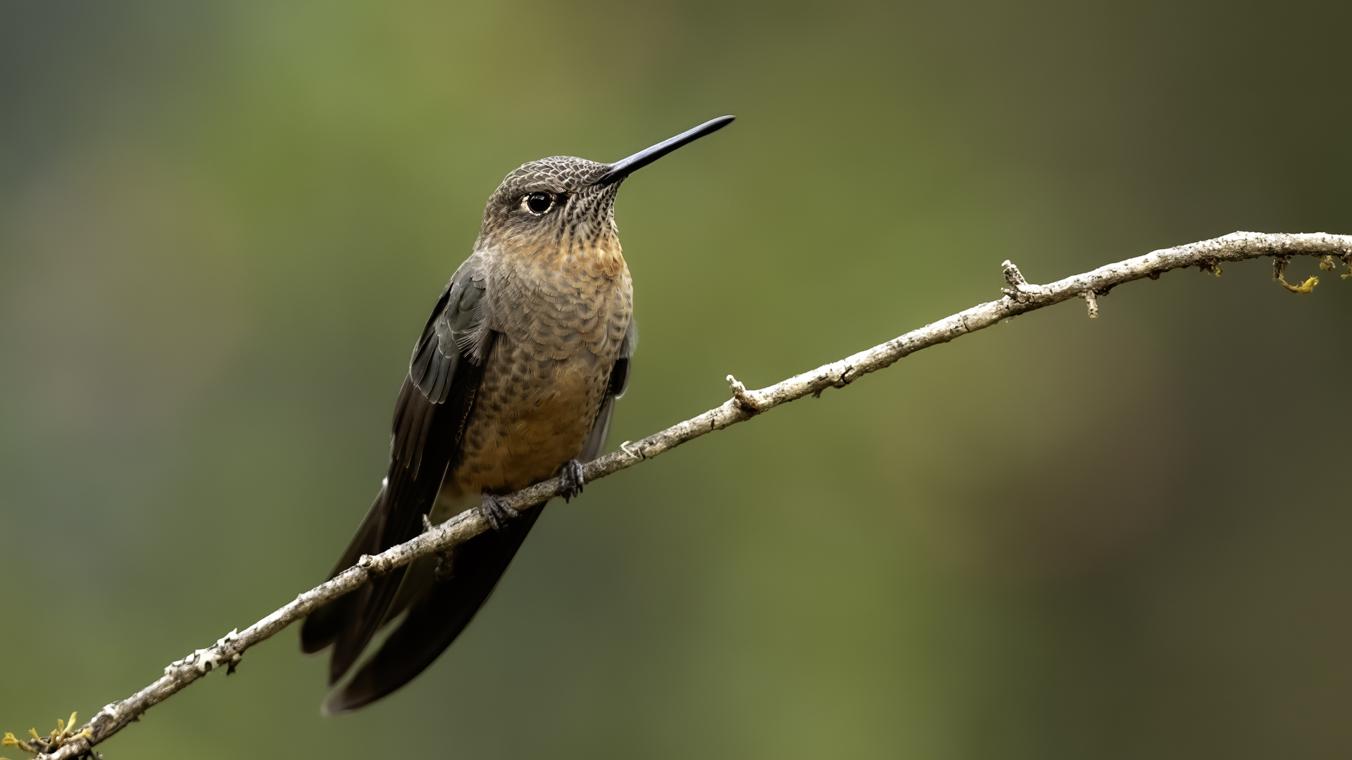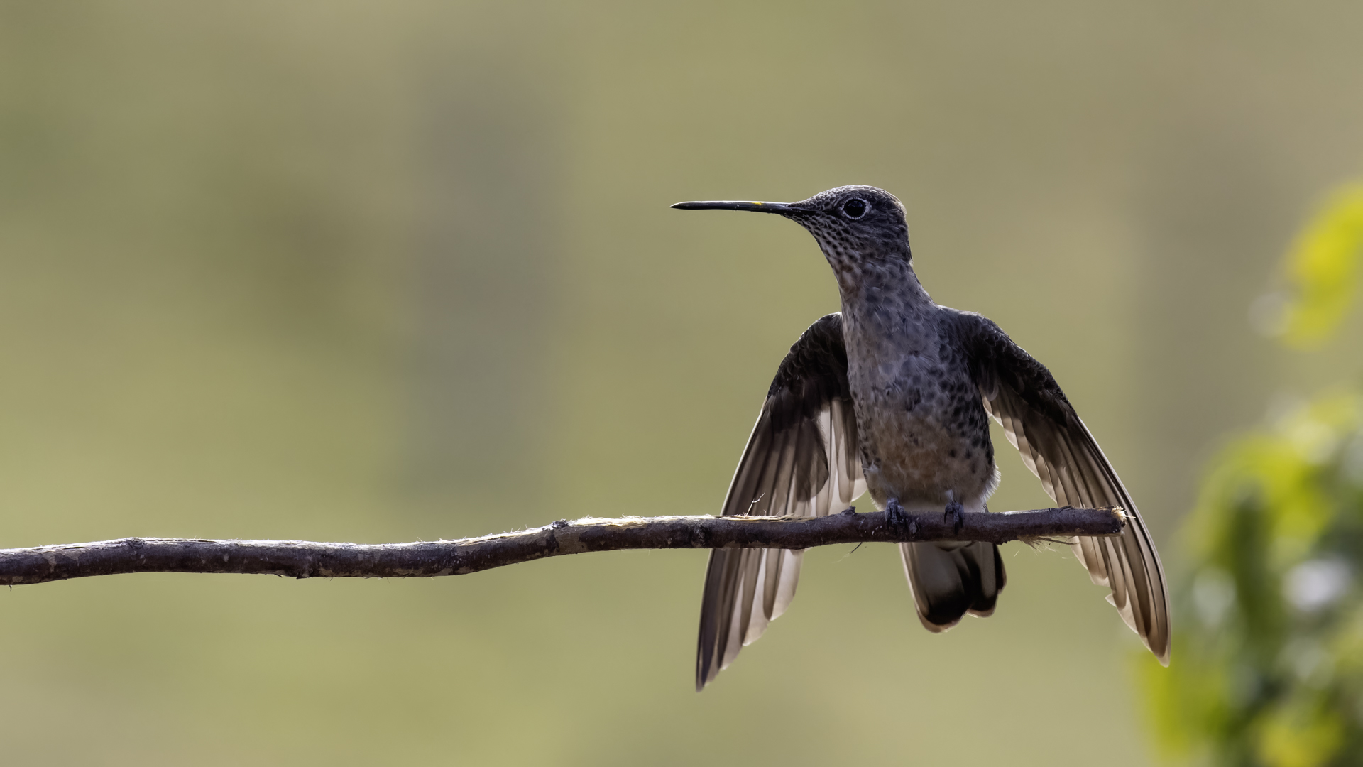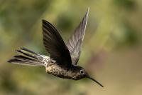 In Cuba, it was possible to photograph the smallest representative of hummingbirds and at the same time the smallest bird in the world - and in Ecuador, the largest hummingbird in the world, the Giant hummingbird. It is more than 10 times heavier than the smallest hummingbird, as its weight reaches 24 grams. It is found from Colombia, through Ecuador, Peru, Bolivia and Chile. In Ecuador, it was not common and the high probability of photographing it was not far from where we tried to photograph condors, which was at a considerable altitude. The first time we only managed to observe it, but no photos were produced. He appeared for a moment without even coming up to the drinker and disappeared. Interestingly, the smaller, more territorial hummingbird species always successfully chased him away. The second time, we came especially for him to the same spot and succeeded. With a few series in flight and a static shot on a twig, this is a good documentation of this important species for me - which is a giant hummingbird - the largest hummingbird in the world