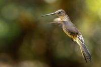 According to Miles McMullan's book 'The Guide to the Hummingbirds', there are between 330 and 360 species of hummingbirds in the world and as many as 129 species of them in Ecuador. Hummingbirds are found from Alaska in North America to the south of South America. So there are more than 30 per cent of hummingbird species there on two mighty continents, and in the small area of Ecuador in comparison. They are indeed almost everywhere in Ecuador, and at least during our entire stay, we gave them daily sightings. Roadside restaurants almost always have hummingbird drinkers. While waiting for a meal, we were never bored because there was always something going on at the feeders and photos were being taken. The contact with nature is so close that in one such place we took a break for lunch and while eating soup not far from the hummingbird feeders, one of the hummingbirds sat on my forearm and watched what I was doing. An amazing encounter, an amazing contact with nature.  In yet another, I was standing in front of a hummingbird drinker, almost motionless trying to get a dynamic picture of a hummingbird, while another wanted to check the cleanliness of my ear. I can assure you that it is an unpleasant feeling to hear the swish of its feathers an inch or two from your ear, and to be aware that it will slip its long beak into your ear. You have to refrain from the reflex that accompanies a mosquito or fly in such a situation, and so wave your hand vigorously. This could be fatal to the hummingbird. Just move your head vigorously and the bird will fly away. By holding a flower in hand in such places, you can count on the hummingbird to sit on it and check for the sometimes tasty nectar. We shot such short films and sent them to Poland "with greetings" from Ecuador . Could there be a more beautiful 'postcard' with holiday greetings? Despite the close contact with hummingbirds, photography is not easy. I am not thinking of photos of hummingbirds drinking from or sitting on plastic containers. I'm thinking of dynamic photos in flight of these amazing sky acrobats. The photography itself is worthwhile if it is preceded by a brief observation of the species there. It often happens that one of them is a dominant species, very territorial and behaves in a characteristic, predictable way. These species are always easier to photograph. They sometimes fly up to a few centimetres from the drinker, hover in the air for a second, two or three, make sure it is safe, then start their sweet meal. This moment is a situation in which dynamic photographs can be created. Likewise with the flowers situated near the existing drinkers. The birds hover near them and sip the sweet water artificially left there. These are the predictable species. There are, however, some that suddenly fly out of the bushes straight to the drinkers, feed and as quickly as they appeared, they disappear. With these, humans hardly stand a chance. Just like the aerial quarrels, the hummingbirds skirmish. They are so fast, the movement of two individuals so synchronous, that one can only stop to observe. Photographing such a quarrel is pure coincidence. In the end, 41 species of hummingbirds were photographed during the entire trip to Ecuador. All of them have the present text posted, and only the Giant hummingbird and the Ecuadorian Hillstar, have the text expanded with individual information. I have marked this as a double T-"TT".