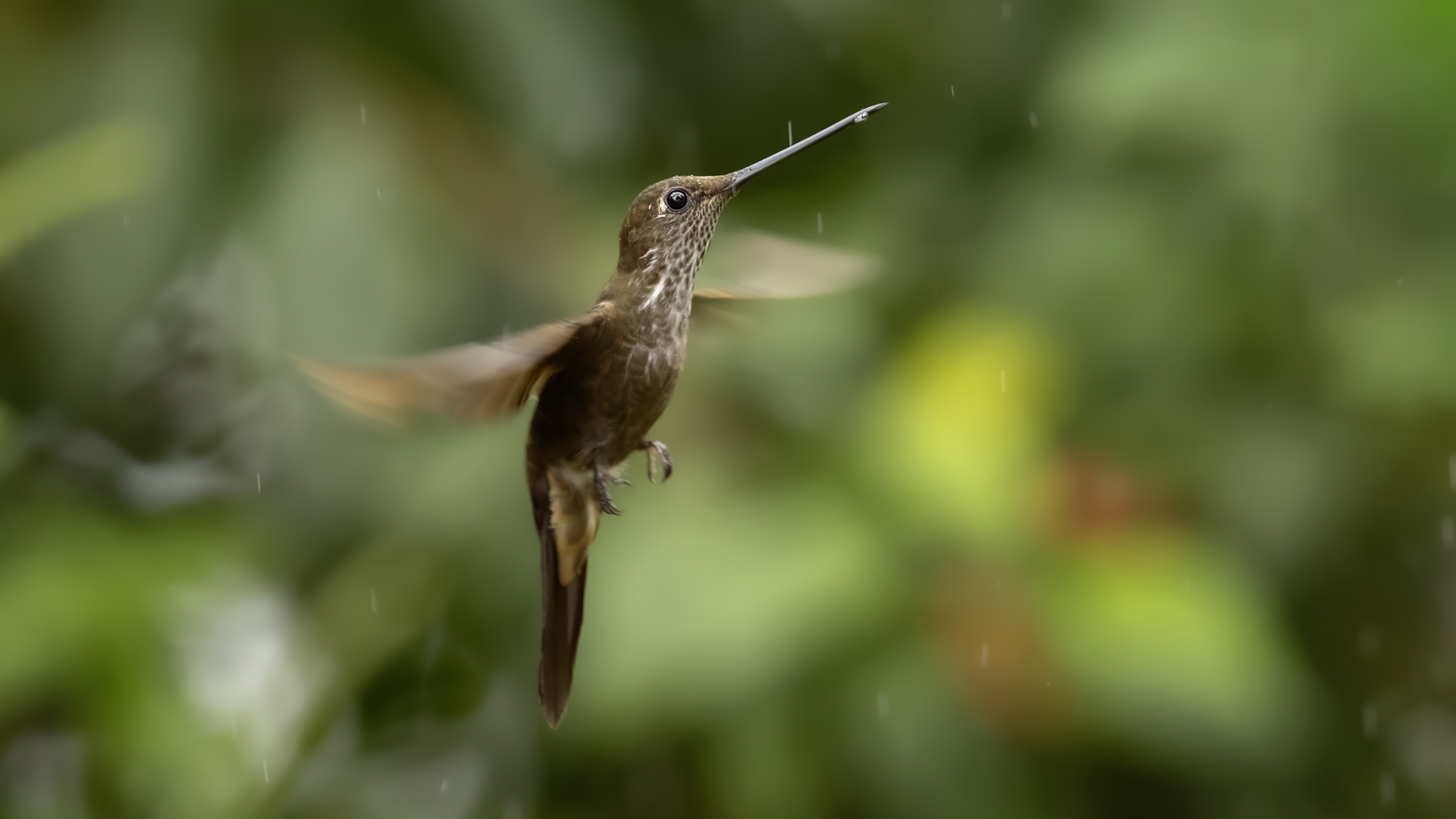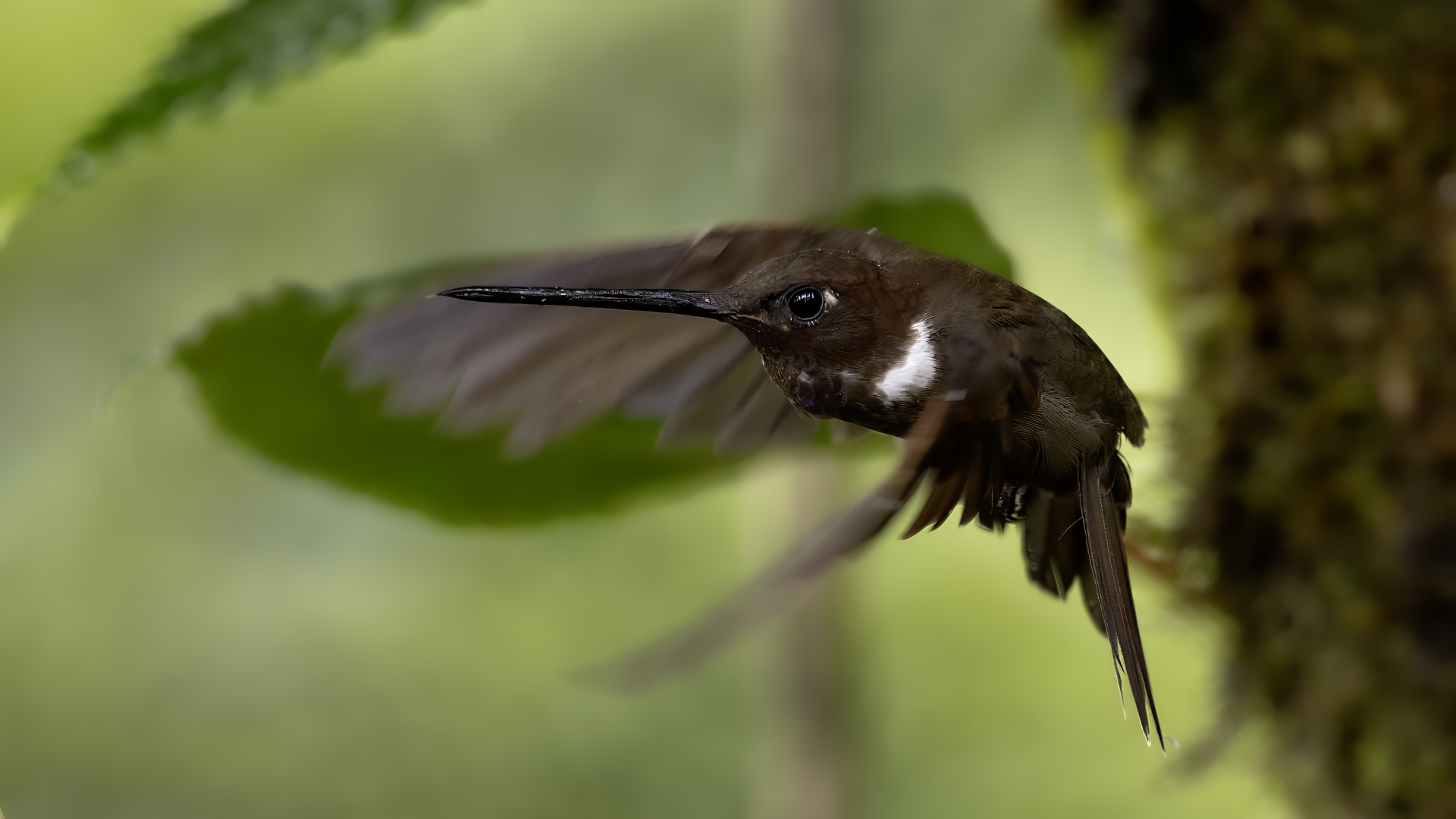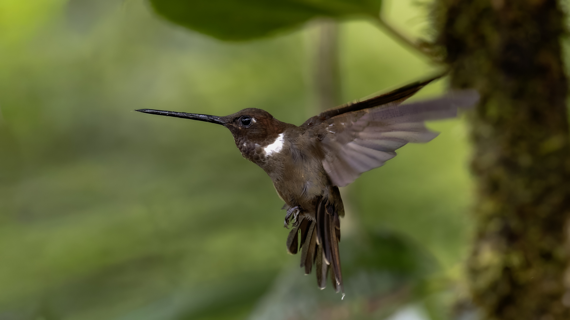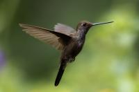 According to Miles McMullan's book 'The Guide to the Hummingbirds', there are between 330 and 360 species of hummingbirds in the world and as many as 129 species of them in Ecuador. Hummingbirds are found from Alaska in North America to the south of South America. So there are more than 30 per cent of hummingbird species there on two mighty continents, and in the small area of Ecuador in comparison. They are indeed almost everywhere in Ecuador, and at least during our entire stay, we gave them daily sightings. Roadside restaurants almost always have hummingbird drinkers. While waiting for a meal, we were never bored because there was always something going on at the feeders and photos were being taken. The contact with nature is so close that in one such place we took a break for lunch and while eating soup not far from the hummingbird feeders, one of the hummingbirds sat on my forearm and watched what I was doing. An amazing encounter, an amazing contact with nature.  In yet another, I was standing in front of a hummingbird drinker, almost motionless trying to get a dynamic picture of a hummingbird, while another wanted to check the cleanliness of my ear. I can assure you that it is an unpleasant feeling to hear the swish of its feathers an inch or two from your ear, and to be aware that it will slip its long beak into your ear. You have to refrain from the reflex that accompanies a mosquito or fly in such a situation, and so wave your hand vigorously. This could be fatal to the hummingbird. Just move your head vigorously and the bird will fly away. By holding a flower in hand in such places, you can count on the hummingbird to sit on it and check for the sometimes tasty nectar. We shot such short films and sent them to Poland "with greetings" from Ecuador . Could there be a more beautiful 'postcard' with holiday greetings? Despite the close contact with hummingbirds, photography is not easy. I am not thinking of photos of hummingbirds drinking from or sitting on plastic containers. I'm thinking of dynamic photos in flight of these amazing sky acrobats. The photography itself is worthwhile if it is preceded by a brief observation of the species there. It often happens that one of them is a dominant species, very territorial and behaves in a characteristic, predictable way. These species are always easier to photograph. They sometimes fly up to a few centimetres from the drinker, hover in the air for a second, two or three, make sure it is safe, then start their sweet meal. This moment is a situation in which dynamic photographs can be created. Likewise with the flowers situated near the existing drinkers. The birds hover near them and sip the sweet water artificially left there. These are the predictable species. There are, however, some that suddenly fly out of the bushes straight to the drinkers, feed and as quickly as they appeared, they disappear. With these, humans hardly stand a chance. Just like the aerial quarrels, the hummingbirds skirmish. They are so fast, the movement of two individuals so synchronous, that one can only stop to observe. Photographing such a quarrel is pure coincidence. In the end, 41 species of hummingbirds were photographed during the entire trip to Ecuador. All of them have the present text posted, and only the Giant hummingbird and the Ecuadorian Hillstar, have the text expanded with individual information. I have marked this as a double T-"TT".