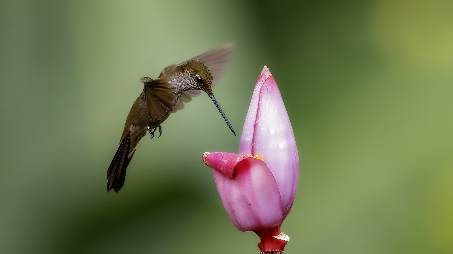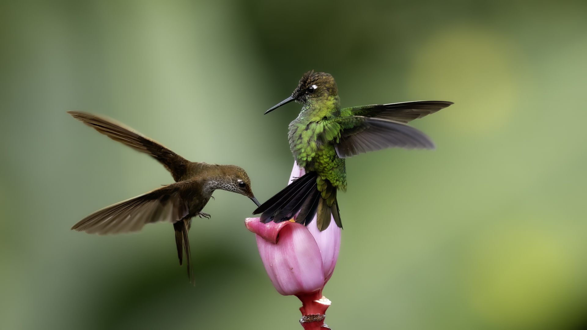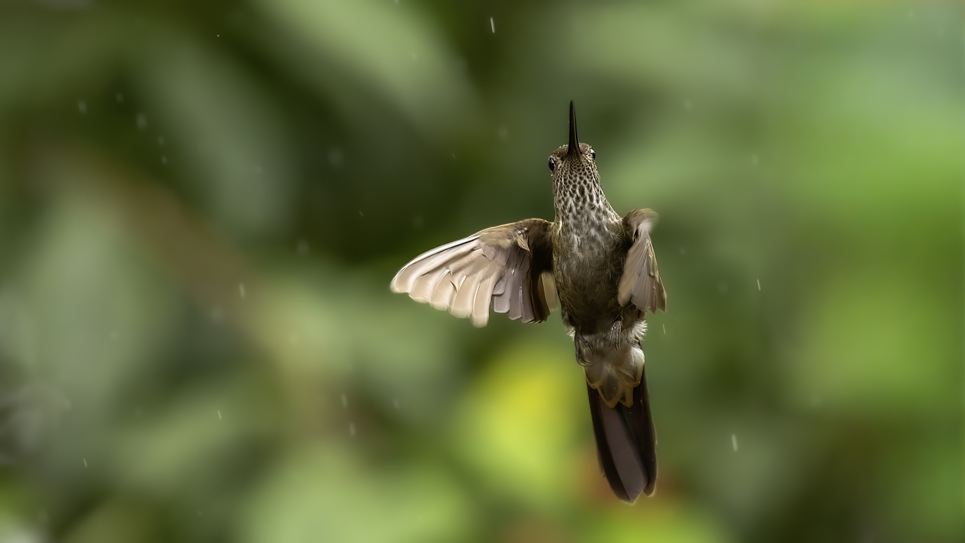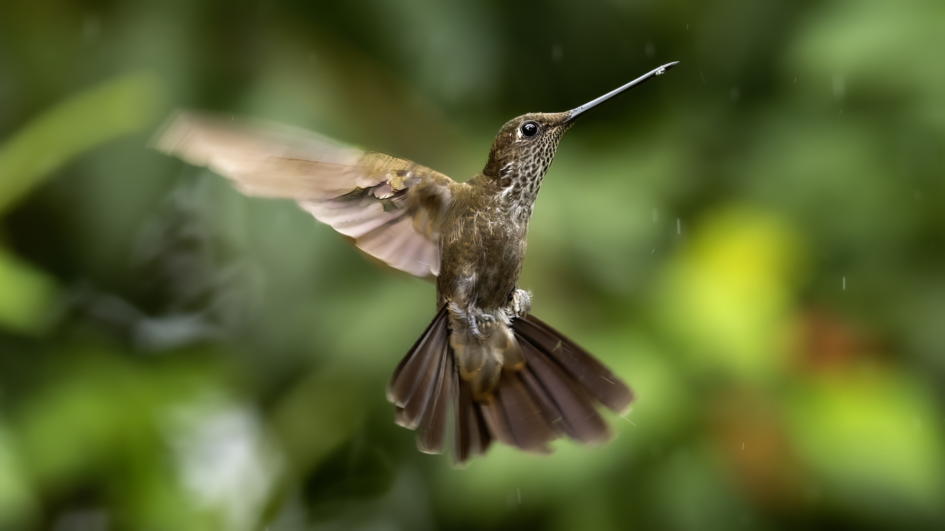 According to Miles McMullan's book 'The Guide to the Hummingbirds', there are between 330 and 360 species of hummingbirds in the world and as many as 129 species of them in Ecuador. Hummingbirds are found from Alaska in North America to the south of South America. So there are more than 30 per cent of hummingbird species there on two mighty continents, and in the small area of Ecuador in comparison. They are indeed almost everywhere in Ecuador, and at least during our entire stay, we gave them daily sightings. Roadside restaurants almost always have hummingbird drinkers. While waiting for a meal, we were never bored because there was always something going on at the feeders and photos were being taken. The contact with nature is so close that in one such place we took a break for lunch and while eating soup not far from the hummingbird feeders, one of the hummingbirds sat on my forearm and watched what I was doing. An amazing encounter, an amazing contact with nature.  In yet another, I was standing in front of a hummingbird drinker, almost motionless trying to get a dynamic picture of a hummingbird, while another wanted to check the cleanliness of my ear. I can assure you that it is an unpleasant feeling to hear the swish of its feathers an inch or two from your ear, and to be aware that it will slip its long beak into your ear. You have to refrain from the reflex that accompanies a mosquito or fly in such a situation, and so wave your hand vigorously. This could be fatal to the hummingbird. Just move your head vigorously and the bird will fly away. By holding a flower in hand in such places, you can count on the hummingbird to sit on it and check for the sometimes tasty nectar. We shot such short films and sent them to Poland "with greetings" from Ecuador . Could there be a more beautiful 'postcard' with holiday greetings? Despite the close contact with hummingbirds, photography is not easy. I am not thinking of photos of hummingbirds drinking from or sitting on plastic containers. I'm thinking of dynamic photos in flight of these amazing sky acrobats. The photography itself is worthwhile if it is preceded by a brief observation of the species there. It often happens that one of them is a dominant species, very territorial and behaves in a characteristic, predictable way. These species are always easier to photograph. They sometimes fly up to a few centimetres from the drinker, hover in the air for a second, two or three, make sure it is safe, then start their sweet meal. This moment is a situation in which dynamic photographs can be created. Likewise with the flowers situated near the existing drinkers. The birds hover near them and sip the sweet water artificially left there. These are the predictable species. There are, however, some that suddenly fly out of the bushes straight to the drinkers, feed and as quickly as they appeared, they disappear. With these, humans hardly stand a chance. Just like the aerial quarrels, the hummingbirds skirmish. They are so fast, the movement of two individuals so synchronous, that one can only stop to observe. Photographing such a quarrel is pure coincidence. In the end, 41 species of hummingbirds were photographed during the entire trip to Ecuador. All of them have the present text posted, and only the Giant hummingbird and the Ecuadorian Hillstar, have the text expanded with individual information. I have marked this as a double T-"TT".
