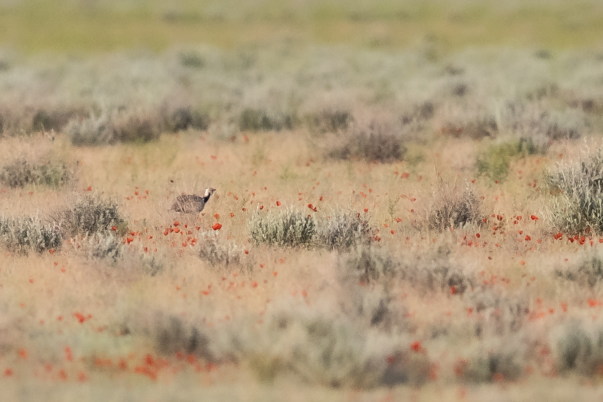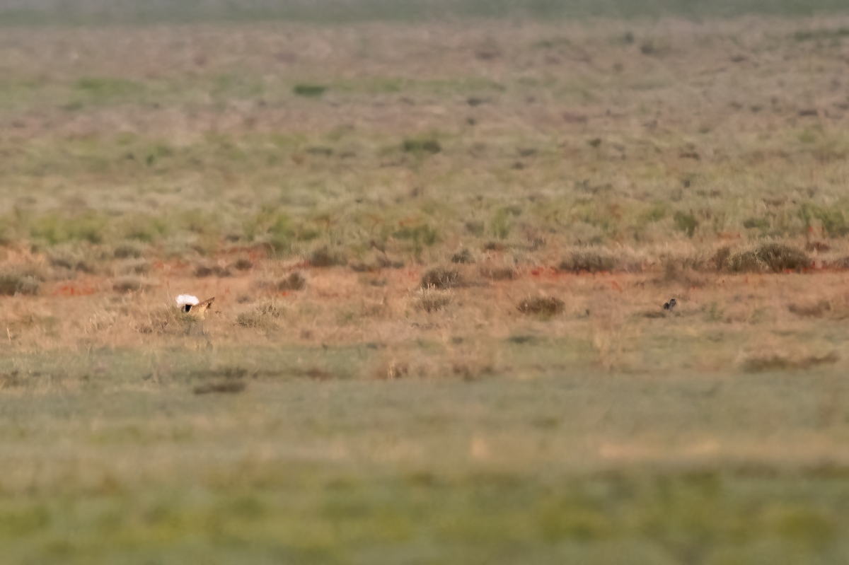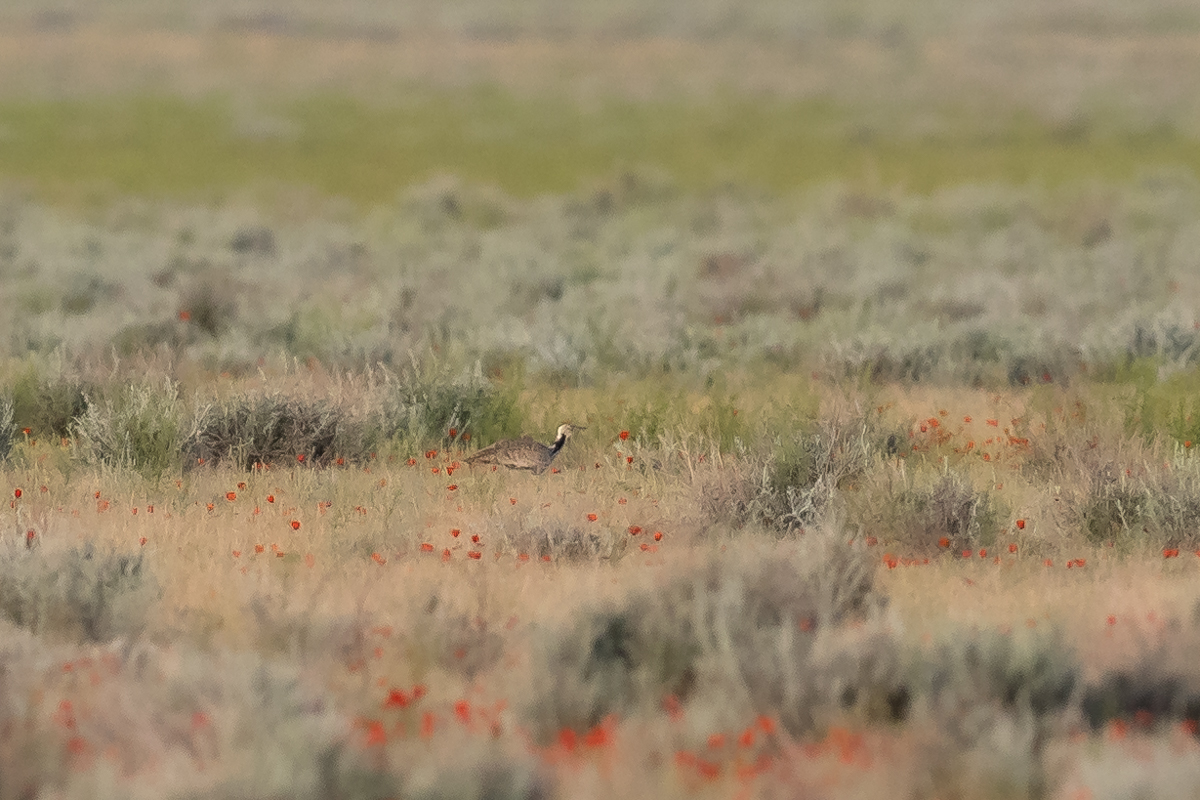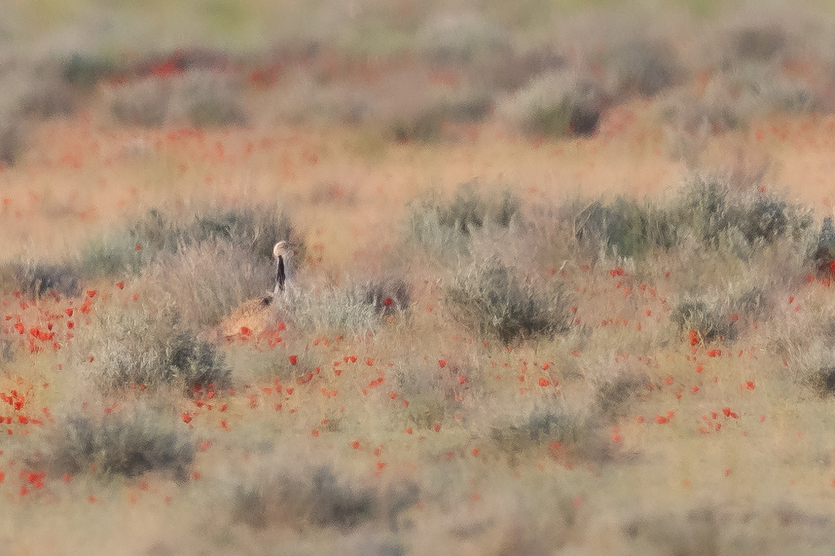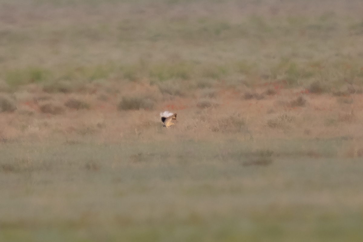 This is undoubtedly the worst gallery of any species among nearly 2,000 bird galleries on my website. You have to trust the author a bit to believe that it is indeed this bird in the photos, rather than another – a bit of irony about my photographic failure to capture the Arabian bustard. These are not really photos, but more like painted pictures. Usually, I don’t create galleries for species photographed in less than documentary quality during my trips, but I made an exception for the Macqueen's Bustard. Why? Because this species was one of the reasons I went to Kazakhstan. I really wanted to see the Macqueen's Bustard and, of course, take pictures. This species is part of Poland’s fauna and belongs to the bustard family, which I have favored for years. At sunrise, I saw the Macqueen's Bustard courtship dance through the spotting scope. Amazing, beautiful! It’s unforgettable. Then I tried to get closer to the birds, but unfortunately without success. The birds were shy and considered a few hundred meters a safe distance. To illustrate how far the birds were, I included one photo (currently the last in the gallery) without cropping, taken with a 600 mm lens, a 2x converter, and a full-frame camera, giving a focal length of 1200 mm! The birds moved among small shrubs like in a labyrinth, appearing and disappearing constantly. It’s unlikely I will have another chance to see these birds, so I created the gallery. In the past, it was similar with the galleries of the Eurasian Thick-knee, Greater Spotted Eagle, Pallas's gull, and others. Who knows? Maybe the content of this gallery will unexpectedly improve, but after what I saw in Kazakhstan – how shy and elusive these birds are and considering their range – it probably won’t happen soon.