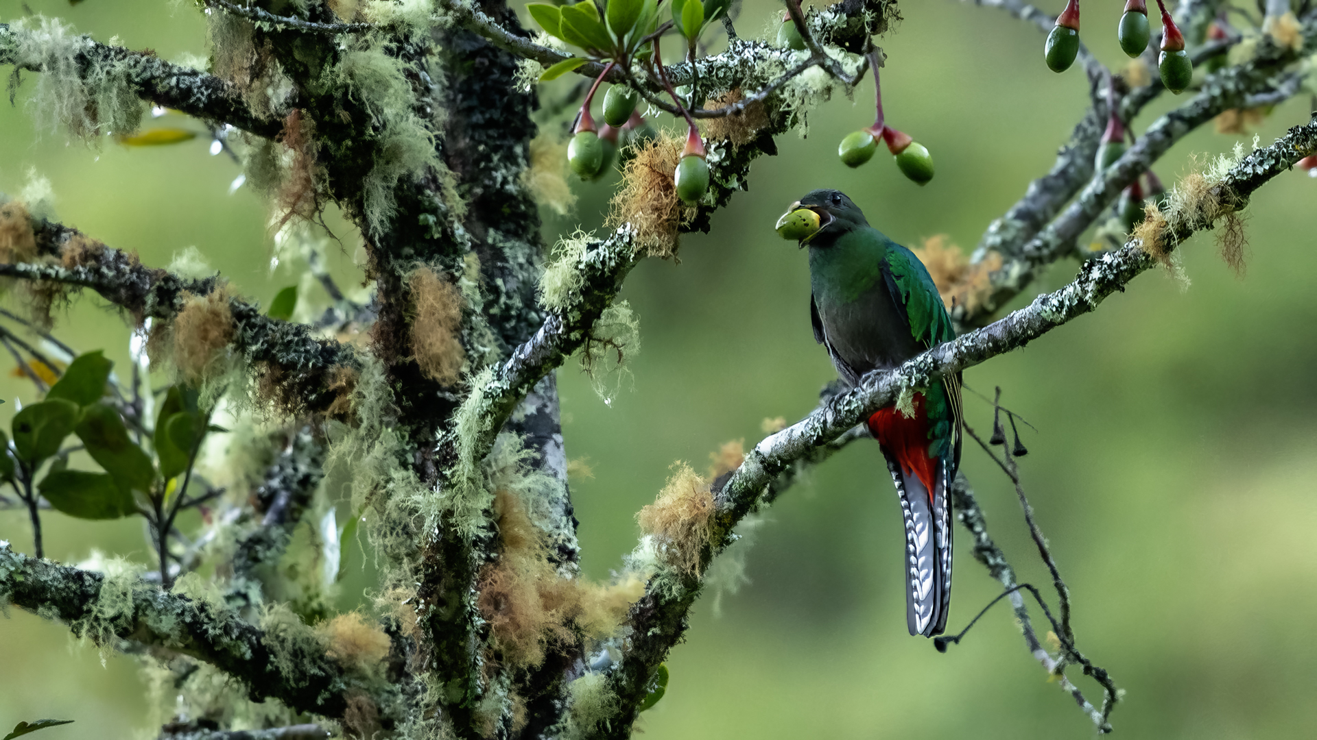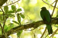It took me a lot of time to decide which bird would be the best for introductory text to  attach to when describing my trip to Costa Rica. Should it be a clay-colored  thrush, which is the national bird of Costa Rica, or one of toucans I managed to photograph there, or may be  an amazing Montezuma  oropendola? The final choice was the resplendent quetzal which is the national bird of Guatemala. An amazing bird of paradise, which is not easy to photograph, even in the place of its occurrence. But before I describe the bird itself, there are a few words about the expedition. Costa Rica is an amazing place, where from the beginning the great number of birds and the ease of shooting is stunning and delightful. For sure it is due to natural environmental conditions but also the attitude of Costa Rica residents towards the birds have a considerable impact on it. It is absolutely forbidden to hunt for birds there and all these by-hotels, by-restaurants and roadside places arranged for "feeding" birds attract visitors. I wrote “feeding” in quotation marks, because the birds can not suffer from the lack of food in the rainforest. For many birds it is tempting to enjoy an easy meal of bananas or rice, and the positive experience they have associating with people makes the birds appear sometimes really close. Of course it turns differently with various species but there are really a lot of them. Within two weeks I managed to take photos of 200 bird species, of course not always with a great success. It was not easy and required a significant effort and determination, but ultimately possible there on Costa Rica. I could encounter some representatives of the species a few times, and I managed to take so many pictures that it was difficult to select the right photos to a gallery without making it boring and overloaded. But on the other hand, sometimes a bird sat down only once and I took one or two photos that form, as yet, modest gallery of the species on my website. But who knows when the opportunity arises to make "the last minute” changes, just like on the occasion of this trip I was able to make changes to the roadside hawk, the rufous-collared sparrow or the southern lapwing galleries. This time I have listed new galleries in the order from the most interesting, multi-photo galleries to those that are of documentary value and evidentiary importance. Starting from the number 88 in the list evidentiary (in my opinion) galleries begin. The ones more interesting are highlighted in bold font. Despite favorable conditions for photographing birds, the number of new species on my site would not be as impressive without my fellow-travelers, their initiative and support. So I have to express my thanks for the support, organization and atmosphere that accompanied our expedition to Tadeusz and Piotr. Natural environment in this style  and such a good company, at least for me, it is the best of nature photography. My warmest regards and thanks go to you both and I hope that three of our cameras can be heard working simultaneously more times in the future. Well, let us back to Costa Rica and bird's stories. I was also able to record voices of some birds. This time I decided to mark it in the list of species with the letter G in brackets - (G). So those who want to hear the voice of a toucan, Montezuma oropendola or rufous-collared sparrow I invite to listen to my recordings. Due to such a large number of new galleries and scarcity of time only to few selected species the description or points of interest will be added. Fortunately, all new species were identified in Costa Rica with help of local guides, which significantly reduced time of work on building the gallery and eliminated the risk of errors in the identification of species. A novelty in my galleries are photos taken with flash. Well, I think it is a misunderstanding of nature photography, but when photographing birds at sunrise at the bottom of the rainforest it is impossible to take clear images, even a documentary one. All the more, even at noon there was not enough light to take satisfactory images. So capturing birds residing in the rain forest undergrowth required a change of my approach to nature photography. Fortunately, there are not many of this kind photos. You can find more descriptions of the specific species in information accompanying the galleries, and now about the amazing resplendent quetzal as it is...