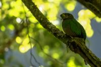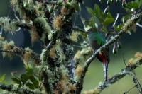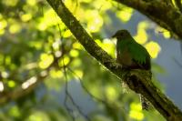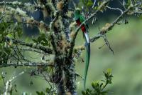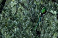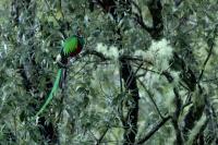 The beauty of resplendent quetzals has always fascinated people. Their feathers ornamented the garments of high rank leaders of the Aztecs and Maya. Already at that time these birds were strictly protected as for killing such a bird the perpetrator was punished with death penalty. The fascination with quetzals has attracted many tourists from all over the world to Costa Rica. In the vicinity of the hotel in which we stayed quetzals live in their natural habitat. They live in rain forests at the height of 1200 to 3000m. They eat insects and fruit, especially avocado. As a response to the news, which was brought to the restaurant, that a quetzal had flown over to a nearby tree, the tourists left their meals and ran out of the building to meet with the quetzal. Unfortunately the bird was sitting quite far on a high tree, and its silhouette was hidden by branches of the tree it was sitting on. In fact it could be seen only with the use of a telescope. To increase the likelihood of encountering a quetzal, and the hotel turnover, every morning at 5 am they organized trips to the place where the birds sought food. About 5 kilometers from the hotel a mountain slope was crossed by a stony way. Below the way there were avocado trees, where the birds fed. After the meal they flew over the road to sit on an isolated tree. At the distance of 30-40 meters from the tree, some time before the sunrise, a group of people gathered, awaiting with excitement their encounter with a quetzal. Unfortunately on the first day only a female quetzal appeared. It was quite dark, she sat on a wire against the sky – I took my first photo of a quetzal, which I’d better not show. Fortunately a little bit later, at a distance of 100 meters, a second female sat down. The group of people peacefully approached the bird sitting on a tree branch and some better pictures were taken. Better, but not good. Sadly we were lacking light, but from this third encounter with a quetzal a few photos were suitable to be uploaded in my gallery. That’s how the morning expectancy ended. Fortunately during the next morning photographing attempt two male quetzals appeared. Finally I was able to take the first photos that show the beauty of this bird. Sadly the second male was sitting much farther, and I could not attach a converter due to lighting conditions. I lacked literally several dozen minutes to be able to take real good quality pictures, which would truly reflect the beautiful plumage of this bird. Unfortunately quetzals flew away just before the sunrise and the last attempt to photograph this bird was over…