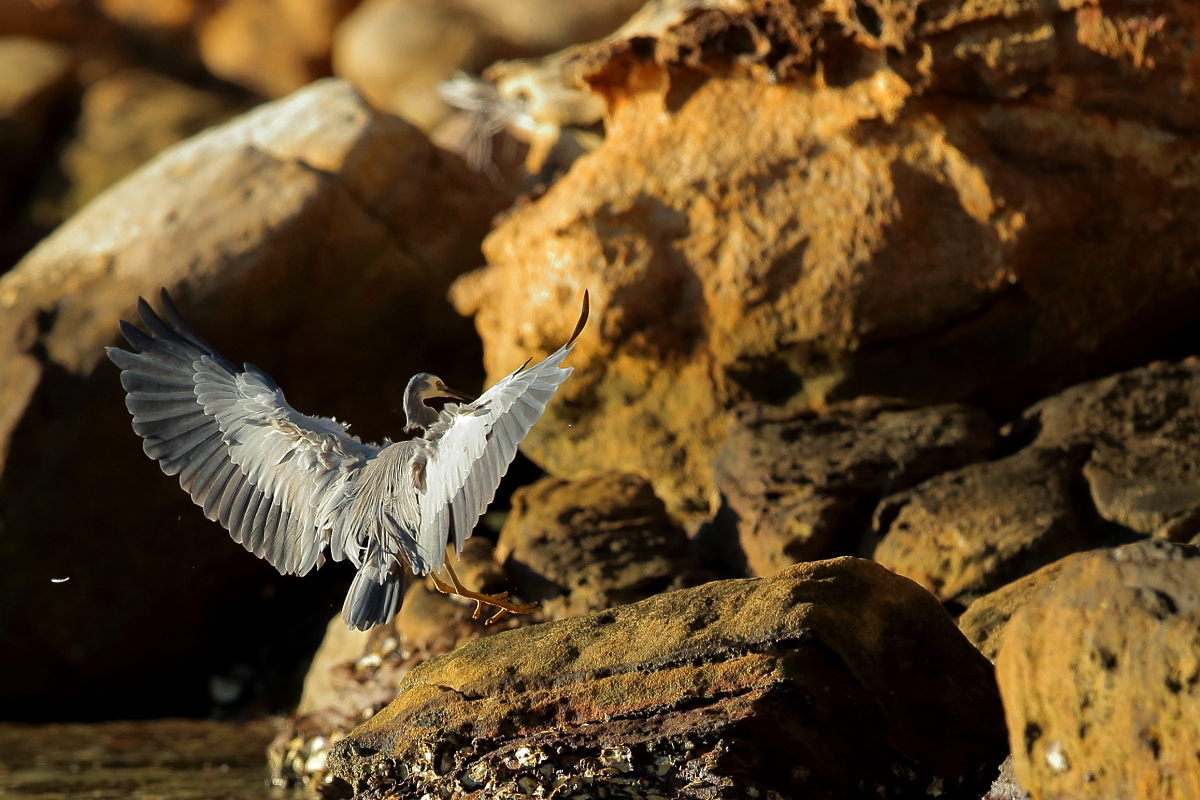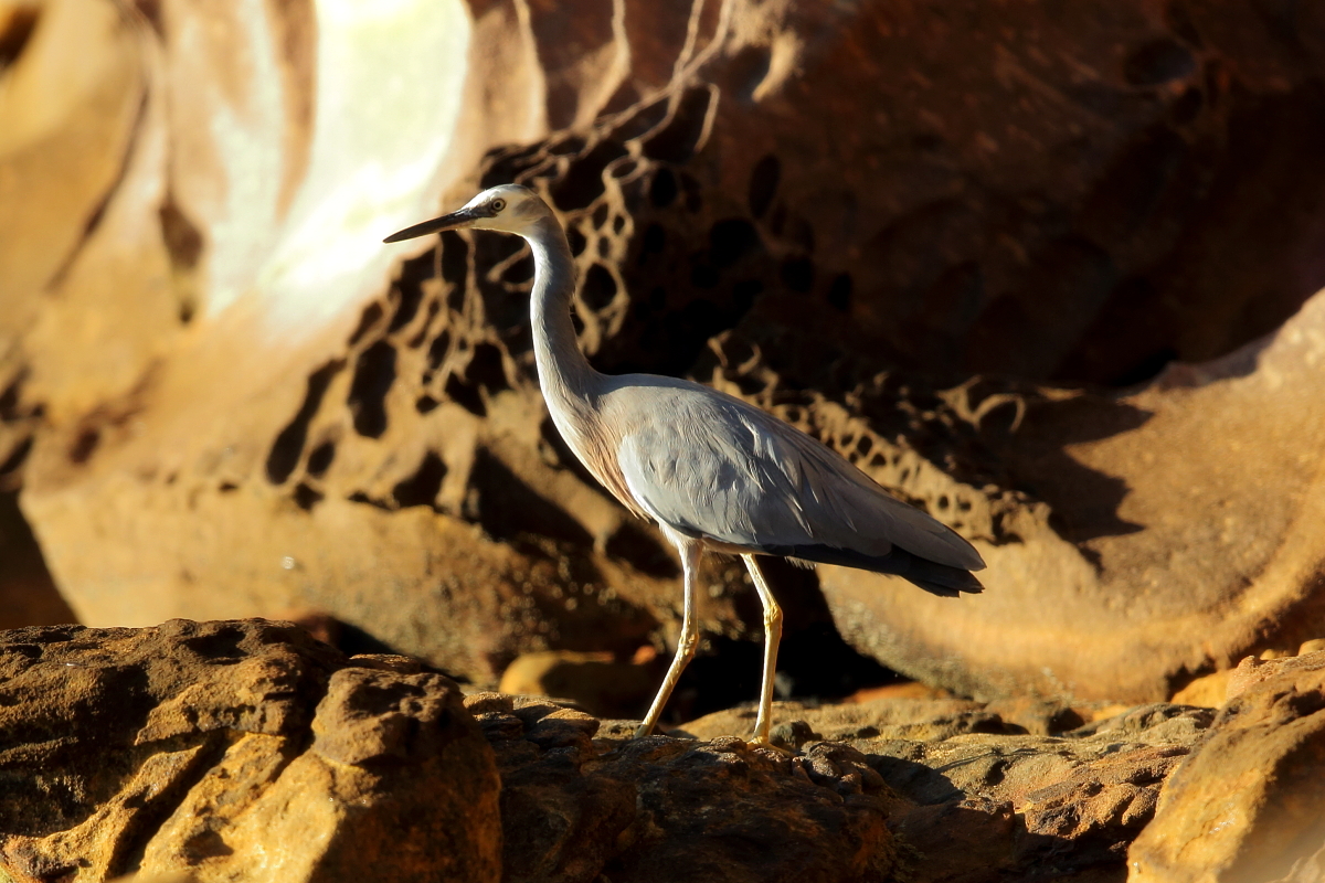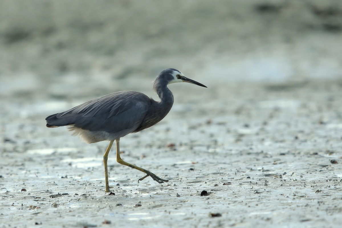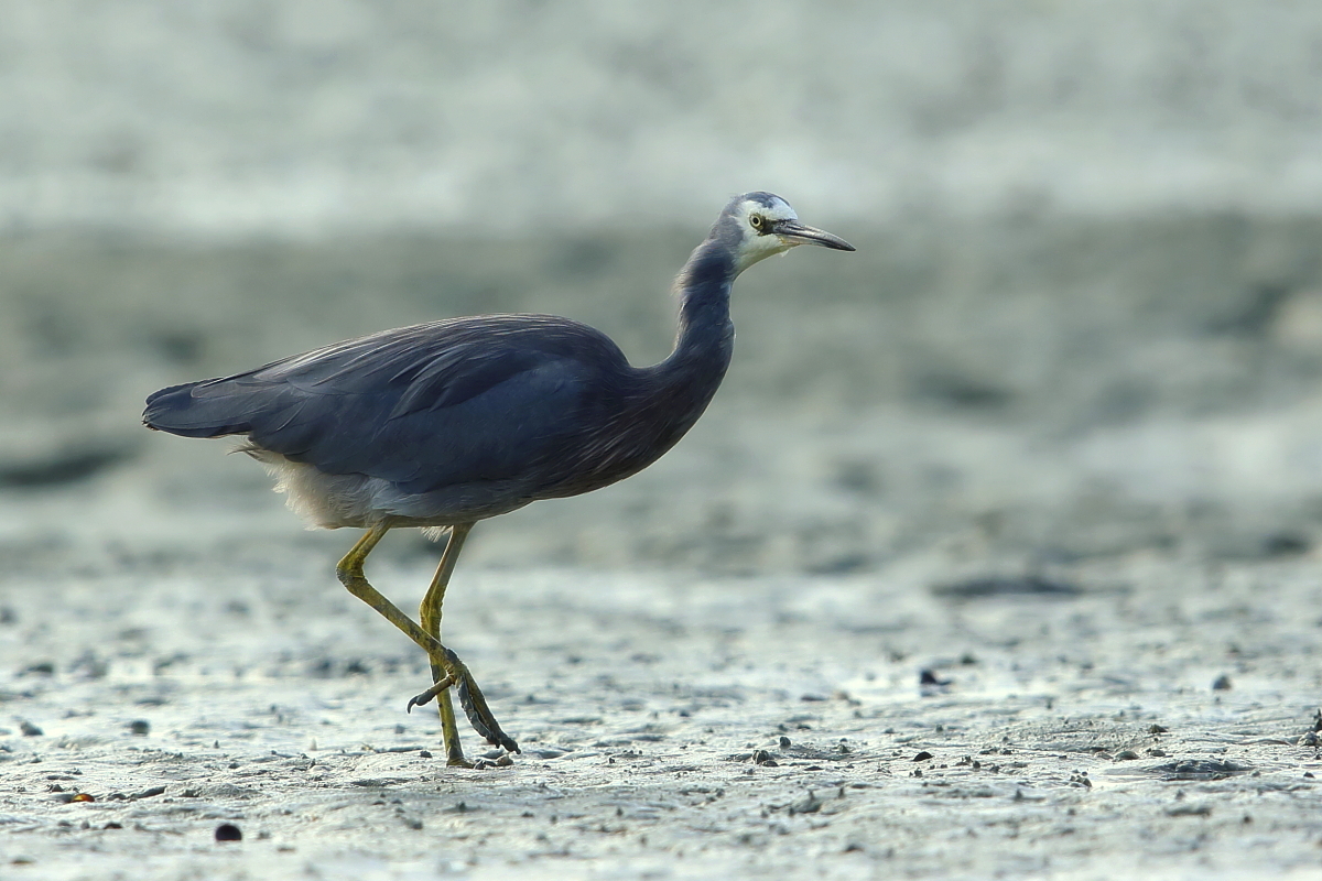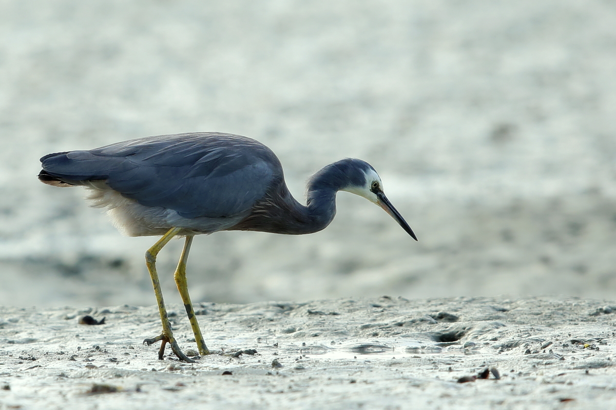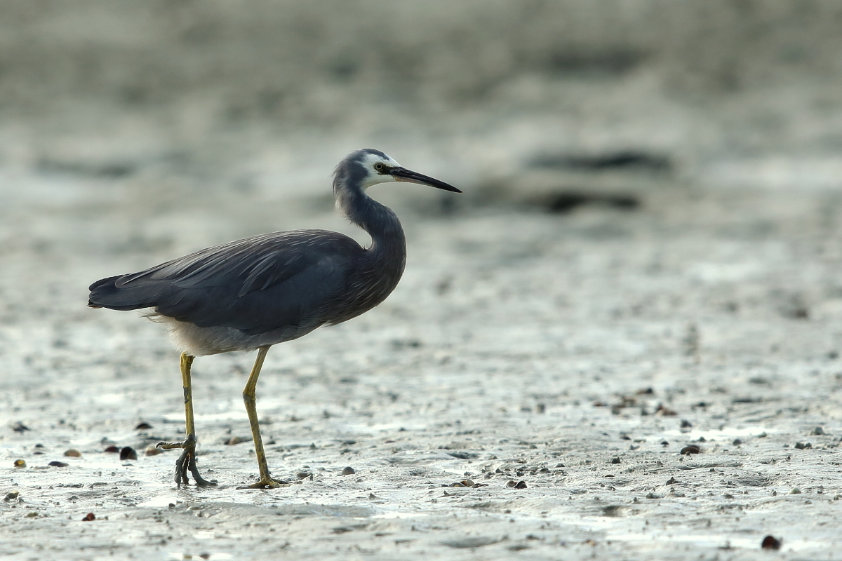 If only our herons cooperated with photographers just like white-faced herons  in Australia and New Zealand, how many beautiful images could be taken. I happened to meet white-faced herons a few times in Australia and several times in New Zealand. They are not as big as our grey heron or great egret,  their  weight is about a half kilo with a height of about 70 centimeters , but they  can be easily seen on the seashore feeding at low tide or on the banks of rivers. Approaching quietly you can reduce the distance so that with the camera equipped with  600 lens there is little space left in the frame. Of course it takes time to reduce the distance (15 to 30 minutes adjusting the tripod step by step, remaining down on my knees, hunched)  but that  is nothing in comparison with the situation when  building lookouts and  waiting many hours is necessary. Of course, each method has its advantages and disadvantages. For lack of time  such "walking" shooting gives you a chance to take satisfactory images. It does not give a chance to watch birds and their natural behavior, not to mention recording their mating habits. Heron always  were watching me from the corner of its eye without interrupting feeding. Taking the opportunity of such a shooting I also managed to take photos of oystercatchers, cormorants and gulls, of course. Several attempts gave a chance to create the presented images of this beautiful representative of pelecaniformes – welcome.