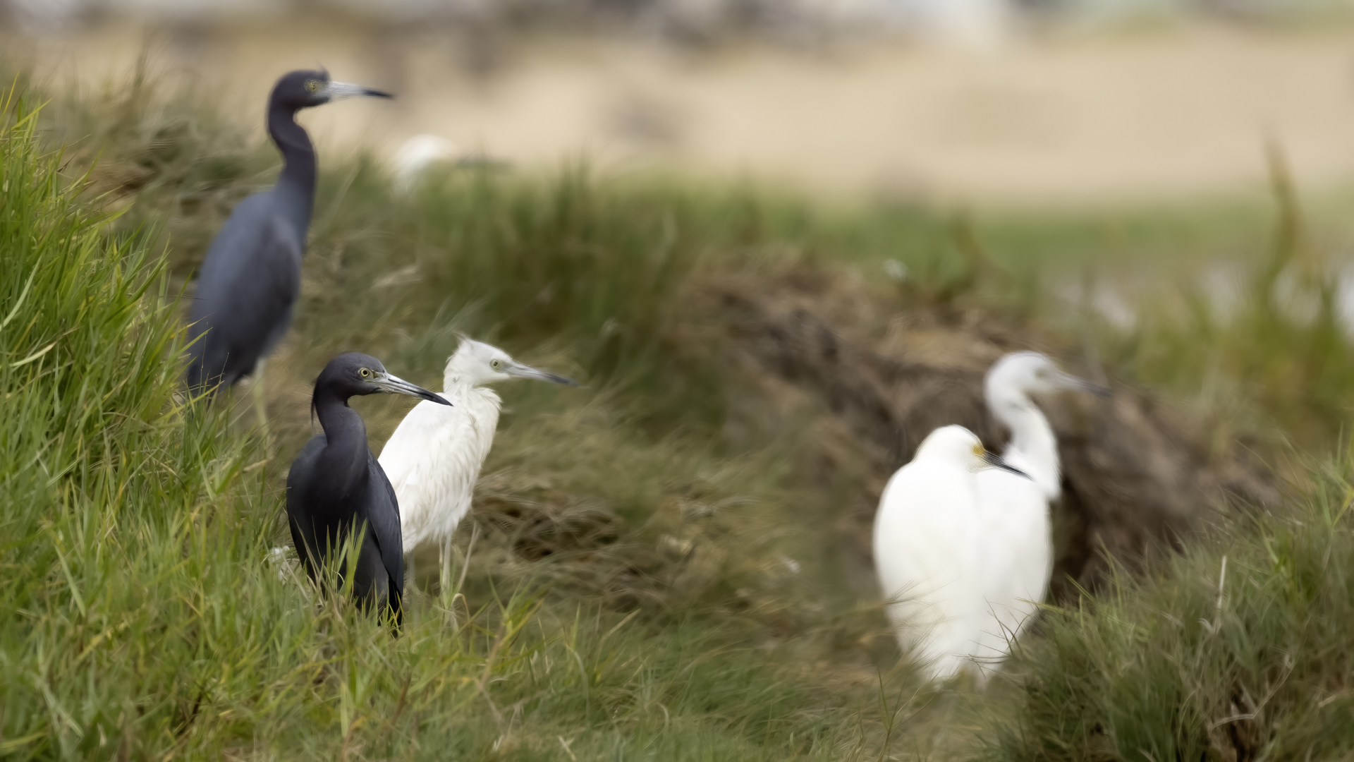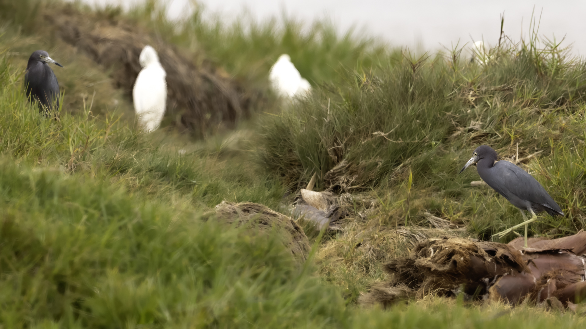 1.Tricolored Heron. 2.Killdeer. 3.Bananaquit (T,V). 4.Black-and-white Warbler (T). 5.Cape May Warbler. 6.Smooth-billed Ani (V). 7.Black-throated Blue Warbler. 8.Yellow-faced Grassquit. 9.Northern Parula. 10.Northern Mockingbird. 11.Prairie Warbler. 12.American Redstart. 13.Ovenbird. 14Turkey Vulture. 15.Red-legged Thrush (T). 16.Grey Plover (PL). 17.Feral pigeons (PL,T). 18.Black-crowned Night Heron (PL). 19.Royal Tern (T,V). 20.Willet. 21.Lesser Yellowlegs (PL,T). 22.Magnificent Frigatebird (T). 23.American Kestrel. 24.Little Blue Heron. 25.Greater Yellowlegs (PL,T). 26.Black-necked Stilt. 27.Short-billed Dowitcher. 28.Greater Antillean Grackle. 29.Green Heron. 30. West Indian Whistling-Duck. 31.Snowy Egret. 32.Great Egret (PL). 33. Least Grebe. 34.Sanderling.