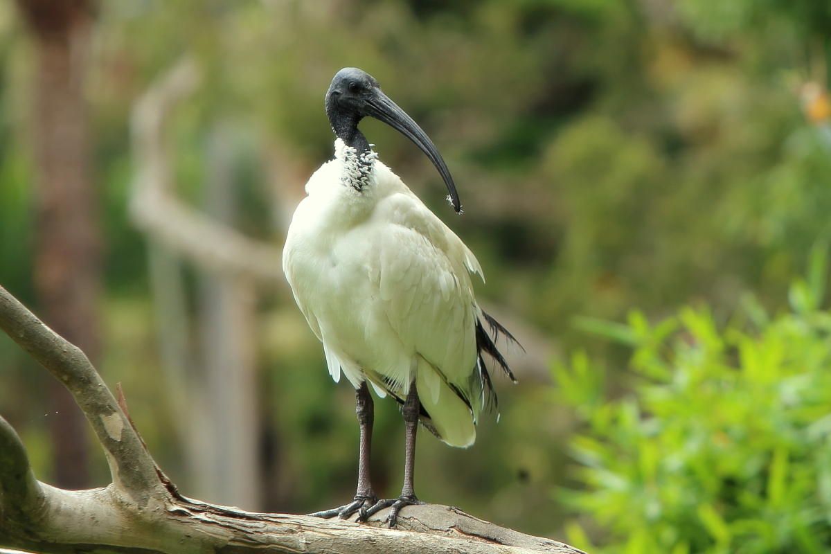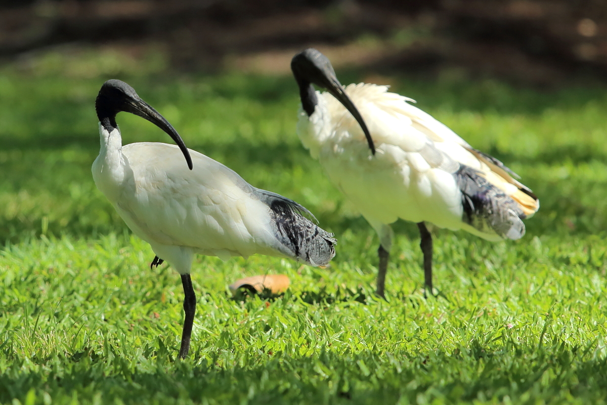 The Australian white ibis is ubiquitous in Australia, especially in the vicinity of Townsville and Sydney. It often visits urban spaces like squares and lawns. It is often an unwelcome visitor, however. It searches for food in dustbins and throws litters out of them, leaving it in the street. It was difficult to take photos of this bird in nonurban surroundings. Photos of the ibis feeding on garbage would not embellish my gallery. I took a few photos, though. They document the urban “bush” of Australia. Males may weigh up 2.5 kilograms, while females only 2 kilogram.