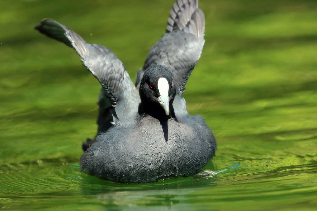 Most of the images for my gallery were taken in New Zealand. The Australian Coot is a subspecies of the Eurasian coots, and was introduced into New Zealand in the twentieth-century. Within city parks its pictures could be taken with no problem from quite a close distance. It was not timid. In size and behavior it does not differ from our commonly occurring coots.