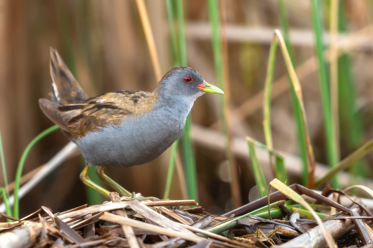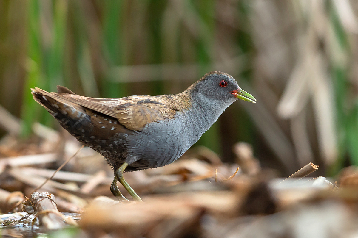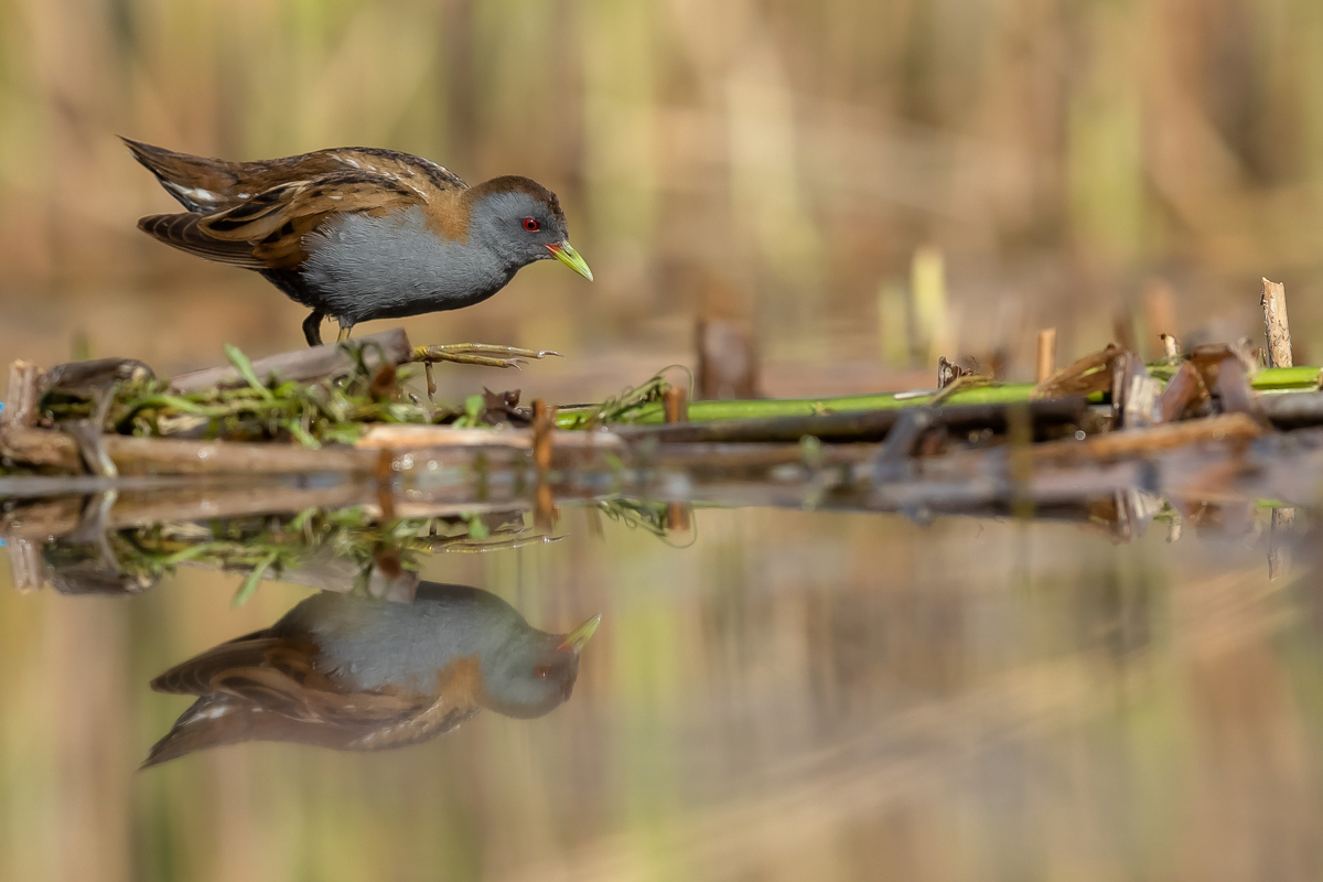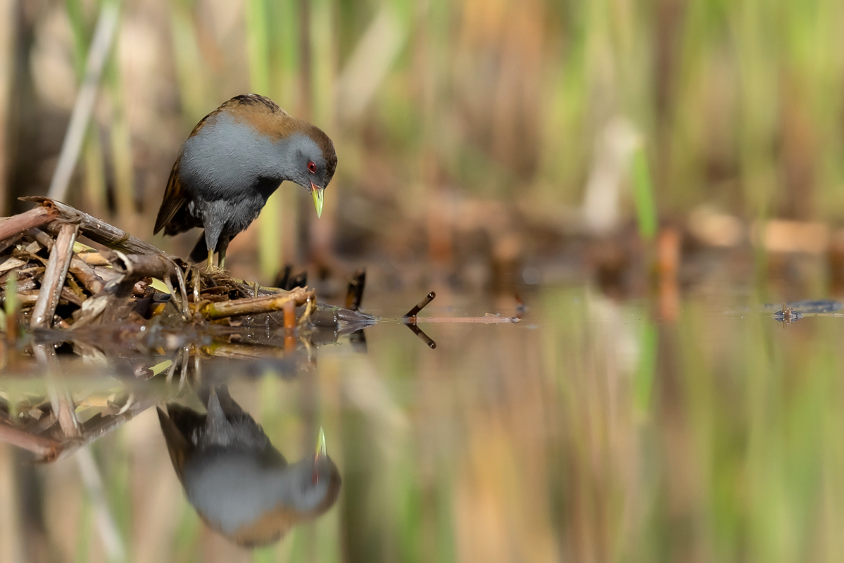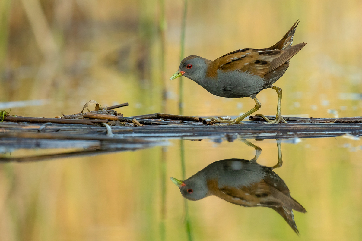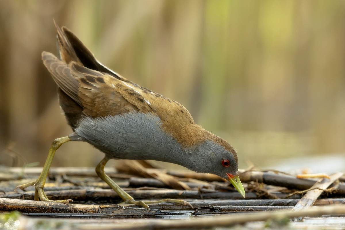 The last representative of the Rallidae family nesting in Poland has its gallery on my website at last. I had many attempts of searching for little crakes and reading information that might be helpful while photographing these birds (I attach two links at the end of this text). I have seen them twice, nay, once I was so close to a little crake when I was sitting camouflaged in a reed field, that the bird peacefully walked by in front of my lens. Of course, I wasn’t able to take any pictures, which is a pity as it’s a beautiful and exceptional bird, in its own way. It is unusual among other rails as its characteristic feature is sexual dimorphism. So far I have managed to take pictures of a male little crake. I hope that’s not the end and a complement to this gallery will be photos of a female little crake and her raven black young at the initial stage of their development. In the place where little crakes occur, if you sit peacefully in water, you can see little crakes searching for food and completely ignoring the human’s presence, even if he/she is not camouflaged. They are of tiny posture. As I looked at some photos of somebody else’s beautiful pictures of little crakes I didn’t really realize what size they are. Only a one to one encounter with a little crake gives you amazing impressions and makes you aware how tiny these birds are. The weight of a little crake does not exceed 70 grams with a wingspan of 40 centimeters. They are a little smaller than starlings. The male little crake approached my lens a number of times at a distance of about a meter, sometimes it would sit down nearby looking at the strange figure sitting in the water, and sometimes it would make its quite characteristic sounds, similar to the sounds of a water rail. I did not have any difficulties with recording its voice. The male sat down on my right and that’s how a good quality recording of its sounds was made – I encourage you to listen to it. Everything was possible thanks to the courtesy of Jacek, who knows so much about little crakes. It is hard to describe how much it takes to know about little crakes, how much time and energy one must devote to create such possibilities to photograph this bird. Jacek, thank you very much for the possibility to encounter little crakes and take the photos presented here. Thanks to your knowledge and work on the little crake outdoor photography site my starting gallery of the little crake is, at least for me, impressing and I will be coming back to it often. I wish it would be similar with other species, but as it often happens in nature photography, one must match many things in just a fracture of a second in order to be able to take a good picture. But such moments happen, and that’s why we photograph…