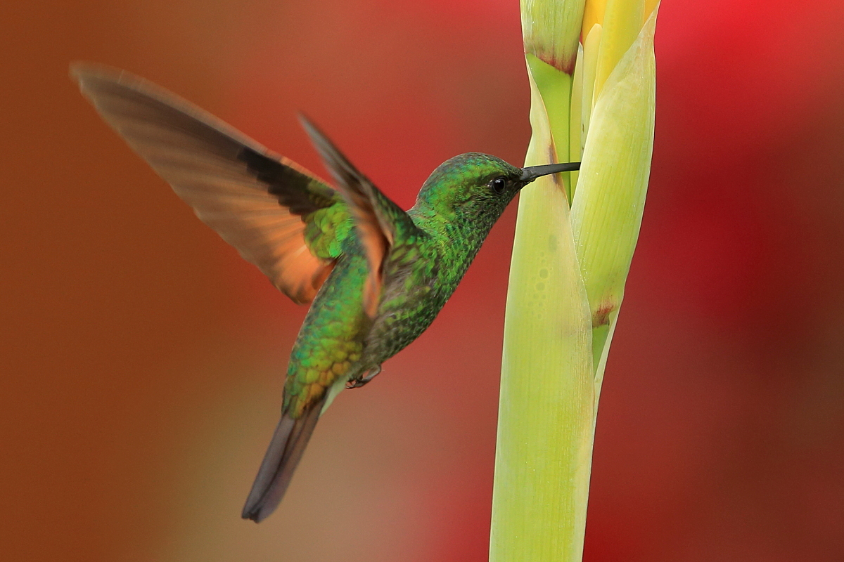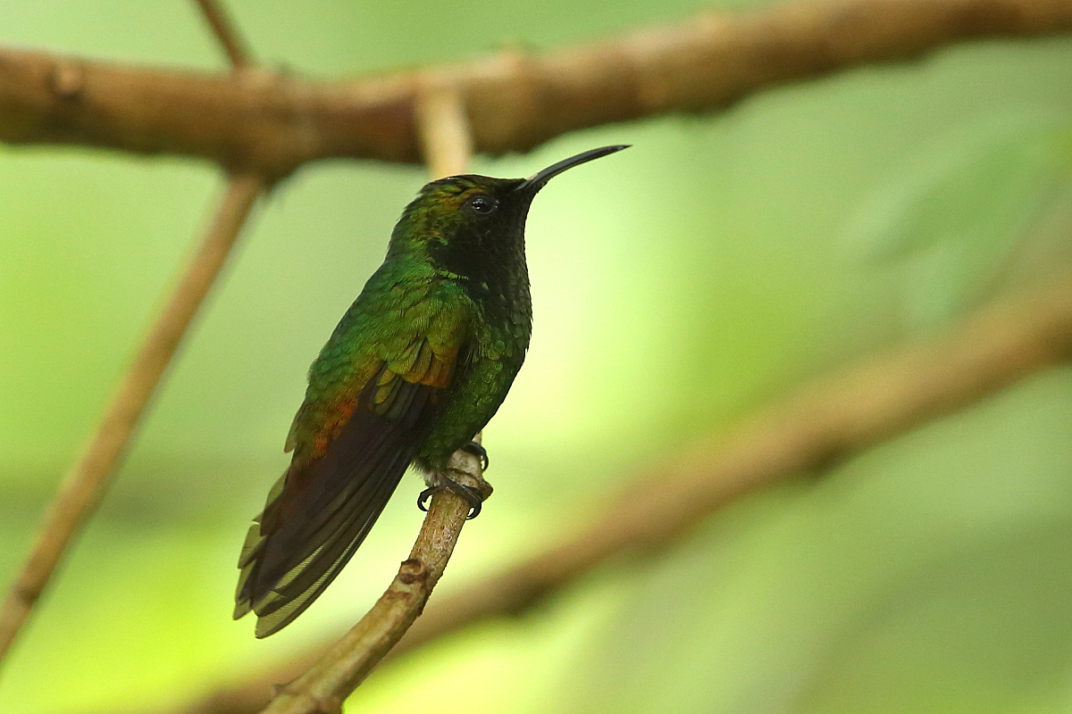 Although I managed to capture many species of hummingbirds, you can find there one description of all 22 species photographed in Costa Rica together. This time my expedition took longer and the light was better, I had therefore an opportunity to take many dynamic pictures. It is interesting that driving around Costa Rica after traveling several kilometers there were species of hummingbirds completely different from those we could observe earlier. Costa Rica is a small country (several percent of Polish territory) and in such a small area there is such a variety of species of hummingbirds. Wherever hummingbirds were: in roadside bars, hotels, there were drinking bowls which attracted dozens of them. The fact that hummingbirds were at hand does not mean that it was easy to take presented photos, especially those dynamic. They move so fast that there was no time to think for me nor for autofocus to set long time. Fortunately they behave fairly predictably, at least most of them. After quenching their thirst at the drinking bowl they flew 20-30 cm away and hovered in the air for a second - two, to see what was happening around. This is how the majority of the presented images were created. Hummingbirds often compete against each other and there is a lot of pushing and shoving between them. These air fights on the fly are virtually impossible to photograph. All this takes fractions of a second, covering several meters, what, with their filigree silhouette, makes it impossible to take satisfactory images. Hummingbirds were not afraid of people at all, and it happened that when I was shooting they sat on my shoulder. As it happens in nature photography, my contacts with hummingbirds resulted in pictures of different quantity and quality. So I have built new galleries, where because of excess of images I found it difficult to decide which of them include or exclude, and some that have very modest content. Just to identify the species correctly it was not  easy. Depending on the light the same bird could have for example dark green coloration at one moment, and after a while, when the lighting conditions changed, turned into a beautifully coloured bird with shimmering glittering plumage. In total I managed to photograph 22 of 50 species that occur in Costa Rica