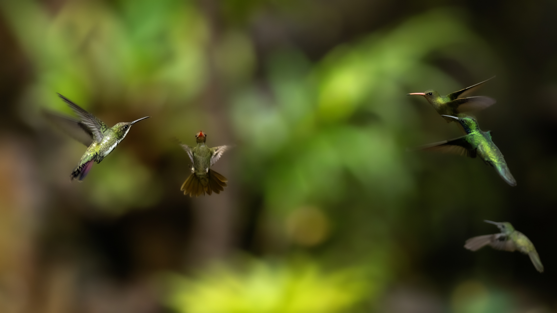 Black-Throated Mango, Black Jacobin, Straight-billed hermit, Gilded Hummingbird, Versicoloured Emerald, Swallow-Tailed Hummingbird,Violet-Capped Woodnymph,