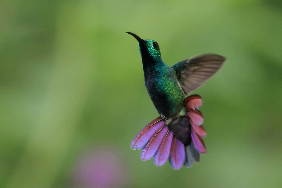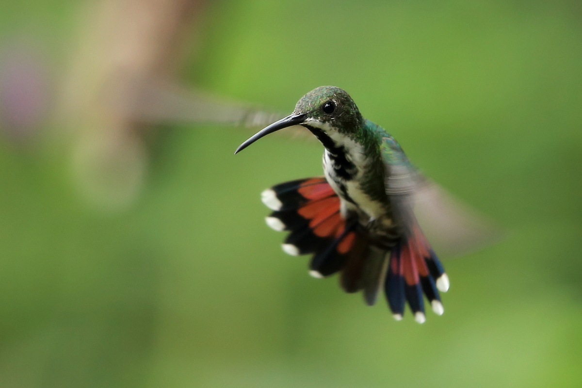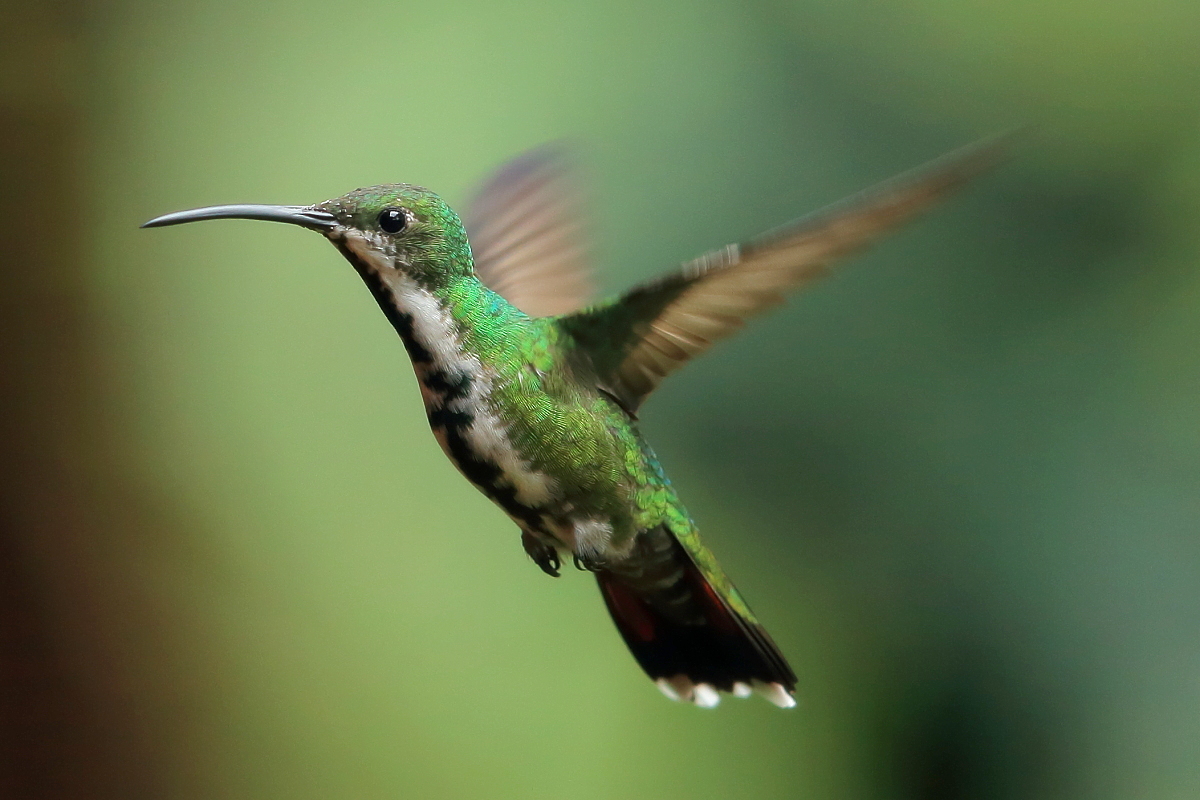 Although I managed to capture many species of hummingbirds, you can find there one description of all 22 species photographed in Costa Rica together. This time my expedition took longer and the light was better, I had therefore an opportunity to take many dynamic pictures. It is interesting that driving around Costa Rica after traveling several kilometers there were species of hummingbirds completely different from those we could observe earlier. Costa Rica is a small country (several percent of Polish territory) and in such a small area there is such a variety of species of hummingbirds. Wherever hummingbirds were: in roadside bars, hotels, there were drinking bowls which attracted dozens of them. The fact that hummingbirds were at hand does not mean that it was easy to take presented photos, especially those dynamic. They move so fast that there was no time to think for me nor for autofocus to set long time. Fortunately they behave fairly predictably, at least most of them. After quenching their thirst at the drinking bowl they flew 20-30 cm away and hovered in the air for a second - two, to see what was happening around. This is how the majority of the presented images were created. Hummingbirds often compete against each other and there is a lot of pushing and shoving between them. These air fights on the fly are virtually impossible to photograph. All this takes fractions of a second, covering several meters, what, with their filigree silhouette, makes it impossible to take satisfactory images. Hummingbirds were not afraid of people at all, and it happened that when I was shooting they sat on my shoulder. As it happens in nature photography, my contacts with hummingbirds resulted in pictures of different quantity and quality. So I have built new galleries, where because of excess of images I found it difficult to decide which of them include or exclude, and some that have very modest content. Just to identify the species correctly it was not  easy. Depending on the light the same bird could have for example dark green coloration at one moment, and after a while, when the lighting conditions changed, turned into a beautifully coloured bird with shimmering glittering plumage. In total I managed to photograph 22 of 50 species that occur in Costa Rica.