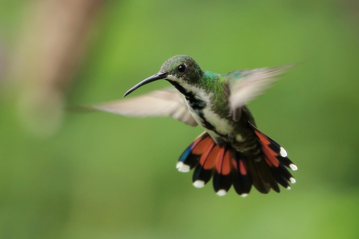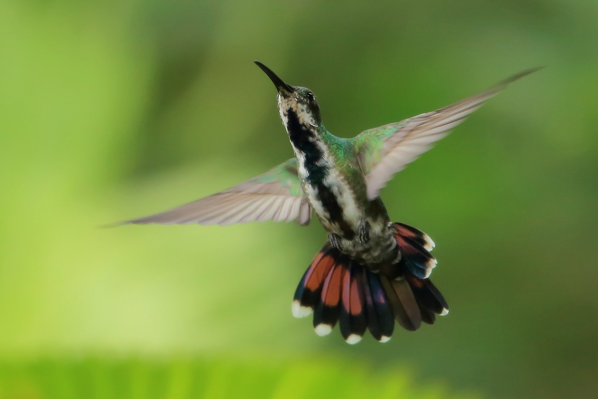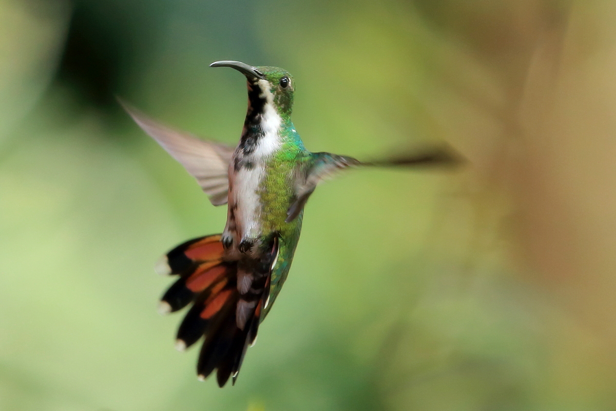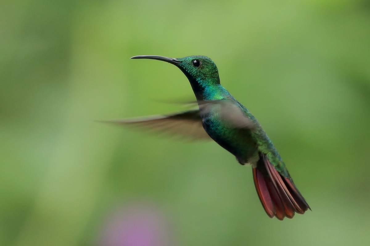 Although I managed to capture many species of hummingbirds, you can find there one description of all 22 species photographed in Costa Rica together. This time my expedition took longer and the light was better, I had therefore an opportunity to take many dynamic pictures. It is interesting that driving around Costa Rica after traveling several kilometers there were species of hummingbirds completely different from those we could observe earlier. Costa Rica is a small country (several percent of Polish territory) and in such a small area there is such a variety of species of hummingbirds. Wherever hummingbirds were: in roadside bars, hotels, there were drinking bowls which attracted dozens of them. The fact that hummingbirds were at hand does not mean that it was easy to take presented photos, especially those dynamic. They move so fast that there was no time to think for me nor for autofocus to set long time. Fortunately they behave fairly predictably, at least most of them. After quenching their thirst at the drinking bowl they flew 20-30 cm away and hovered in the air for a second - two, to see what was happening around. This is how the majority of the presented images were created. Hummingbirds often compete against each other and there is a lot of pushing and shoving between them. These air fights on the fly are virtually impossible to photograph. All this takes fractions of a second, covering several meters, what, with their filigree silhouette, makes it impossible to take satisfactory images. Hummingbirds were not afraid of people at all, and it happened that when I was shooting they sat on my shoulder. As it happens in nature photography, my contacts with hummingbirds resulted in pictures of different quantity and quality. So I have built new galleries, where because of excess of images I found it difficult to decide which of them include or exclude, and some that have very modest content. Just to identify the species correctly it was not  easy. Depending on the light the same bird could have for example dark green coloration at one moment, and after a while, when the lighting conditions changed, turned into a beautifully coloured bird with shimmering glittering plumage. In total I managed to photograph 22 of 50 species that occur in Costa Rica.