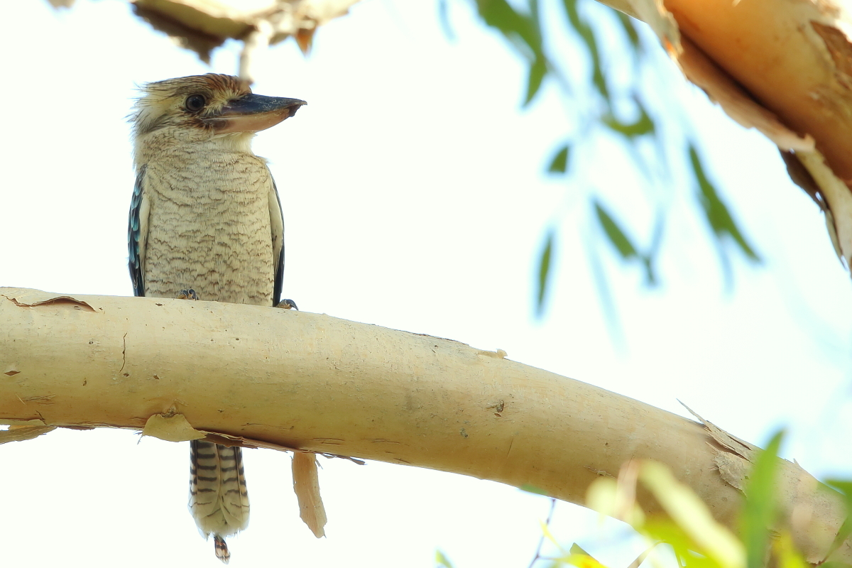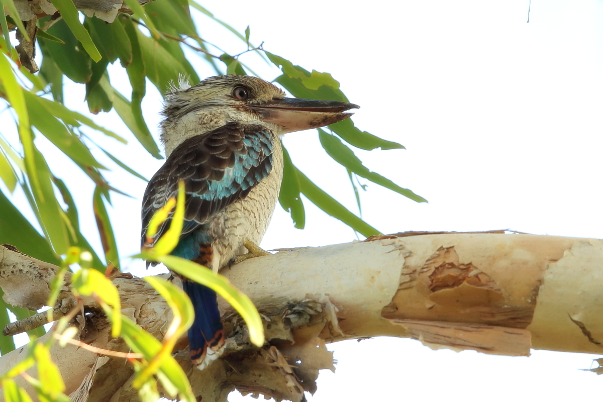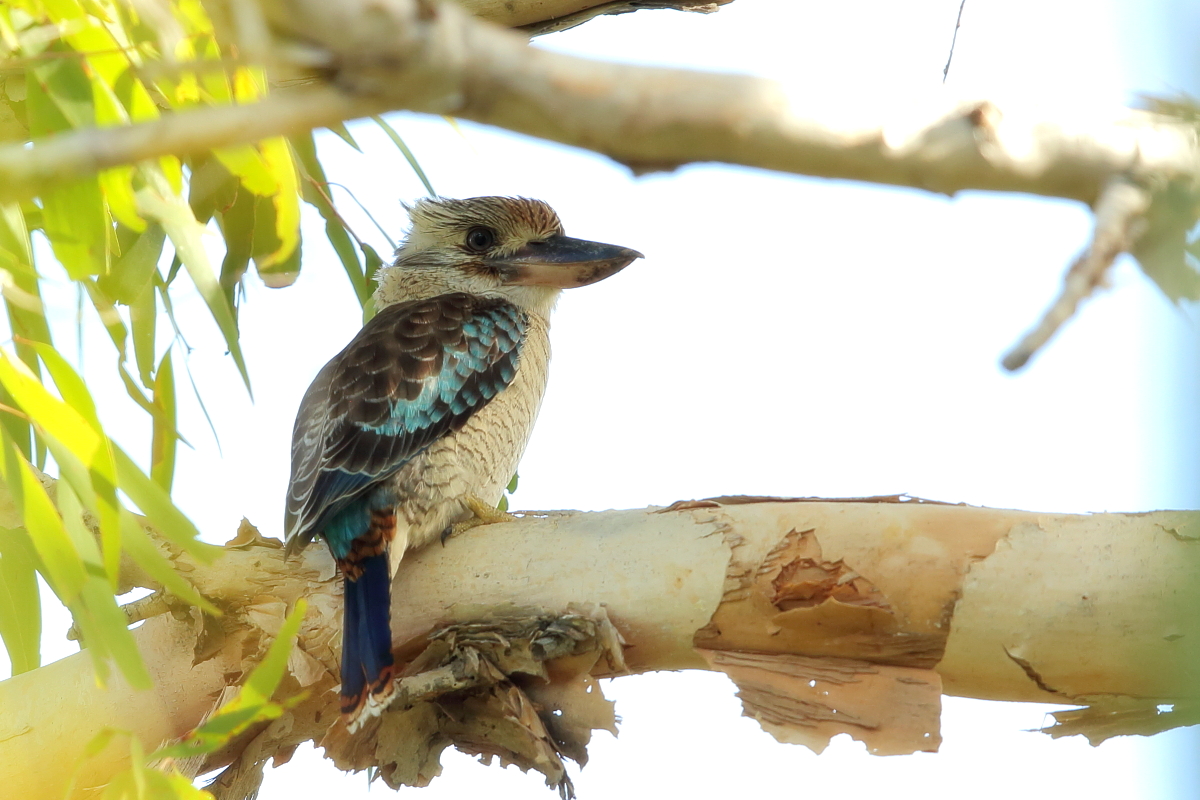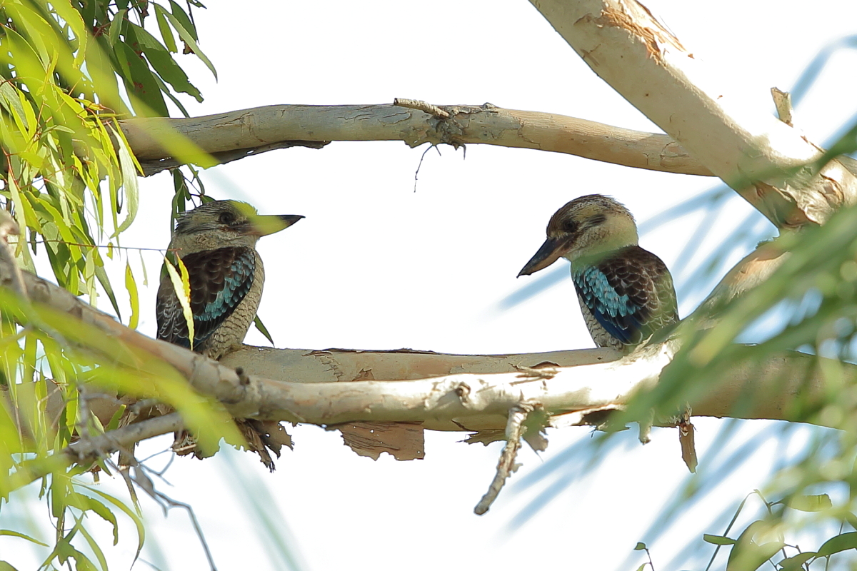 The Blue-winged Kookaburra could be seen only once. Fortunately two blue-winged kookaburras were sitting quietly posing for photos. Most likely it was a couple, because the male had a tail colored in blue, while the female - less colorful, brown.  In size they did not differ from the Laughing Kookaburra.