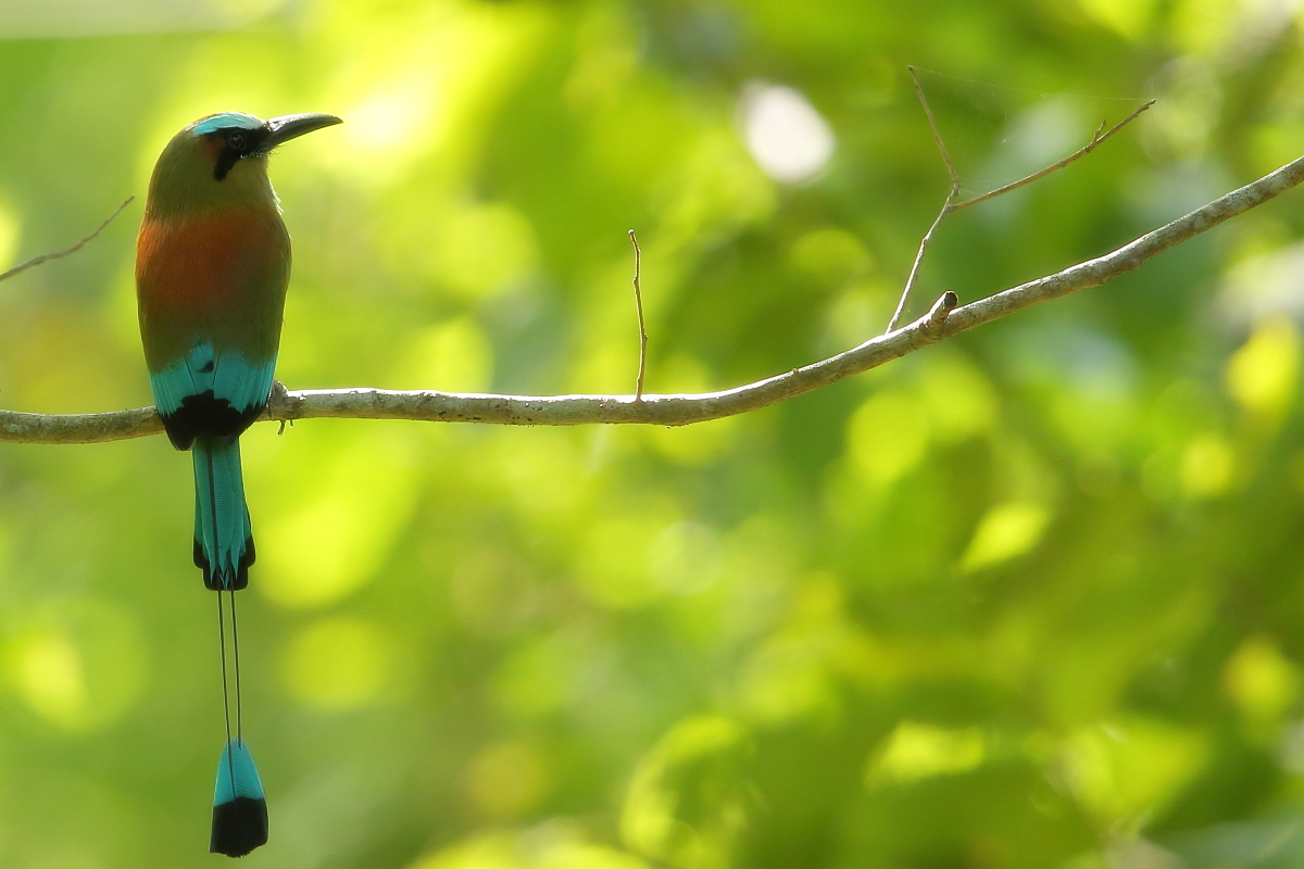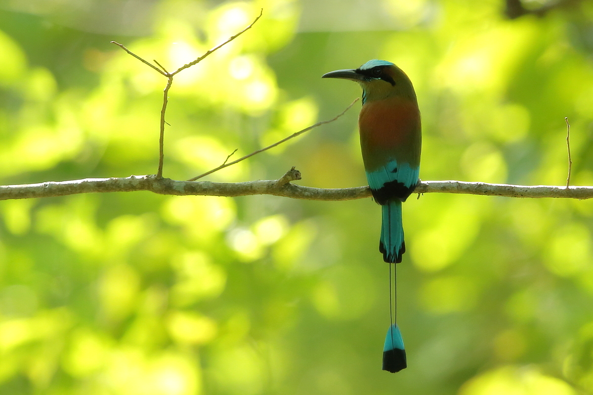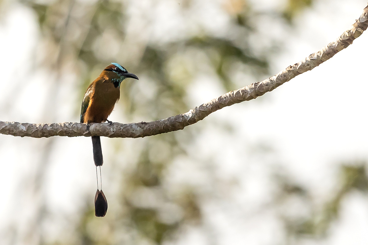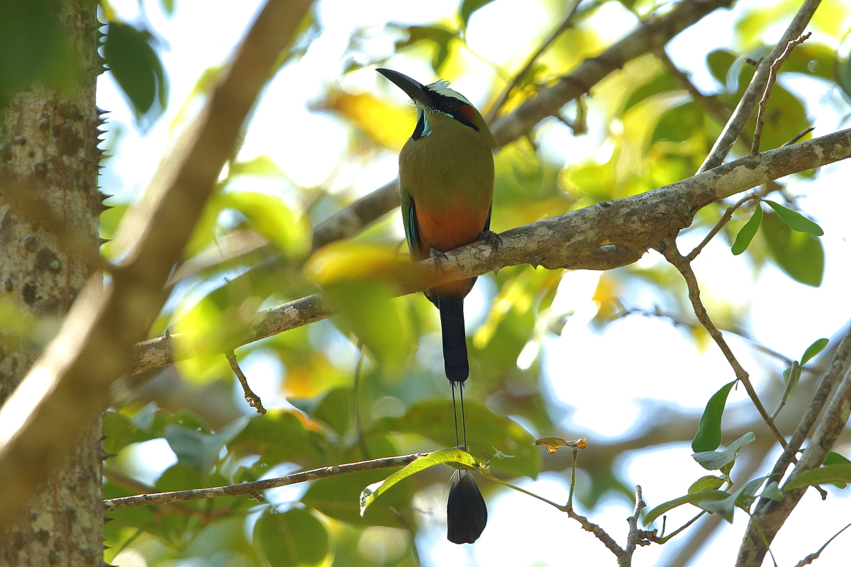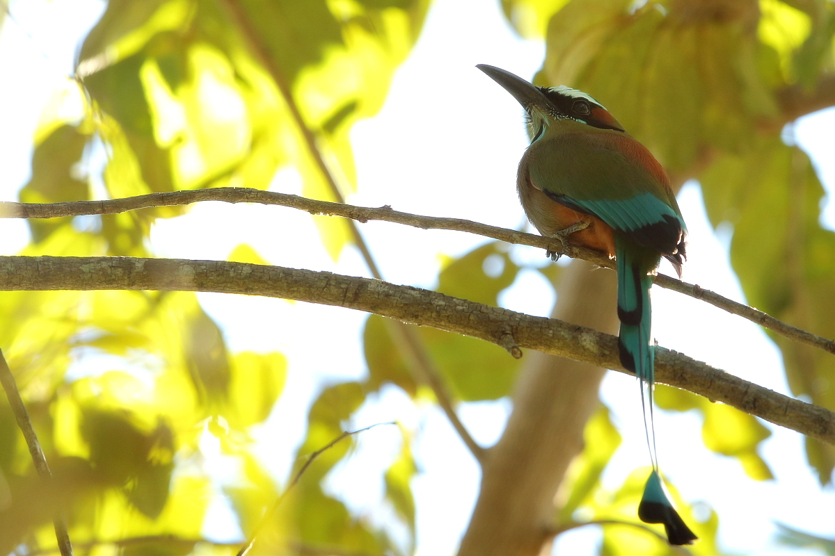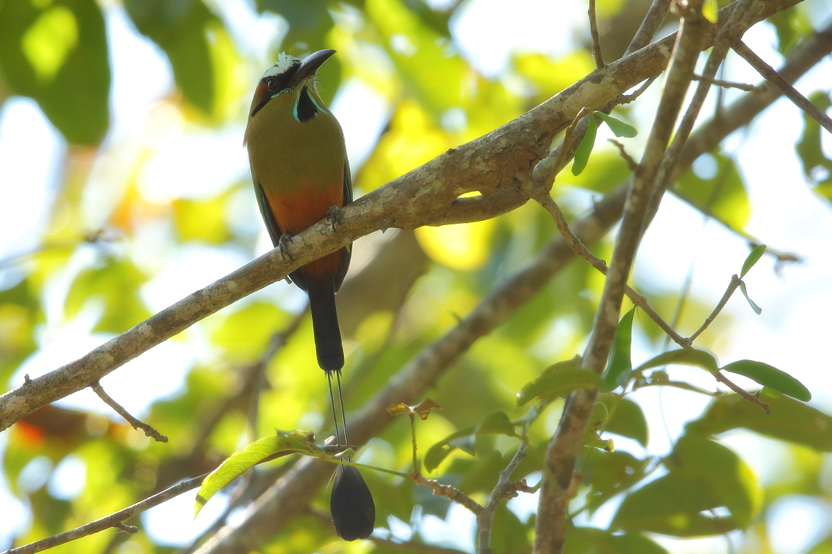 Motmots occur from Mexico to Argentina. They belong to beautifully colored birds of medium size (weight up to 200 grams, body length up to 50 cm, the tail is approximately 30 cm of that). Its name comes from the characteristic bill, which serrated edges look like a saw. Its decorative two tail feathers with distinctive oval-shaped tips at the ends look incredibly. It is not easy to observe and photograph a motmot  in its natural environment. As usual a bit of luck is needed and useful hints of local guides. But when you are lucky to find a motmot you can watch them as they sit quietly scanning the surroundings with their eyes, just like toucans do. Sometimes better, sometimes worse, it was differently with shooting-favoured positions, but eventually I managed to photograph 4 species of motmots and record voice of rufous motmot. As with hummingbirds and toucans the text is common to this group of birds.