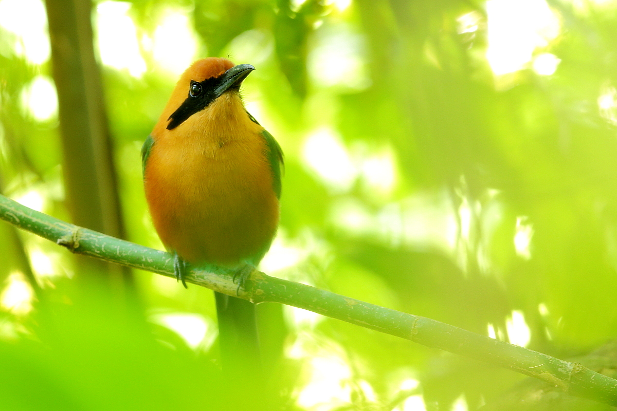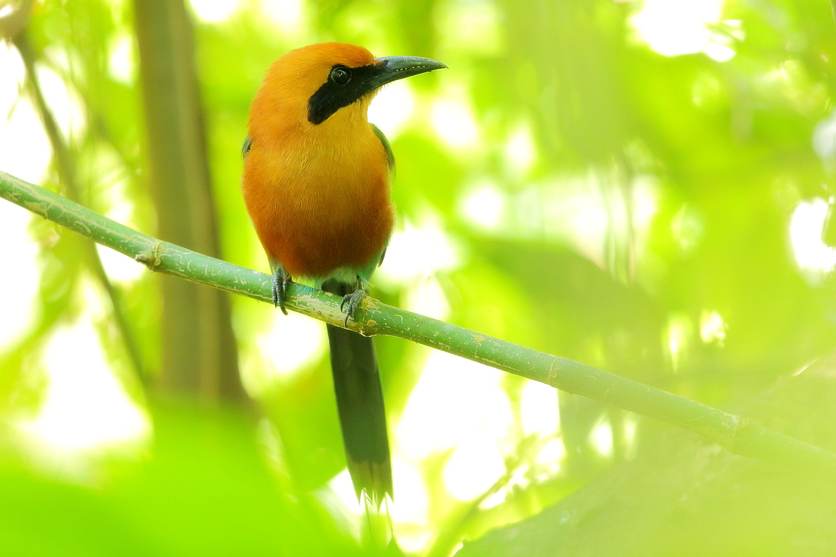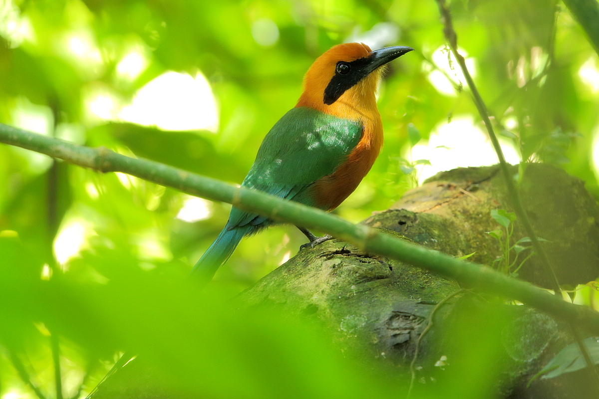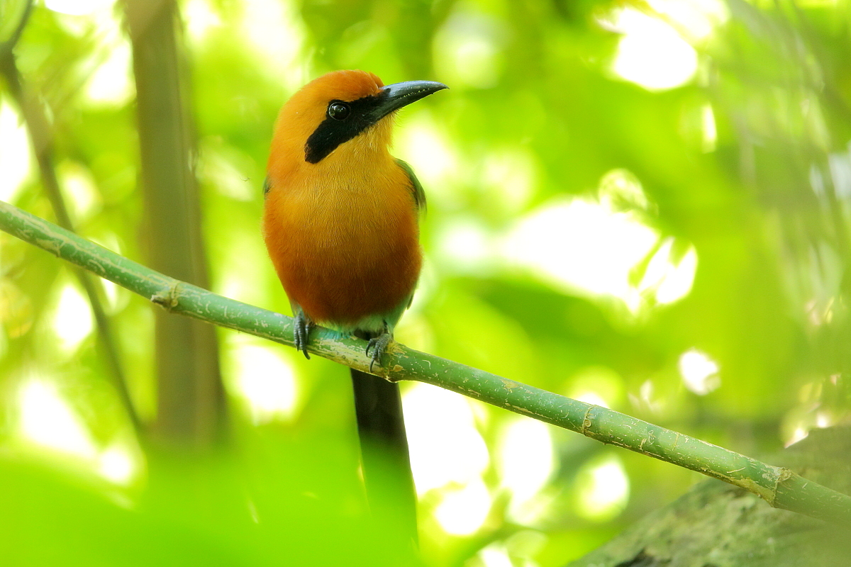 Motmots occur from Mexico to Argentina. They belong to beautifully colored birds of medium size (weight up to 200 grams, body length up to 50 cm, the tail is approximately 30 cm of that). Its name comes from the characteristic bill, which serrated edges look like a saw. Its decorative two tail feathers with distinctive oval-shaped tips at the ends look incredibly. It is not easy to observe and photograph a motmot  in its natural environment. As usual a bit of luck is needed and useful hints of local guides. But when you are lucky to find a motmot you can watch them as they sit quietly scanning the surroundings with their eyes, just like toucans do. Sometimes better, sometimes worse, it was differently with shooting-favoured positions, but eventually I managed to photograph 4 species of motmots and record voice of rufous motmot. As with hummingbirds and toucans the text is common to this group of birds.