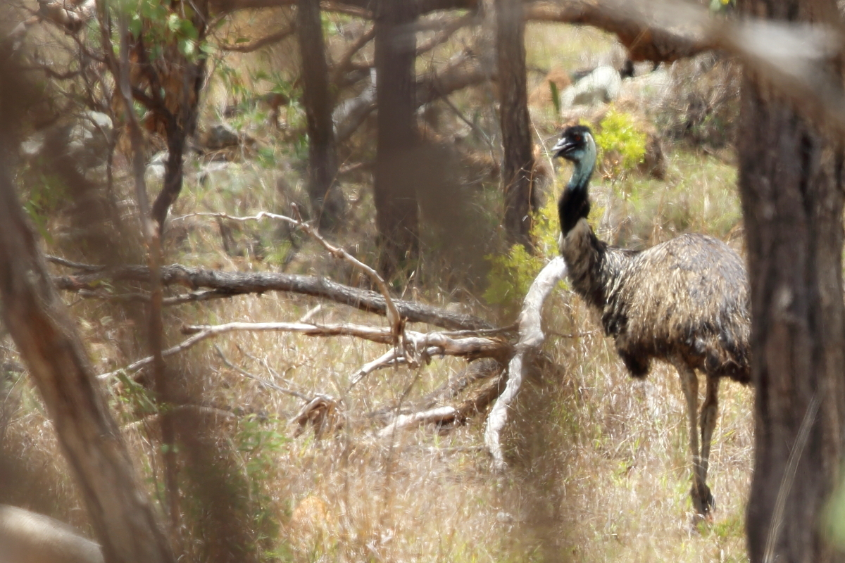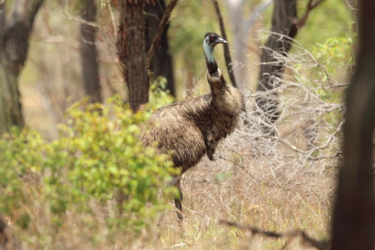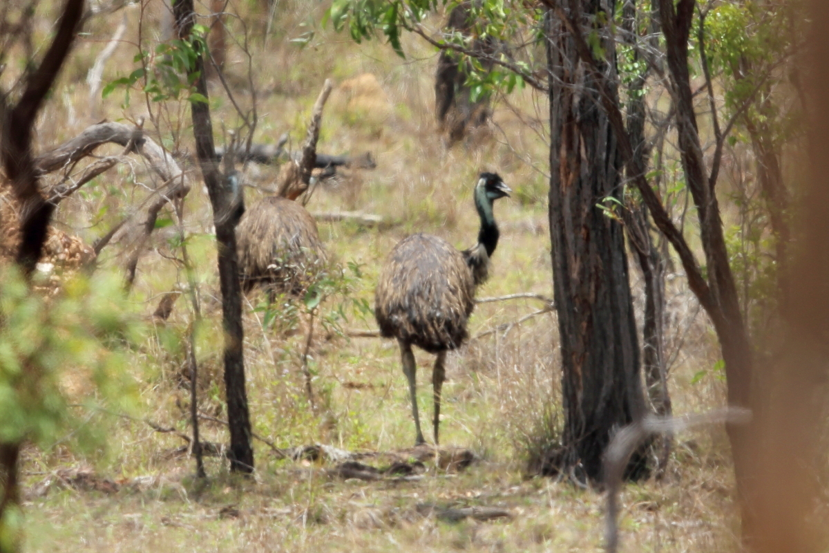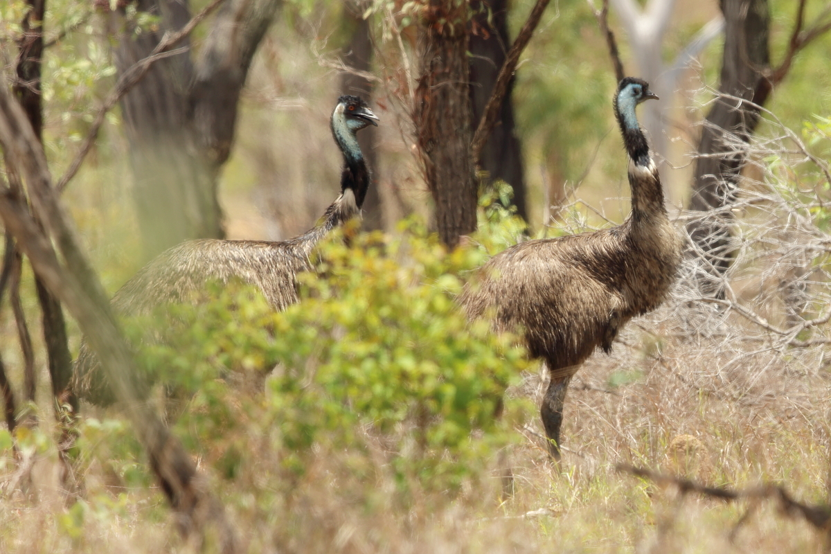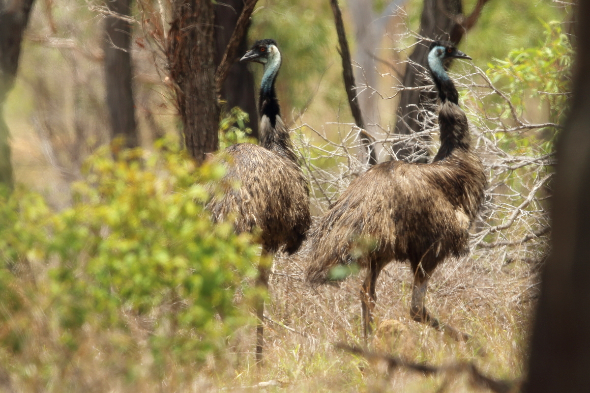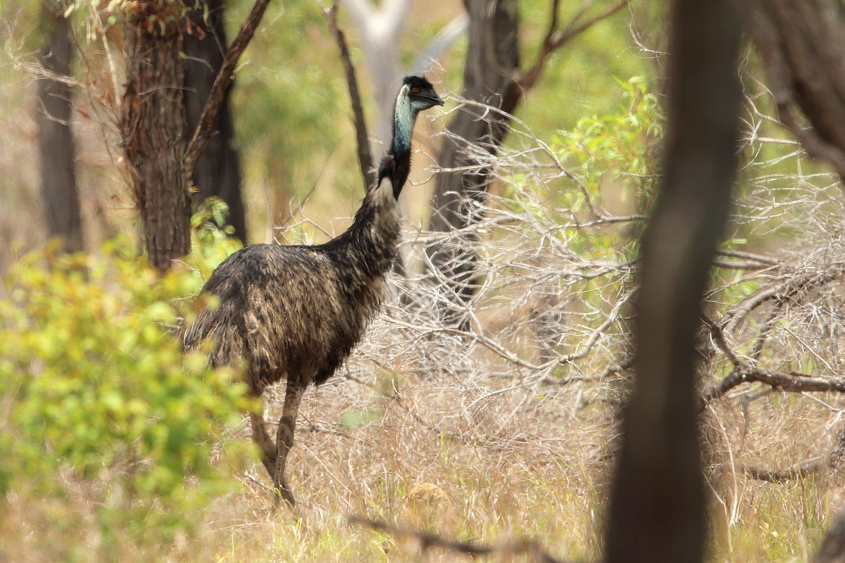 We were driving through the bush at a temperature above 30°C, a few hundred kilometers from Tonsville, suddenly two large figures appeared on the right side of the car. Theese were two huge birds - emus. We stopped the car, and emu, like bustards, initially watched calmly, then began to move away slowly. I was never afraid of birds, but this time following them I doubted for a moment. When I approached the emus suddenly one of them stopped and I wondered if  our places would be exchanged. Maybe their young were somewhere around and caring father would not like me. Emu was about 2 meters high. These birds can weigh more than 50 kg and their kick can be fatal for smaller aggressors. This is the only weapon in their defense, except, of course, a quick escape. But this strange moment passed and the birds leisurely began to wander off, and I followed them of course. Unfortunately, all this lasted too short and I could not get my tripod out of the car, so all the presented images are hand-held shots. I do not feel completely satisfied  due to the short time I had spent with them, and of course because of the quantity and quality of the images, but as it is the biggest bird in Australia and the second in the world – it goes to the news - welcome.
