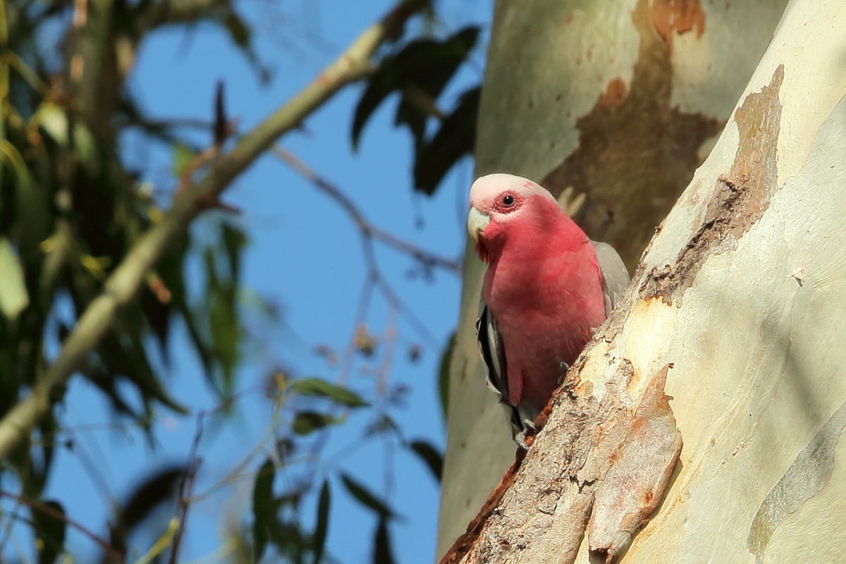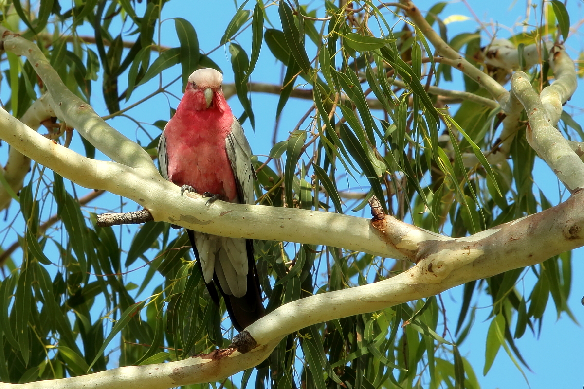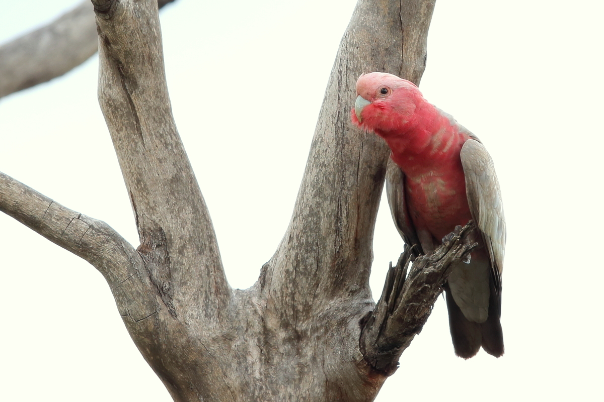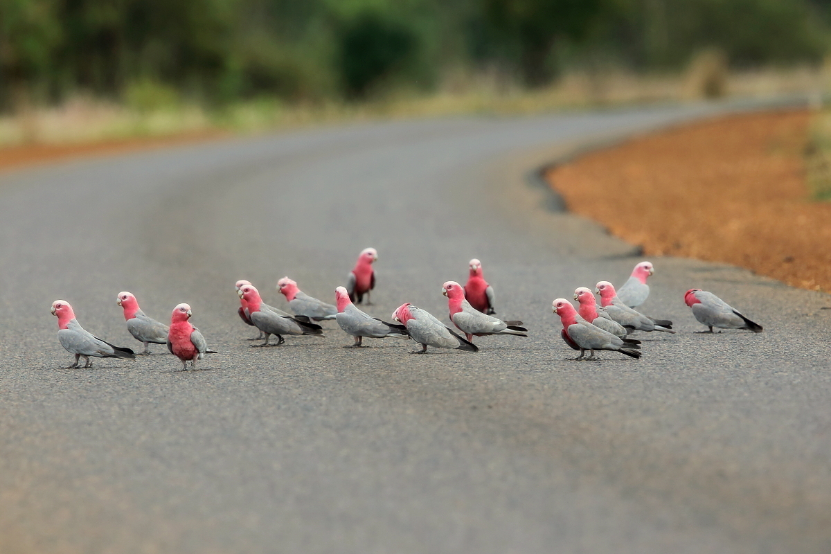 Parrots are a rewarding object for photographer as their beauty and look cause you are never fed up with them and you are willing to come back to spend your time with them and to record the species in pictures. The farther from human societies the cockatoos gathered in the larger flocks, at least according to what I was able to observe and photograph. The flock of the cockatoos crossing the road can be seen in the places where cars occurs rarely indeed. When I was taking photos in such places the bush was perfectly calm and quiet, only the sounds of nature could be heard. When it happened that a car was coming up the sound of its engine could be heard from afar. I managed to meet the Galah a couple of times, once even in urban circumstances. The Galah is a medium sized parrot (it weighs up to 400 grams), smaller than the Red-tailed Cockatoo and the Sulphur-crested Cockatoo and can be found practically across the whole Australia. This species brought me the associations and emotions just like the Sulphur-crested Cockatoo that I described in the text about.