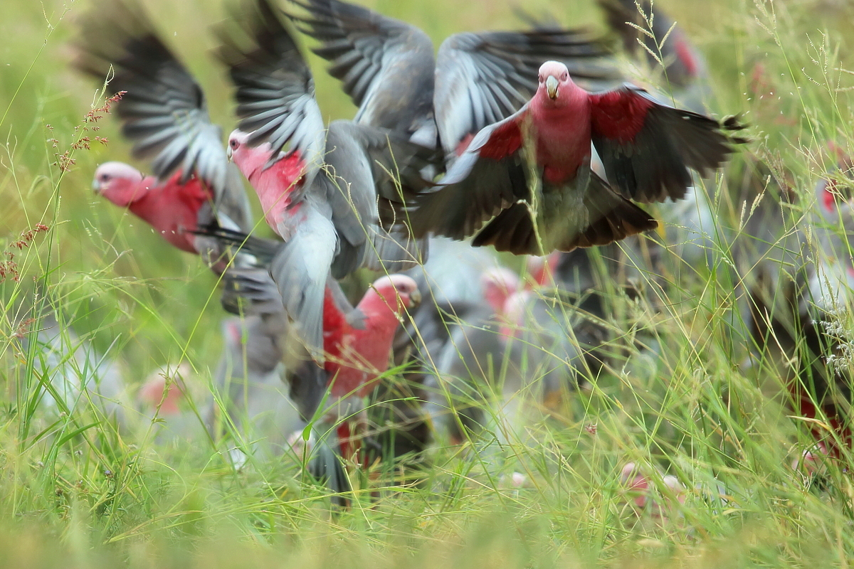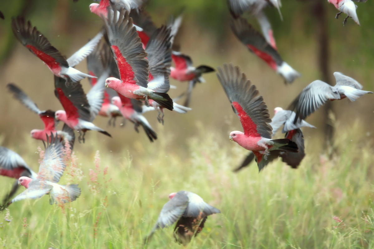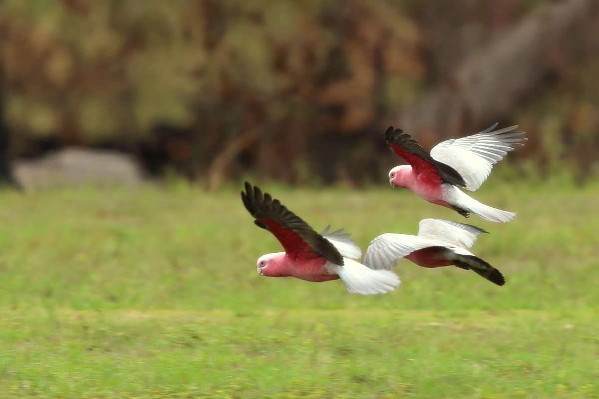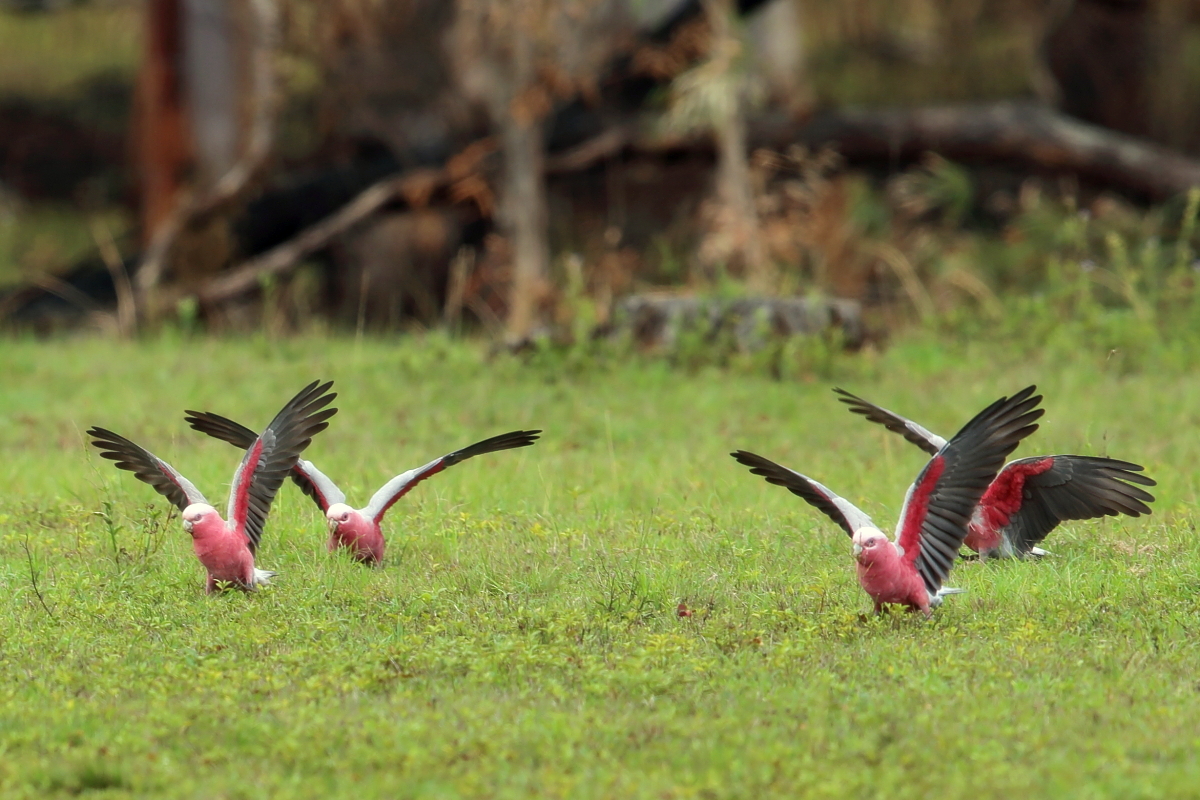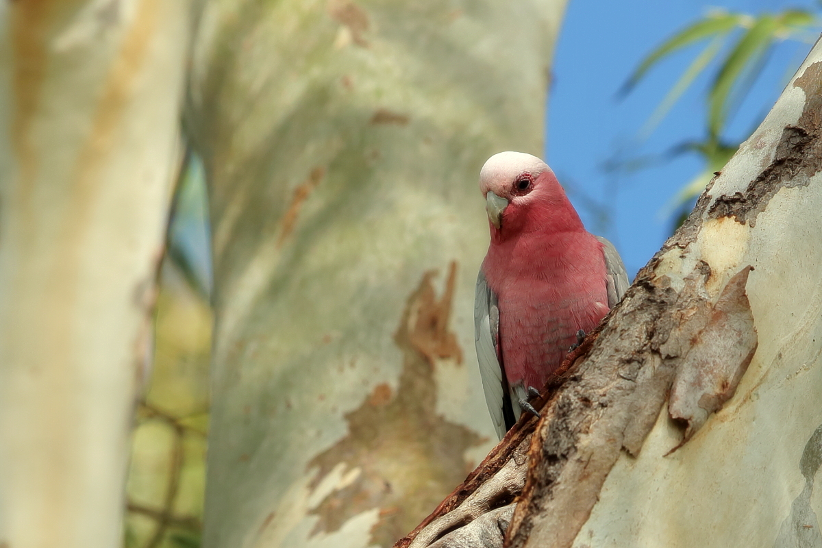 Parrots are a rewarding object for photographer as their beauty and look cause you are never fed up with them and you are willing to come back to spend your time with them and to record the species in pictures. The farther from human societies the cockatoos gathered in the larger flocks, at least according to what I was able to observe and photograph. The flock of the cockatoos crossing the road can be seen in the places where cars occurs rarely indeed. When I was taking photos in such places the bush was perfectly calm and quiet, only the sounds of nature could be heard. When it happened that a car was coming up the sound of its engine could be heard from afar. I managed to meet the Galah a couple of times, once even in urban circumstances. The Galah is a medium sized parrot (it weighs up to 400 grams), smaller than the Red-tailed Cockatoo and the Sulphur-crested Cockatoo and can be found practically across the whole Australia. This species brought me the associations and emotions just like the Sulphur-crested Cockatoo that I described in the text about.
